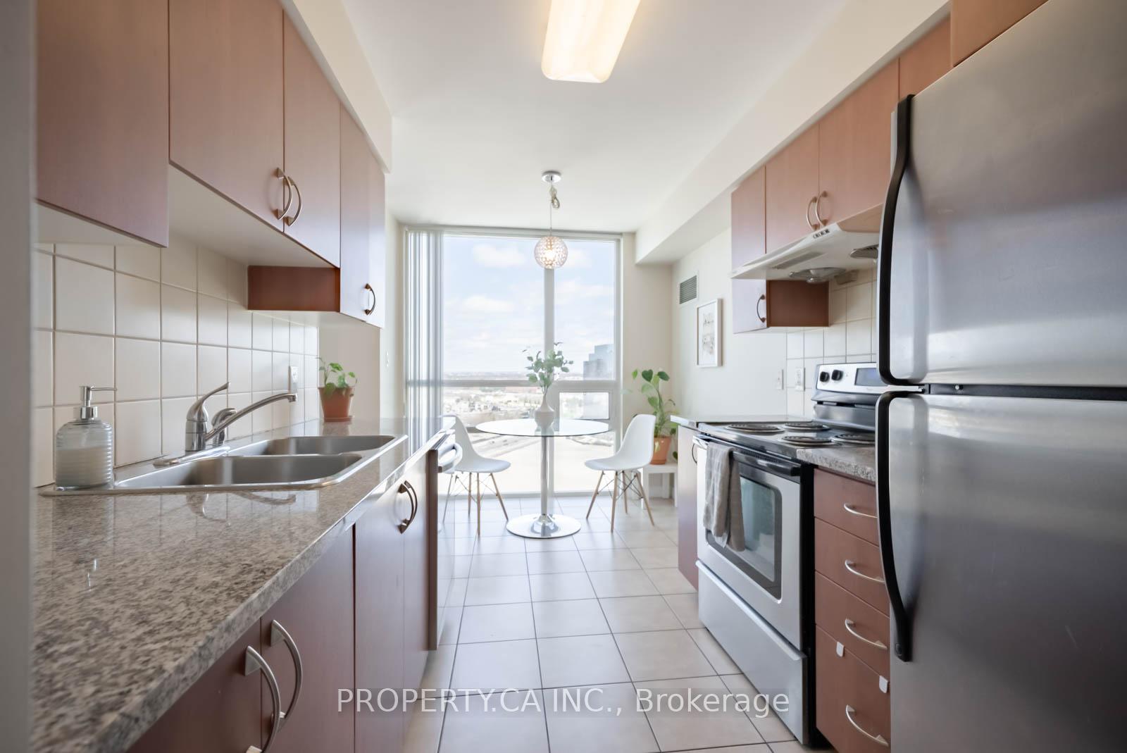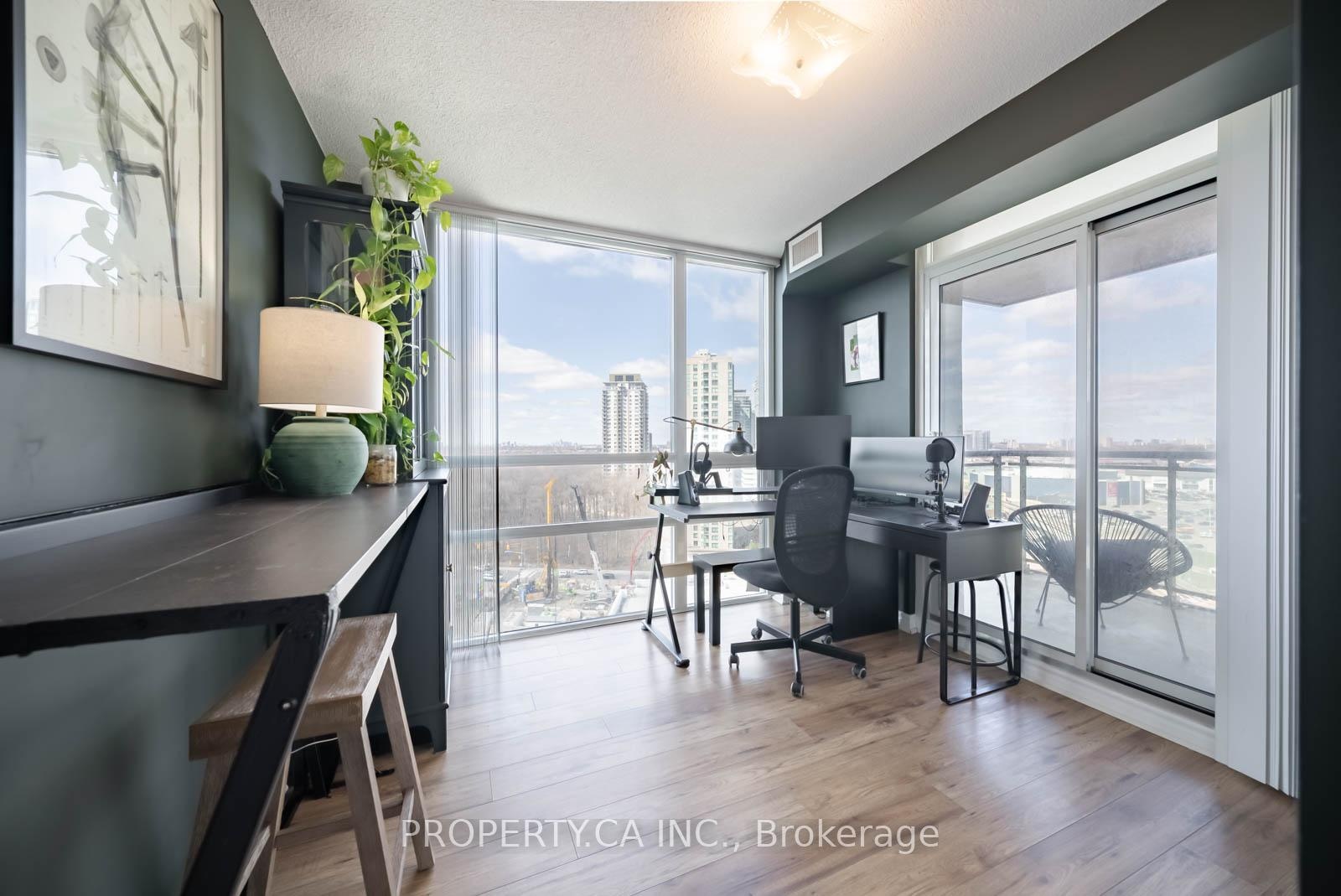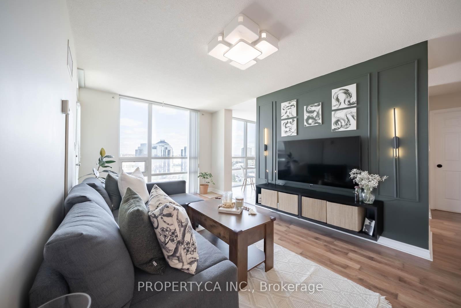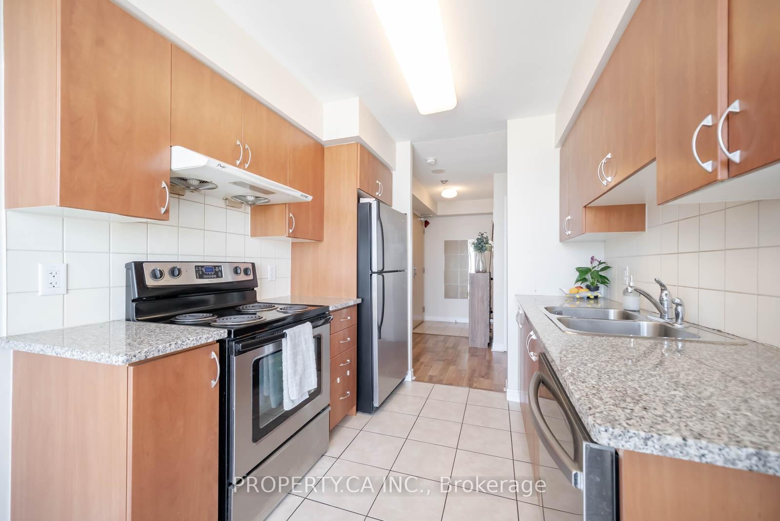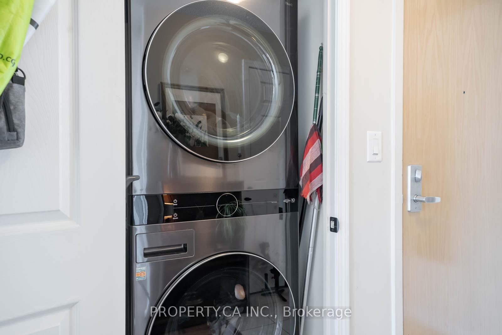 Beautiful Bright 2 Bedroom Corner Unit, Located In Beloved & Expanding Neighbourhood. Open Concept Living, With Upgraded Feature Wall W/ Wainscoting Panelling & Modern Sconce Lighting. Spacious Room Allowing Both Living & Dining Capability W/ Bright Windows & W/O to Private West Facing Balcony To Enjoy Summer Sunsets From. Large Private Kitchen W/ Stainless Steel Appliances & Granite Counters W/ Comfortable Additional Dining Space. Great Layout, W/ Split Bedrooms. Oversized Primary, W/ Custom B/I Closets. Ensuite Full Bathroom For Ultimate Convenience. Second Bedroom, Offering Abundance of Sunlight W/ 2 Walls of Windows. Beautiful B/I Custom Desk, Great for WFH. Newer Full Size LG Washer & Dryer. Newer Laminate Flooring Throughout, Providing Carpet Free Living. Well Managed Safe Building Offering Concierge, Gym, Pool, Party Room, Jacuzzi, Sauna, Visitor Parking & More. Fabulous Location, Walk To STC, Restaurants, Groceries, Coffee Shops, Direct TTC To Downtown, Mins to 401 Taking You To the 404 & DVP. 1 Parking & 1 Locker. Great Value, For Size & Location!