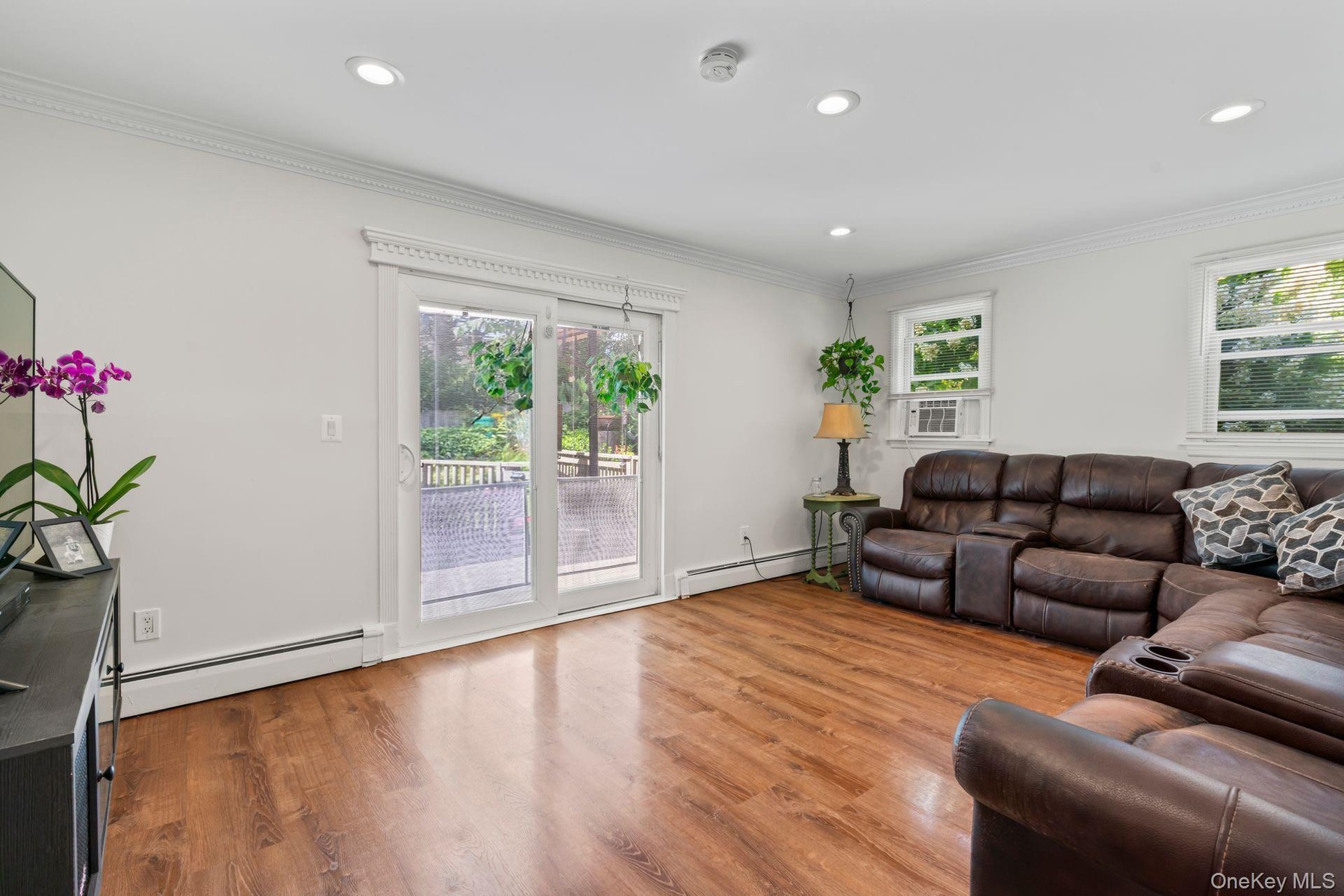- Family room featuring a plenty of natural light, crown molding, and sliders to back deck.