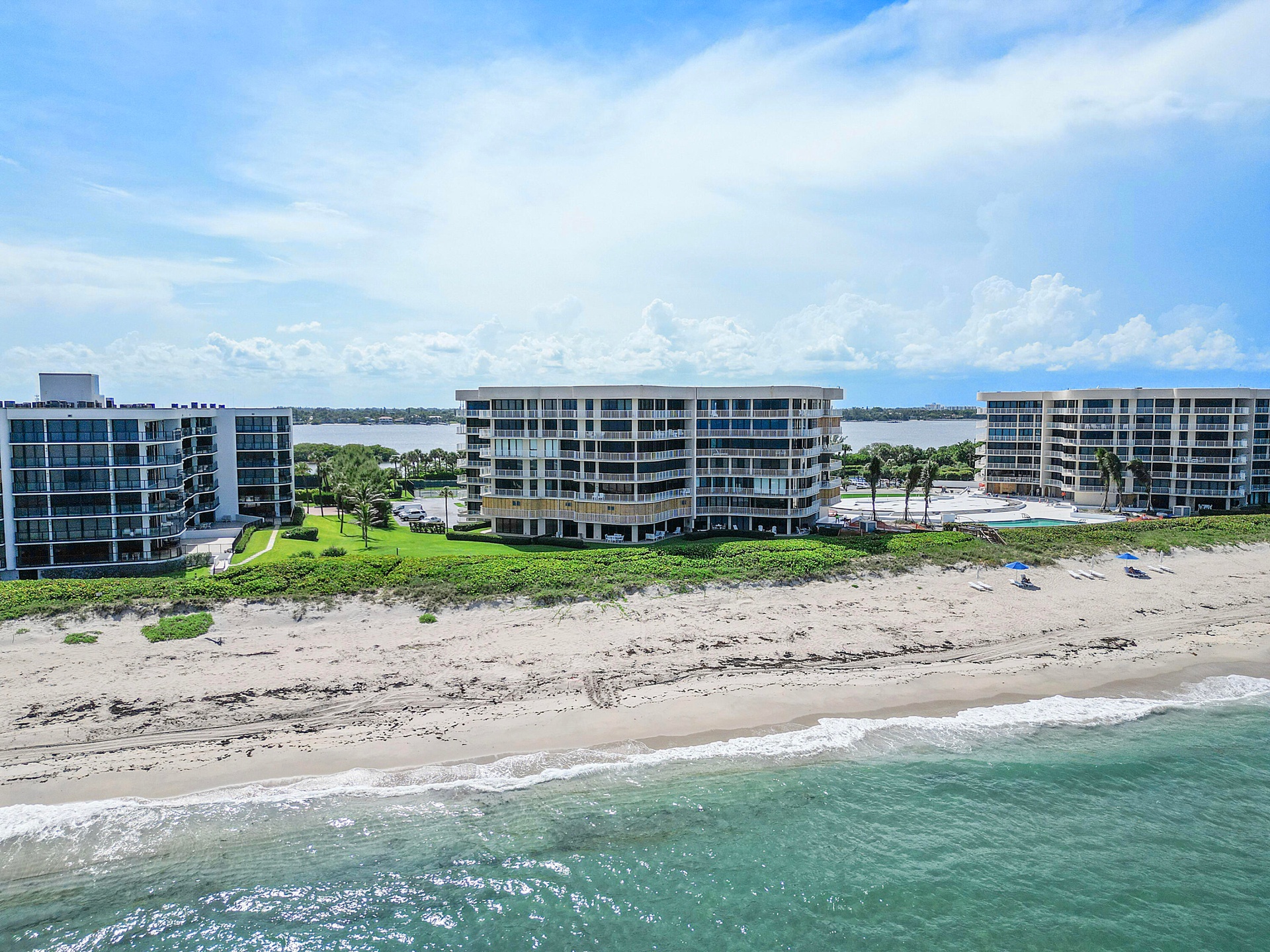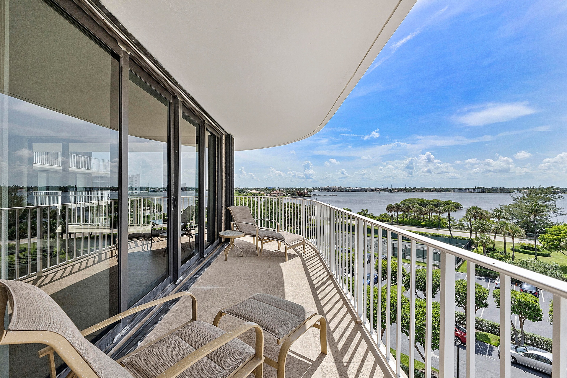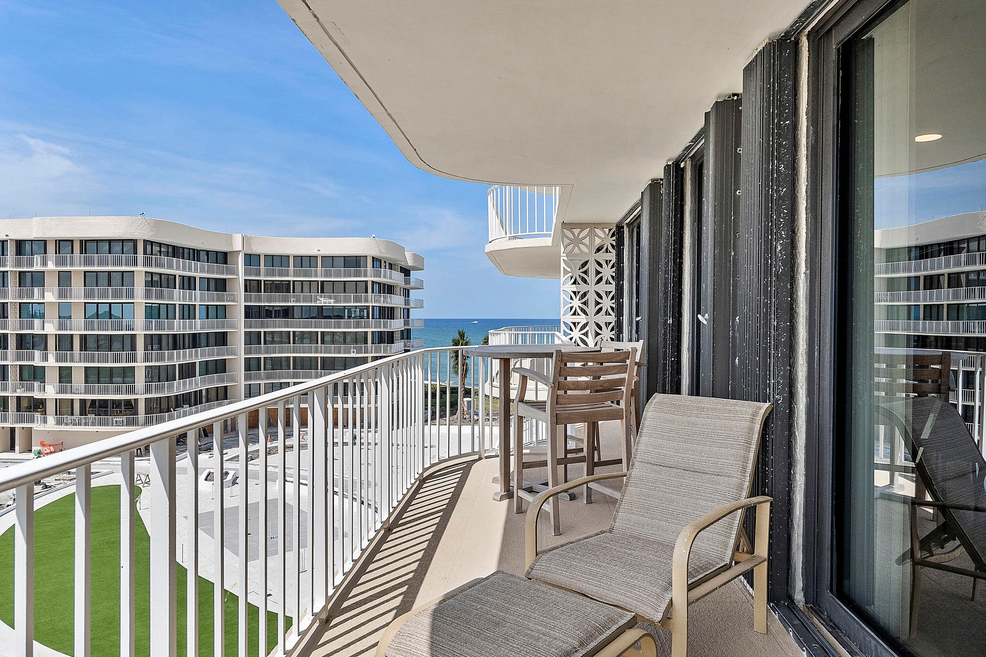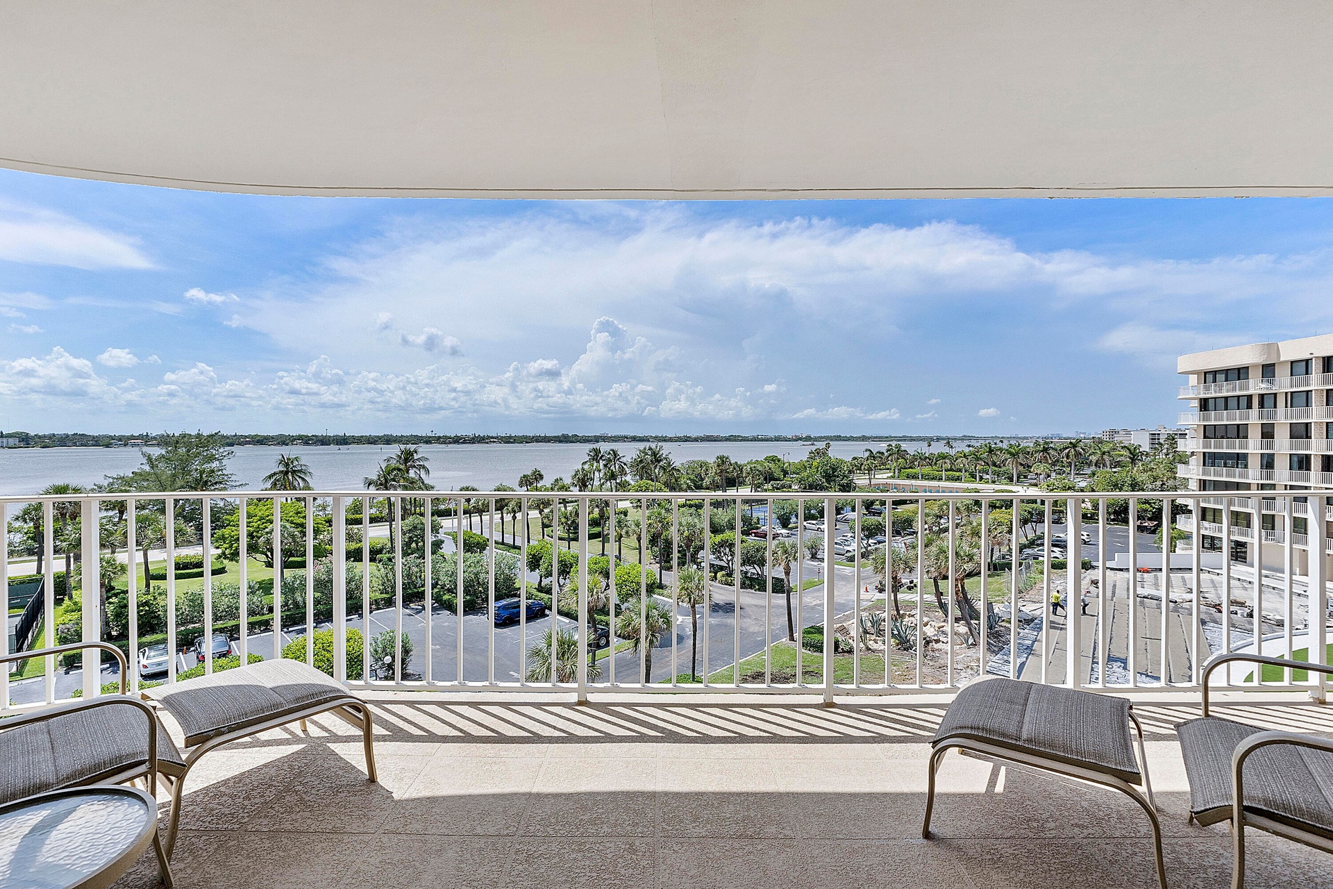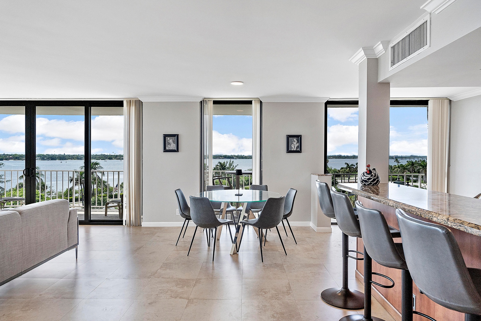 Fully furnished seasonal rental with panoramic views of the intracoastal and ocean with a wrap around private balcony.