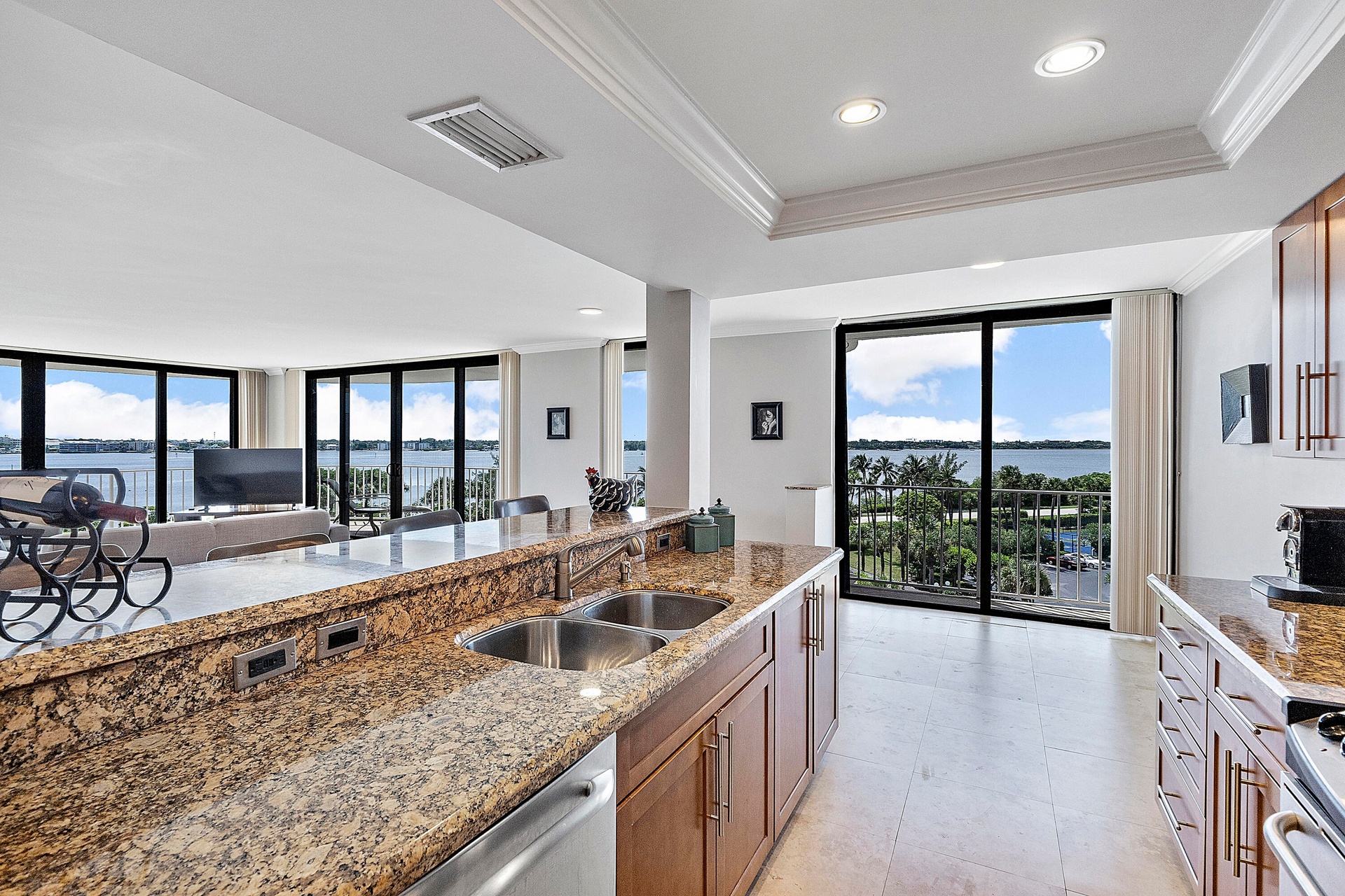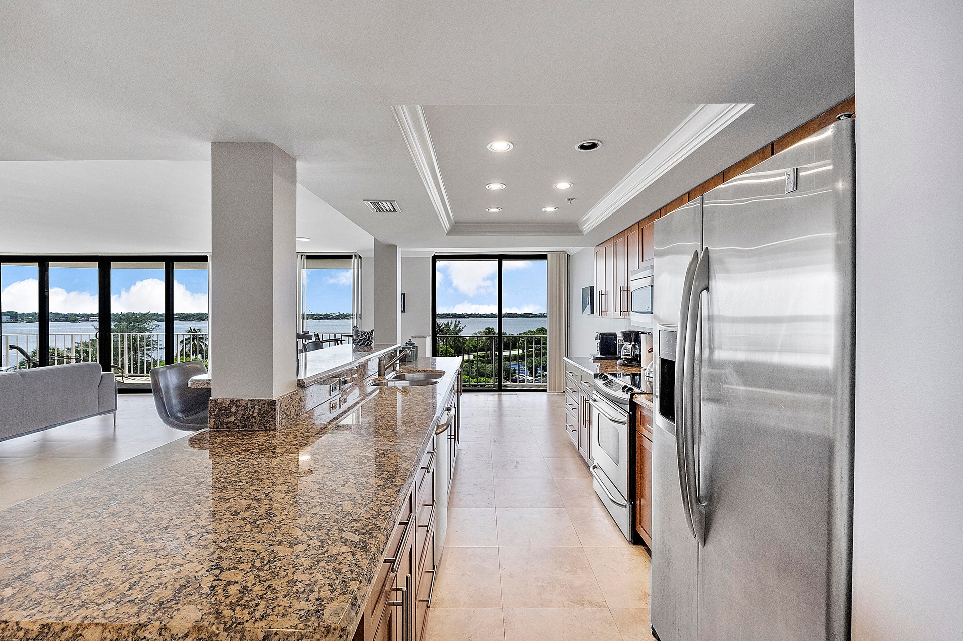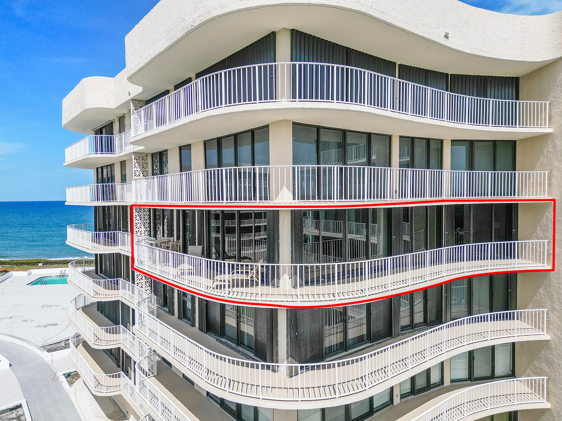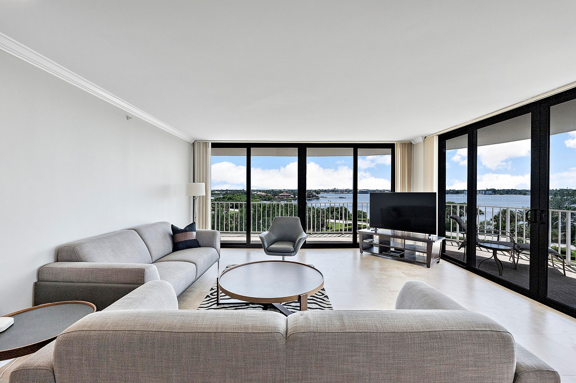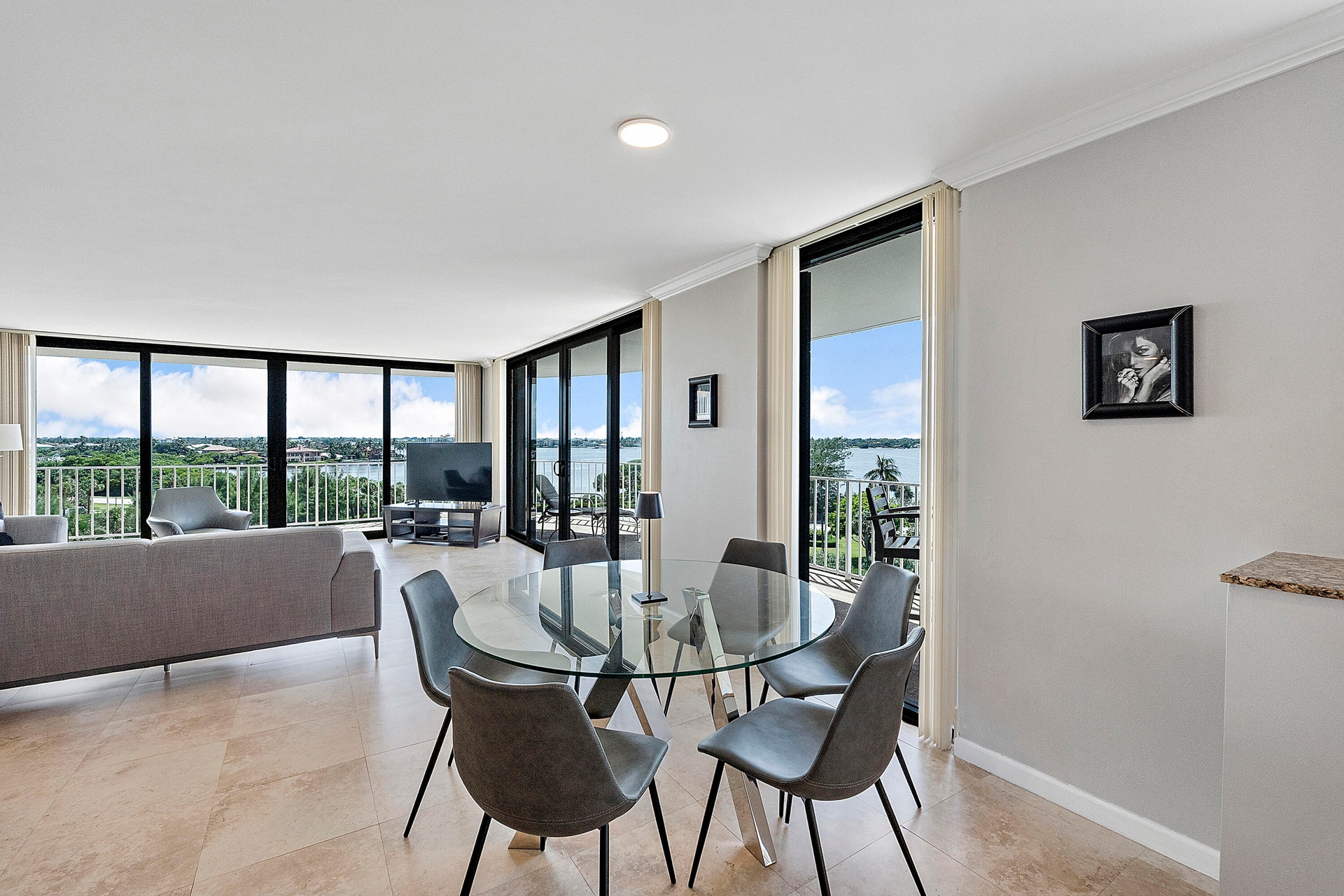 Fully furnished seasonal rental with panoramic views of the intracoastal and ocean with a wrap around private balcony.