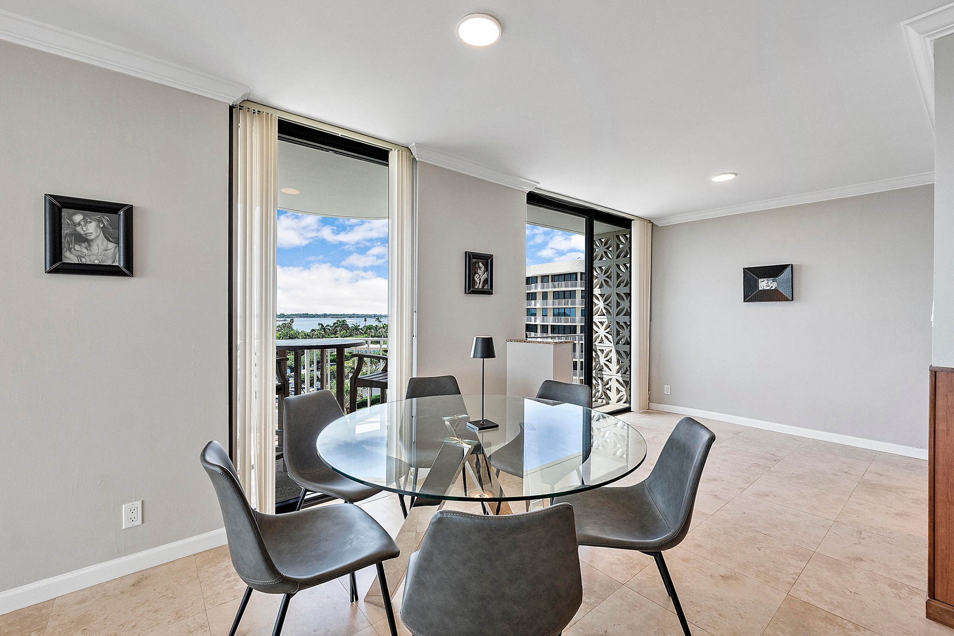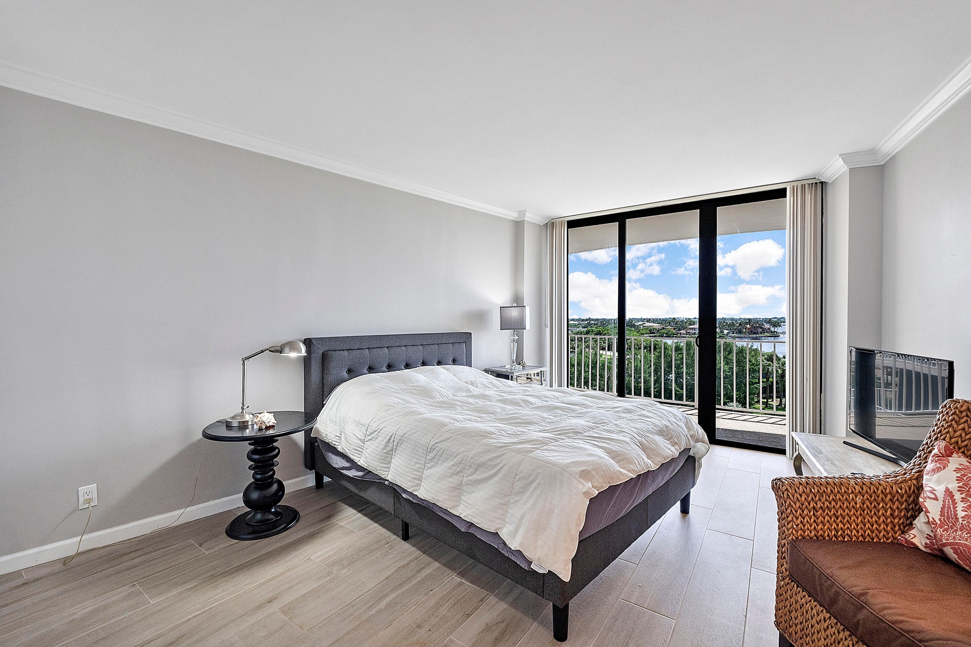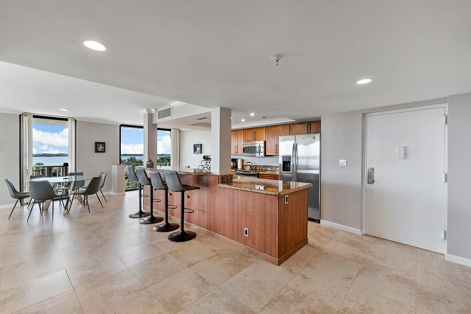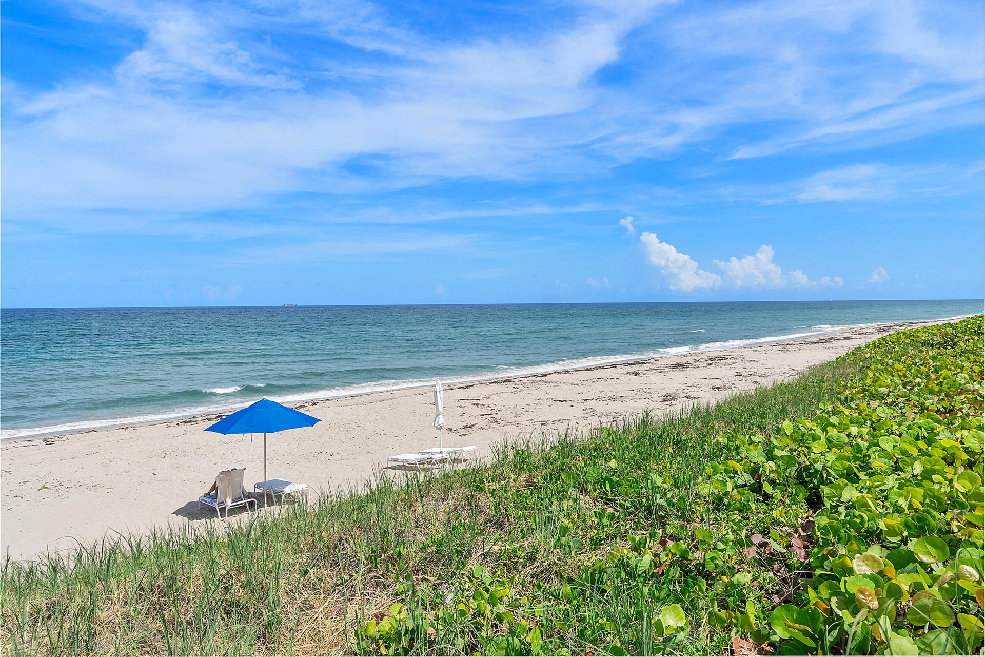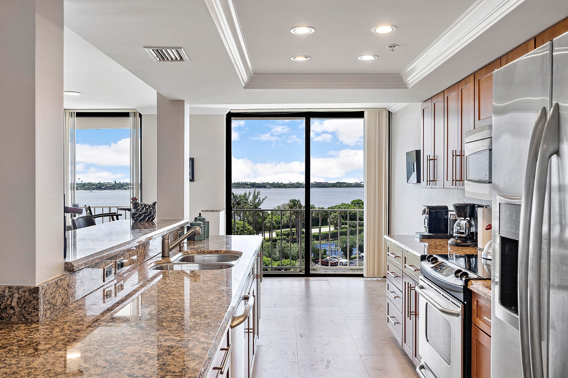 Fully furnished seasonal rental with panoramic views of the intracoastal and ocean with a wrap around private balcony.