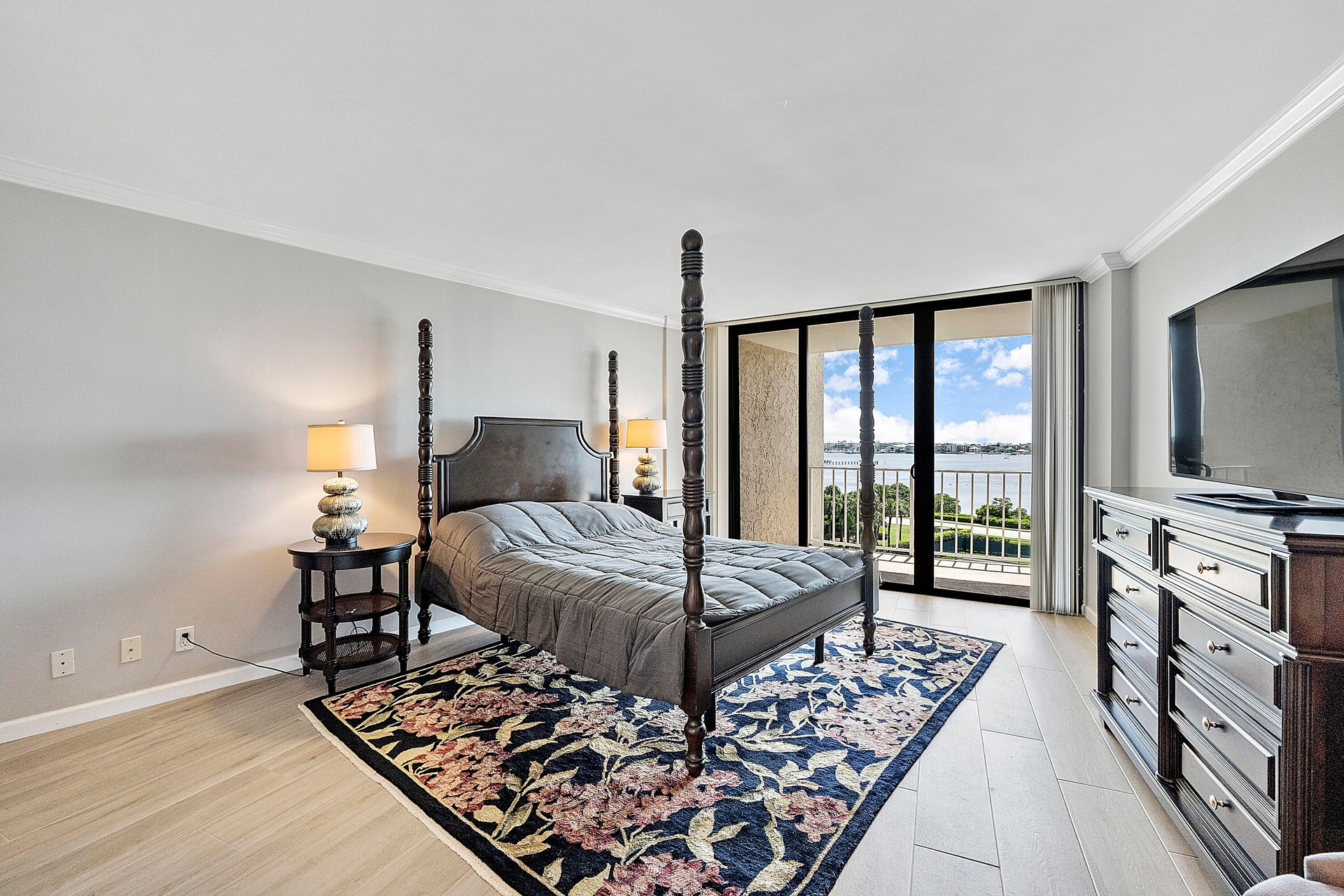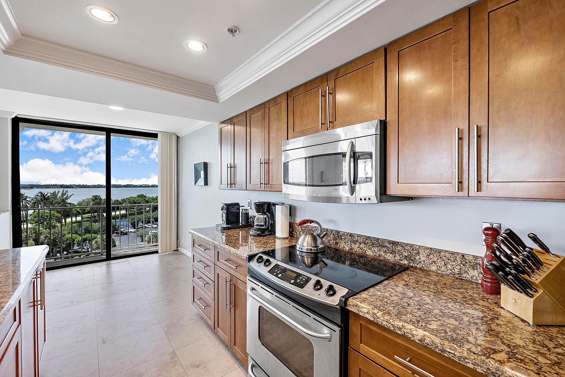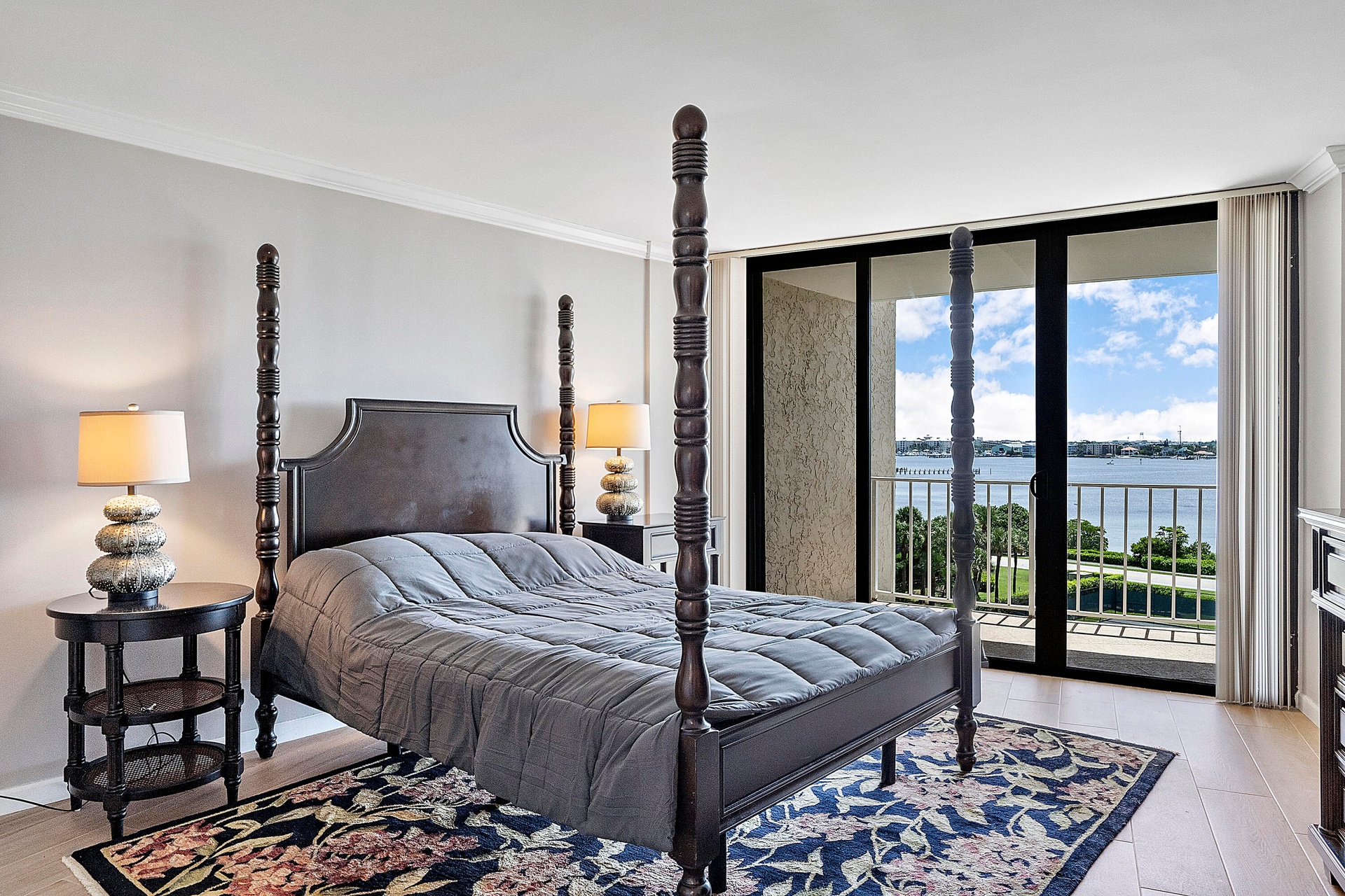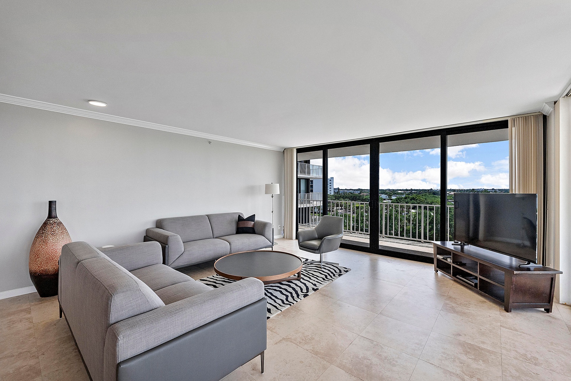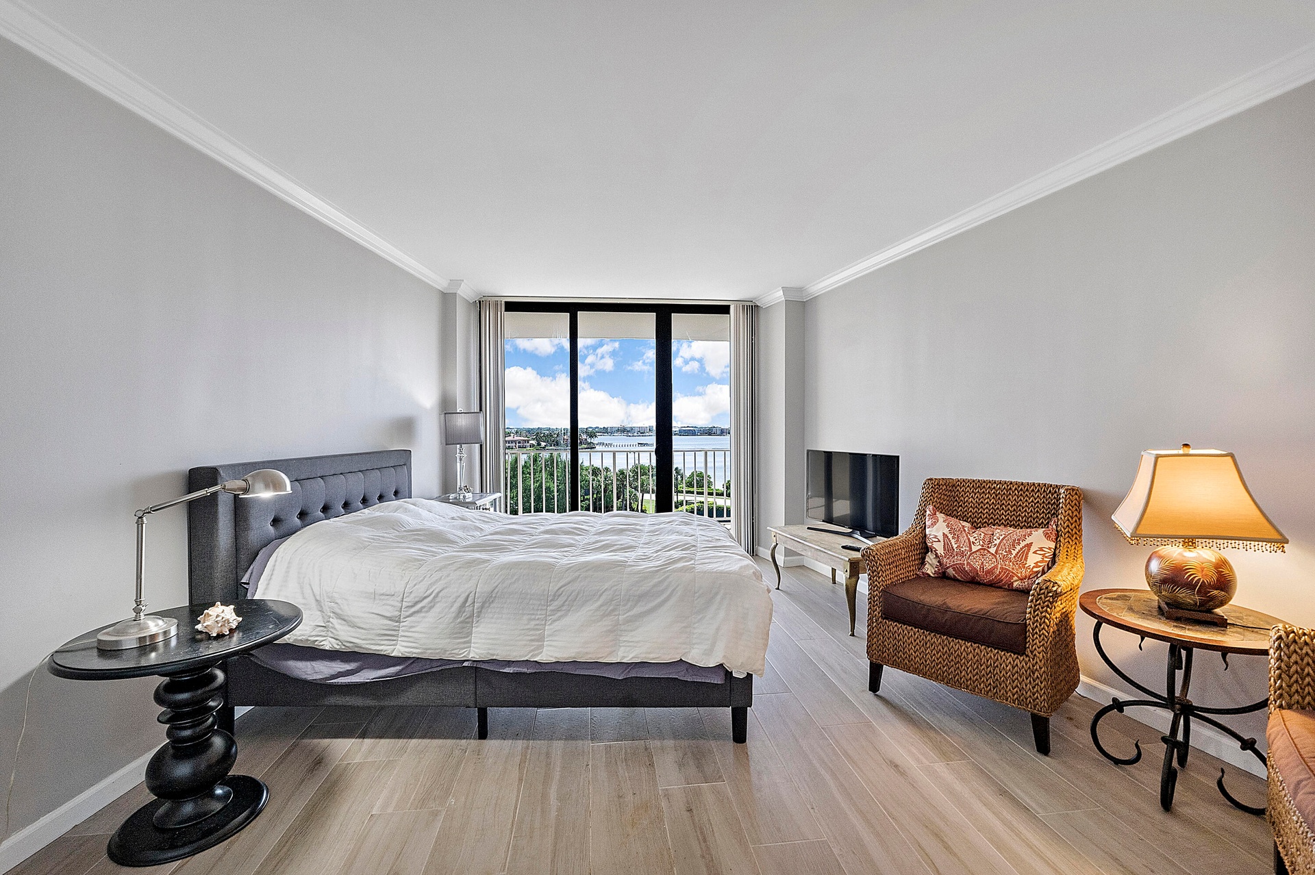Fully furnished seasonal rental with panoramic views of the intracoastal and ocean with a wrap around private balcony.