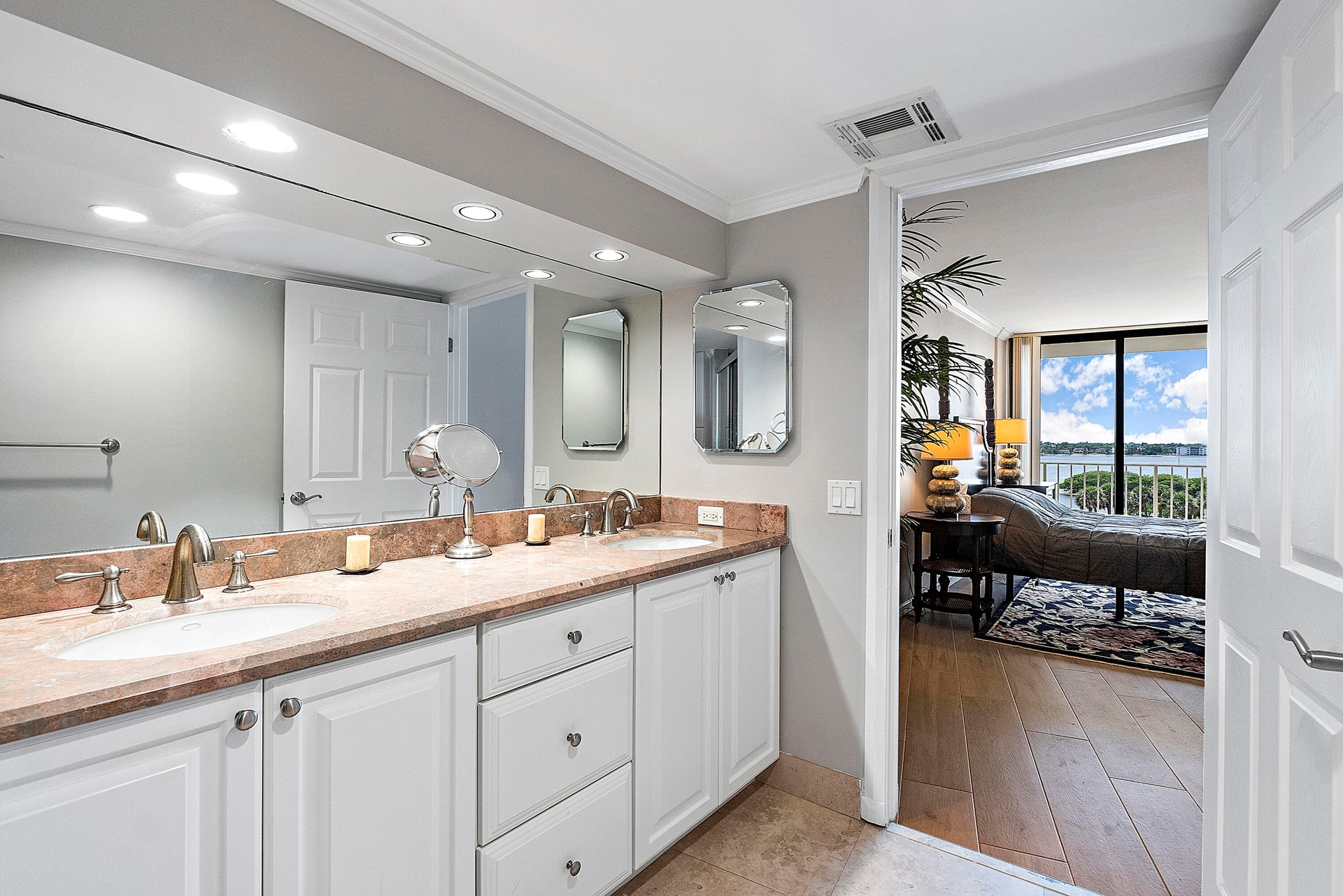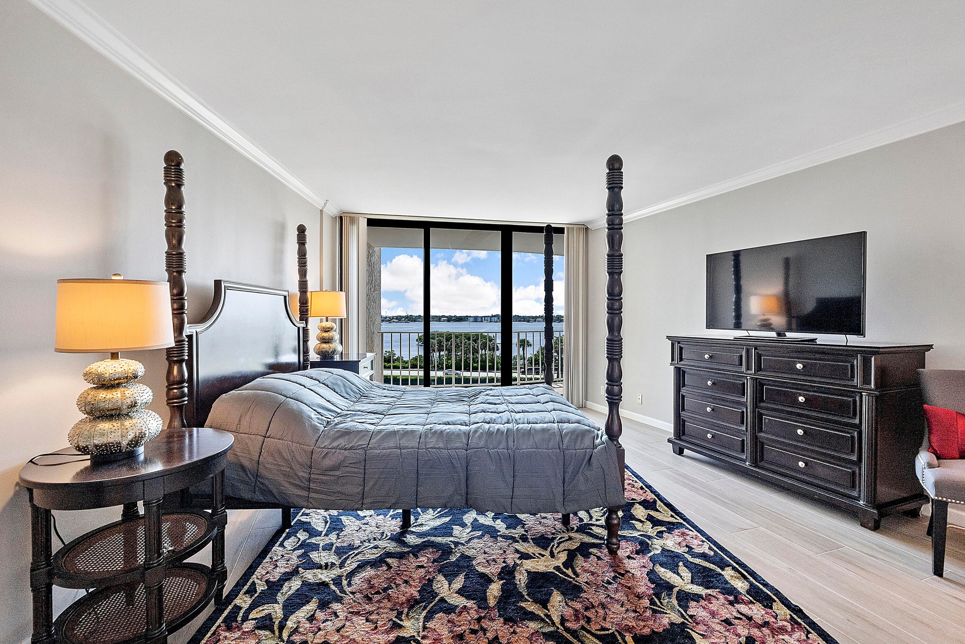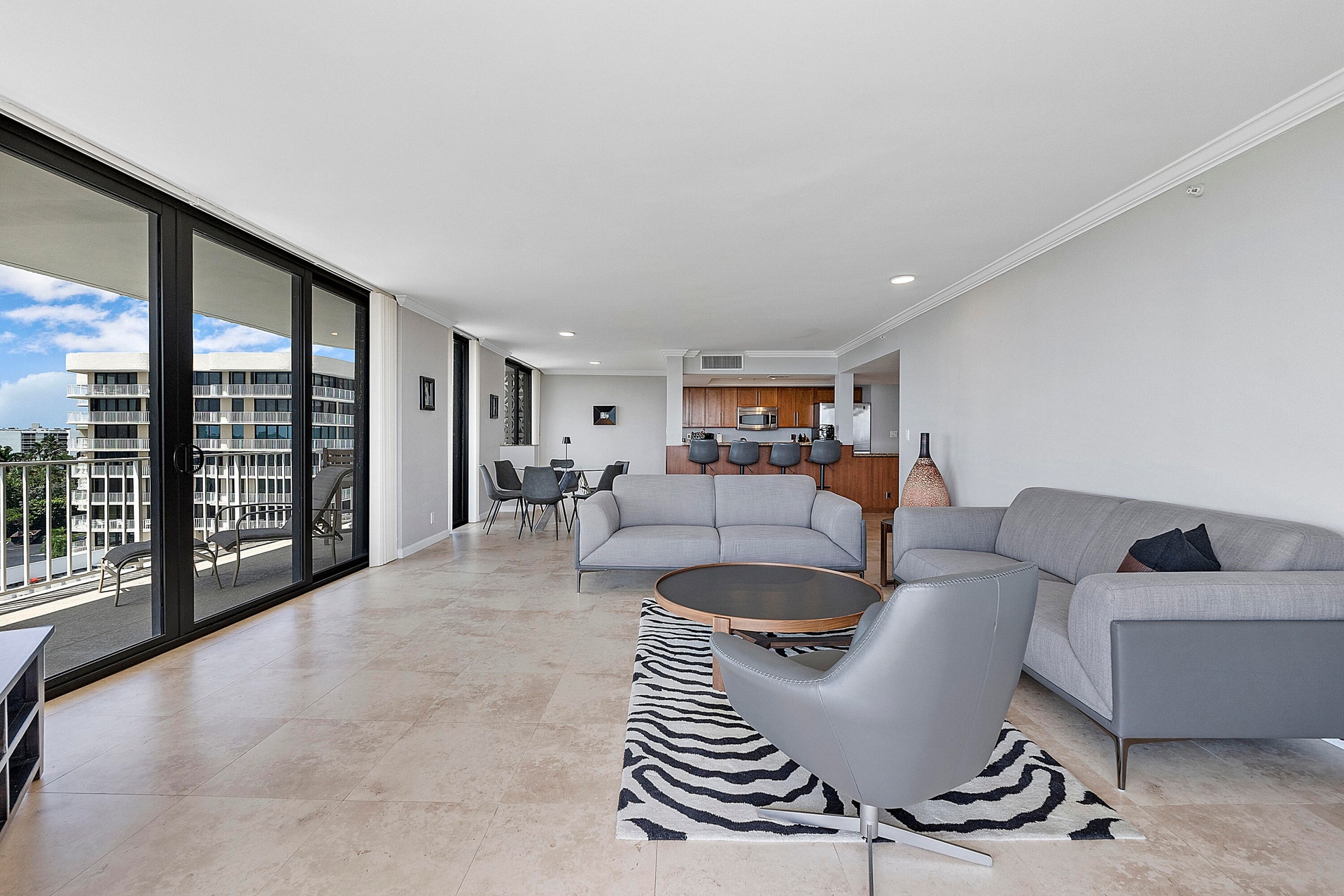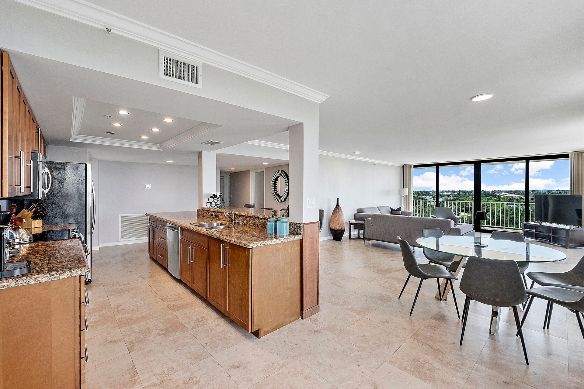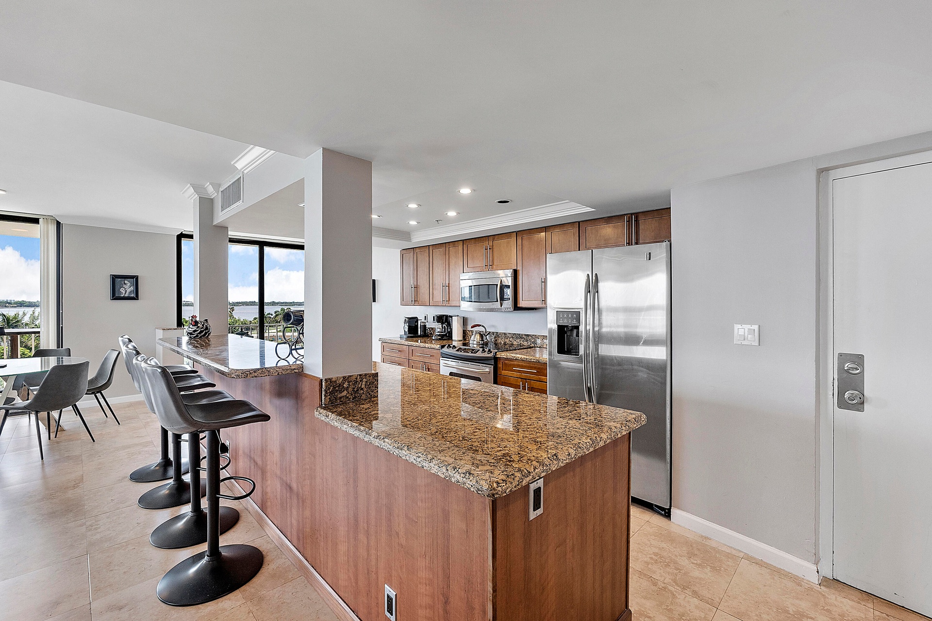 Fully furnished seasonal rental with panoramic views of the intracoastal and ocean with a wrap around private balcony.