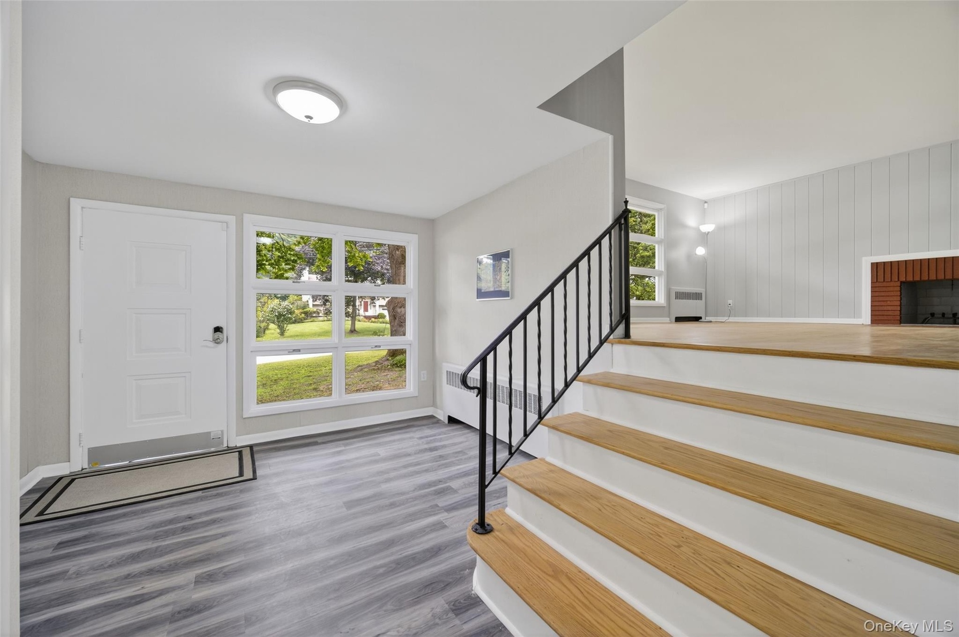 BACK ON MARKET! DEAL FELL THRU! Spackenkill Town of Poughkeepsie NY beautiful split-level home 4BR 3 Baths set on plush grounds w/ mature trees. Quiet peaceful 1/2 acre setting. Highly sought-after Spackenkill school district and community of well kept homes. Tastefully renovated and updated. Clean, turn-key, move-in ready. Foyer w/ large windows, new Anderson storm door, new lighting, new wood flooring, double sliding closet doors. Den on entry level off Foyer along w/ Half Bath incl addtl water faucets for potential Shower or alternate Washer/Dryer location. Interior entry to attached 2-car Garage. New paved Driveway. Main Floor presents spacious Living Room w/ brick Fireplace. Completely new Kitchen w/ white Cabinetry, Marble Countertops, Stainless Steel appliances, new fixtures, new lighting, new wood flooring. Formal Dining Room w/ new lighting and Anderson double sliding glass doors leading out to freshly stained large Upper and Lower Decks plus large Backyard, all great for entertaining. Upper Floor presents roomy Primary Bedroom w/ Private Bath and generous closets, 3 addtl Bedrooms, Main Bath, and Linen Closet off hallway. All bathrooms feature new vanities, new fixtures, new wall mirrors, new lighting, new flooring. Freshly refinished natural oak hardwood floors everywhere. Entire home freshly painted interior and exterior, new extra large roof gutters, new windows, new air conditioning w/ Wi-Fi features. Clean Dry Bsmt w/ new Windows, Washer/Dryer, Utilities, and space for your imagination. 2,067sf Total + Bsmt. Oil Heat, A/C, Town Sewer, and your choice of Well or Town Water. New security system (owned) w/ 24/7 live-monitoring, cell access, and more. Close to schools, shopping centers, restaurants, entertainment, health facilities, walking trails, main roads, bus routes, Rte 9, Rte 55, Rte 44, bridges over Hudson River, Taconic State Pkwy, convenient commuter location. Annual combined taxes $7,914 before exemptions and credits. Buyer Agents Welcome.
