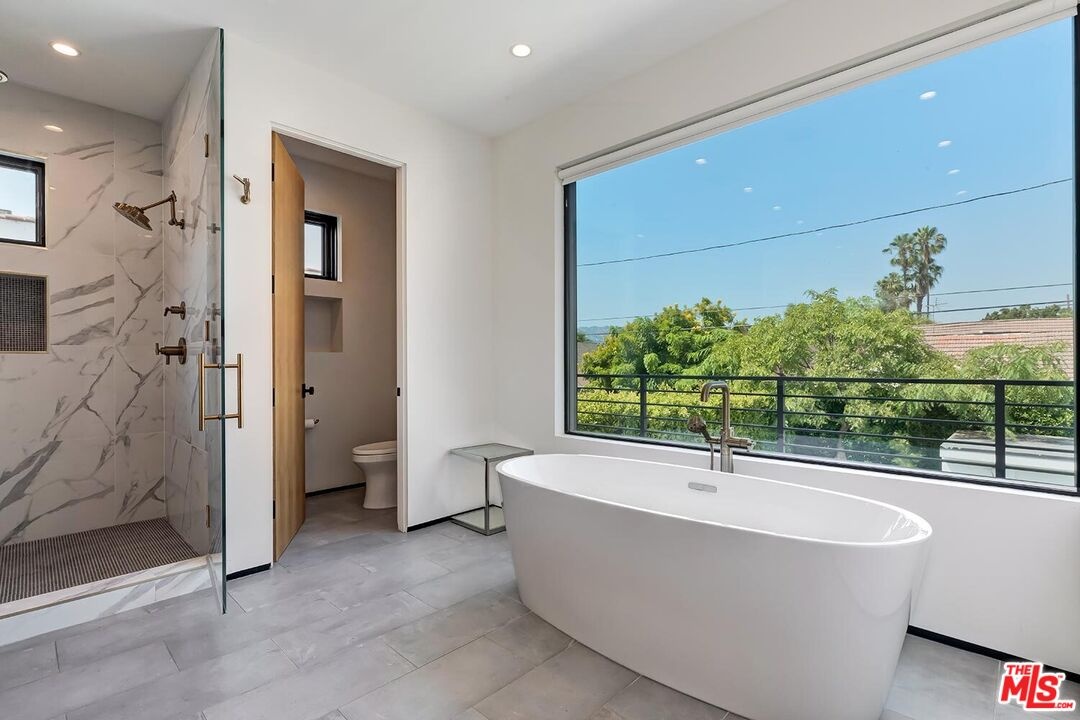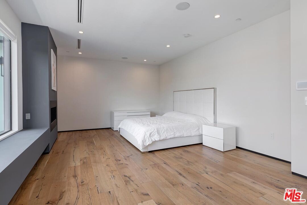 DescriptionBuilt in 2017, this modern smart home in Beverly Grove blends sophisticated design with an open floor plan that defines contemporary California living. A dramatic 20-foot skylit entry floods the space with natural light, introducing sleek finishes, soaring ceilings, and wide-plank hardwood floors that flow throughout. The great room concept connects all the main living areas - private front office with patio, spacious family room with fireplace, inviting living room, open gourmet kitchen, and sunlit breakfast area - creating an effortless sense of space. The chef's kitchen is a true showpiece, featuring a large center island with bar seating, Sub-Zero side-by-side refrigerator/freezer, professional Wolf six-burner range with griddle, dual ovens, microwave drawer, and Bosch dishwasher. A wall of floor-to-ceiling glass pocket doors opens to a private backyard oasis with sparkling pool, grassy play area, and built-in grill - perfect for large-scale entertaining, intimate gatherings, or quiet evenings at home. Upstairs, the grand primary suite offers a fireplace, balcony overlooking the yard, custom walk-in closet, and spa-inspired bath with floating vanity, multi-head shower, and freestanding tub. Three additional en-suite bedrooms and an upstairs laundry room provide comfort and convenience.Amenities- Balcony
