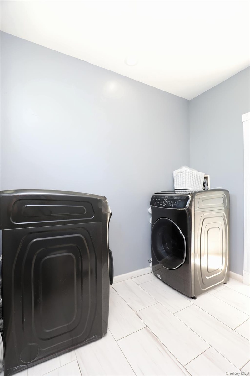 - Laundry area featuring washing machine and clothes dryer and light tile patterned floors