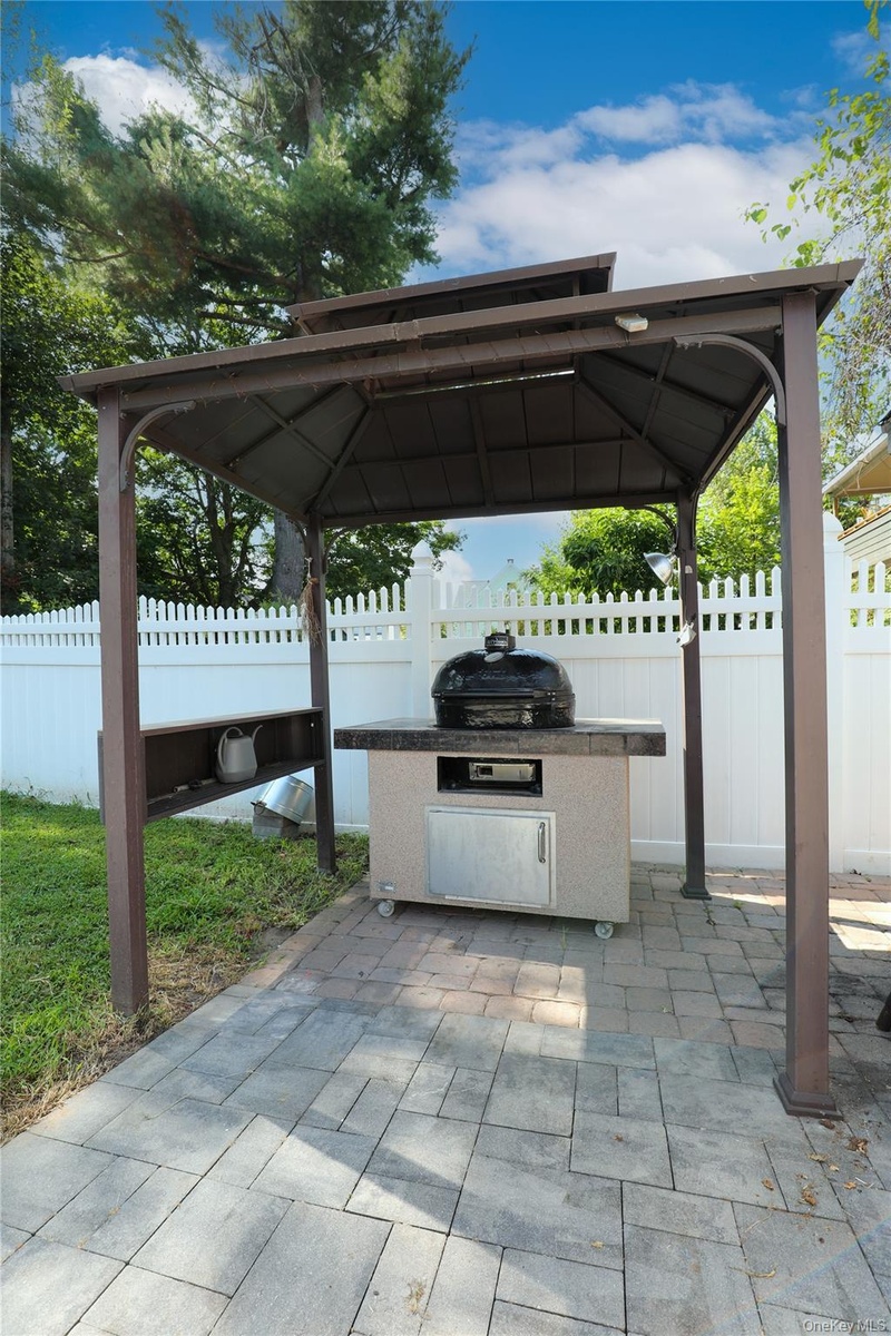 - View of patio / terrace featuring a gazebo and exterior kitchen