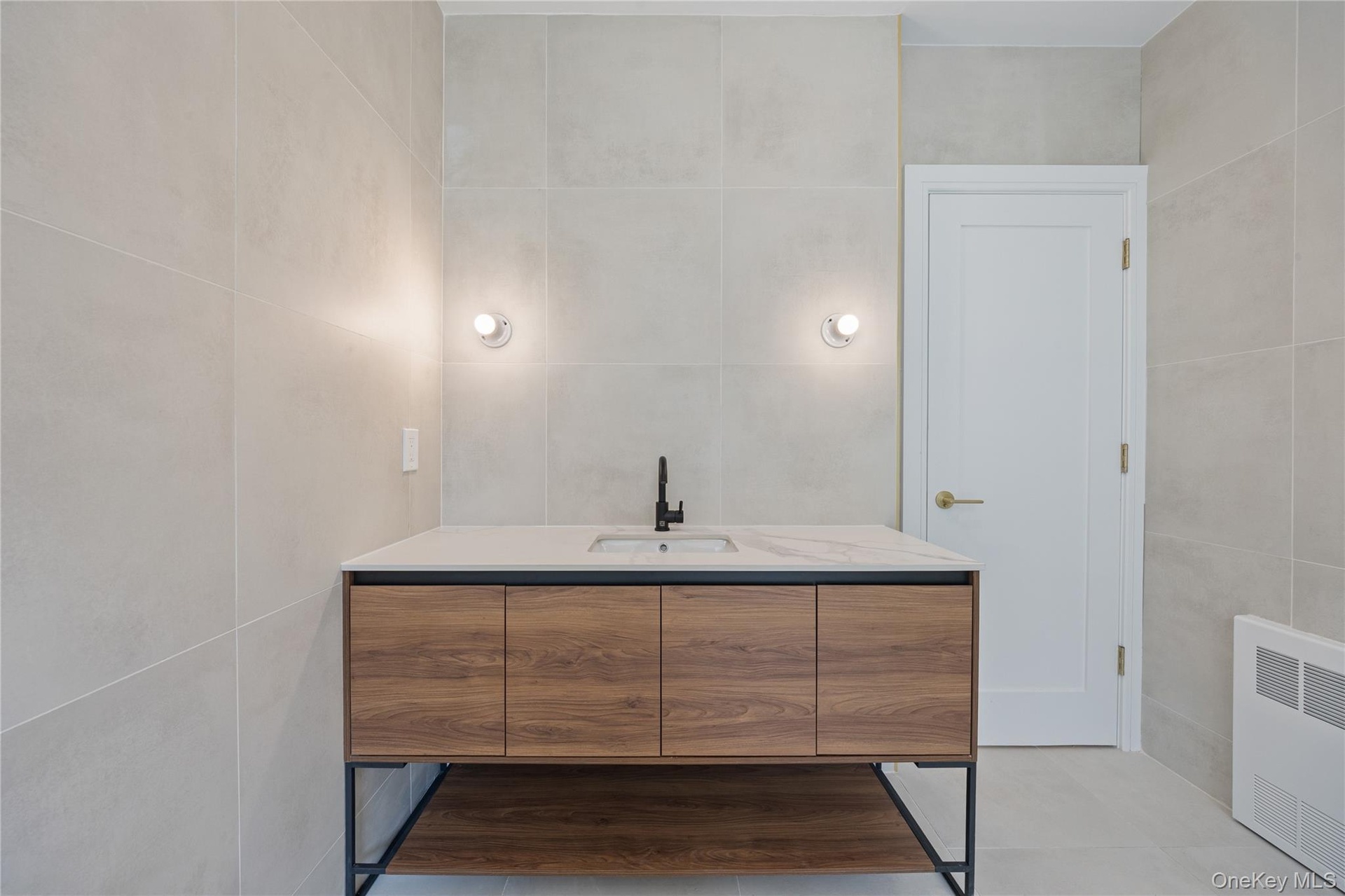 - Empty room with light wood-style flooring, recessed lighting, and radiator heating unit