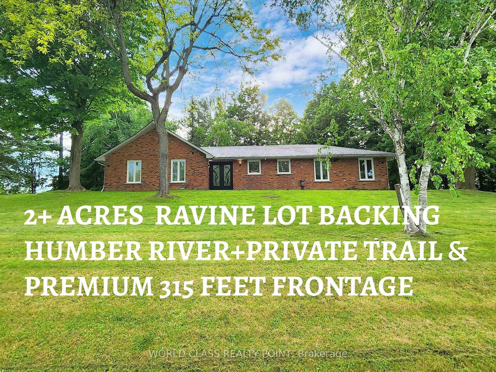 !!! SELLER IS OFFERING VTB AT LOWER INTEREST RATES !!!. This Peaceful Bungalow Sits On 88,156.34 SQ. FT. (2.024 ACRES) Of Verdant Beauty That Backs Onto Ravine. Located In Prestigious Multi-Million Dollar Neighborhood Of Kleinburg @Nashville Rd/Hwy 27. Main Level Offers 4 Bedrooms, 3 Bathrooms, Combined Living, Dining, Kitchen & Family Area. Walkout Basement Offers 3 Bedrooms, 1 Bathroom & Living Area W/Ample Of Storage. Rare Extraordinary Private Trail To Humber River & 900-Plus Hectare Nashville Conservation Reserve In Your Backyard. Excellent Opportunity To Build Your Custom Dream Home Or Live In The Bungalow. Spanning Over 2 Acres With An Impressive 315-Foot Frontage & For Severance Of Two (02) Lots - Buyers To Do Their Own Due Diligence. Great Opportunity For Builders & Developers.