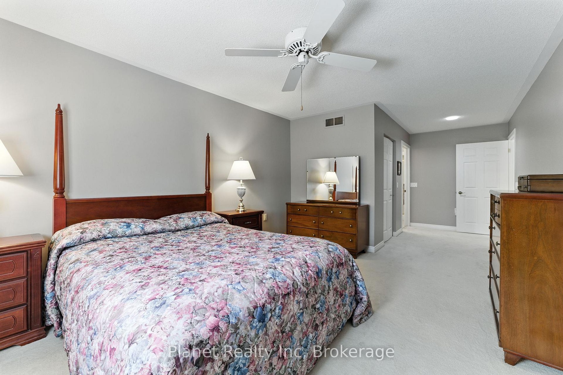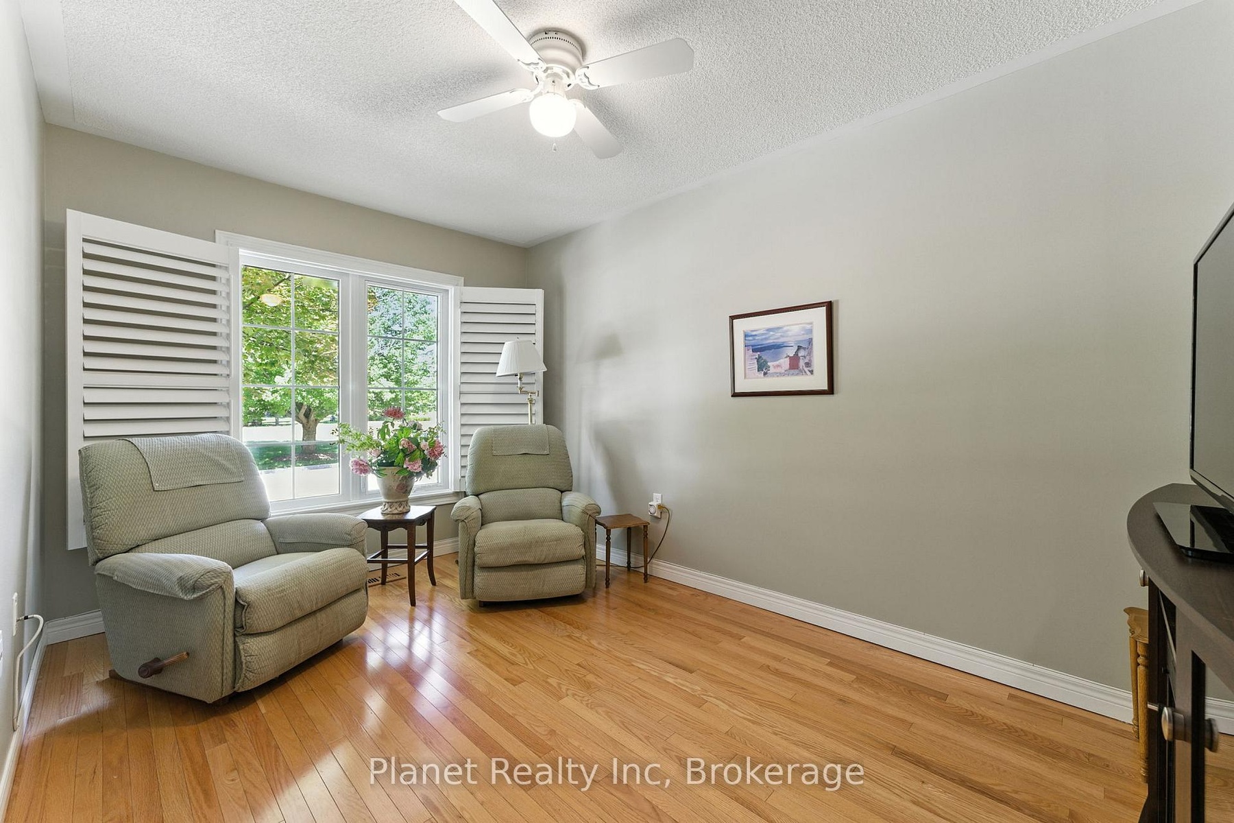 The optimal downsizing move, the Village's beautiful bungalow townhomes offer a premier combination of main floor living, endless amenities & zero-maintenance freedom for your retirement! 19 Village Green is a beautifully well-appointed townhome with serene outdoor privacy. Natural light abounds in this home's open-concept rear that features a soaring vaulted ceiling along with gleaming hardwood floors through its kitchen and great room. A grand primary suite offers a 3 piece ensuite and a walk-in closet. A second main floor bedroom is well suited to a den or TV room, and a second full washroom ensures your company has their own space. Enjoy the convenience of main floor laundry, with easy access to your attached garage. Downstairs, this home's plethora of living space continues into a grand rec room for expanding for the holidays; with a bonus room and workshop for all the hobbies you can imagine. At the Village Centre, mere steps away, maximize your free time with over 42,000 sq. feet of amenity space and 90+ clubs and activities. There is nowhere like the Village & nothing that compares to the feeling that comes with being a VBA local!
