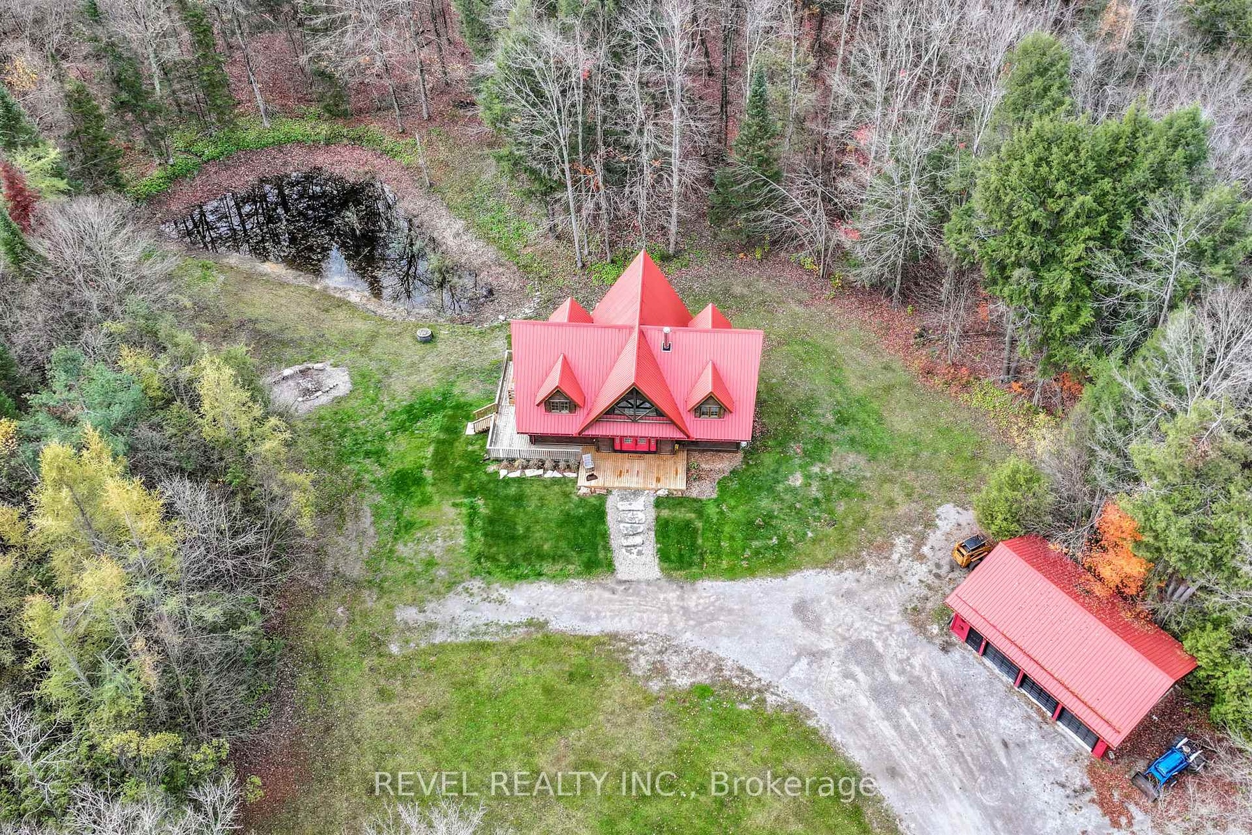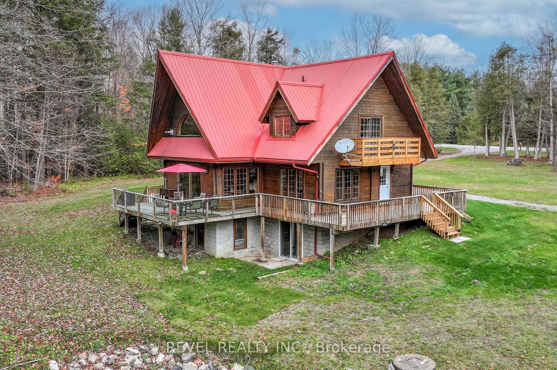 Welcome to 3515 County Rd 121, this stunning 4+1 bedroom 3 bathroom log home with metal roof, offers the perfect balance of rustic charm and modern comfort. Walk in and be mesmerized by the grand foyer & living area, cathedral wood ceilings, cozy fireplace and abundant natural light from picturesque windows creating a warm and inviting atmosphere.The kitchen/dining combo is a cooking paradise, featuring newer appliances, propane stove, OTR microwave, pantry and ideal for both daily living and entertaining. Gorgeous spiral natural wood staircase leading you to the upper level of the home with additional bedrooms, full bathroom and sitting area loft. Primary Suite with walk out Juliet Deck. Lower level with full recreational room, laundry area, sauna, work out area, bathroom and walk out to yard. Perfect in law suite potential with separate entrance.Step outside to the expansive wraparound deck with breathtaking views of the pond and surrounding 1.89 acres of forest. Whether you're enjoying a quiet morning coffee watching the wildlife or hosting family and friends in the evening watching the fire flies having a bonfire, this outdoor space is sure to impress.This property has several uses, perfect as a year-round residence, seasonal retreat, multi family or income opportunity, this property offers a lifestyle of peace, beauty, and versatility. Bonus three car detached garage with hydro. Do not miss this opportunity to make this your next home.