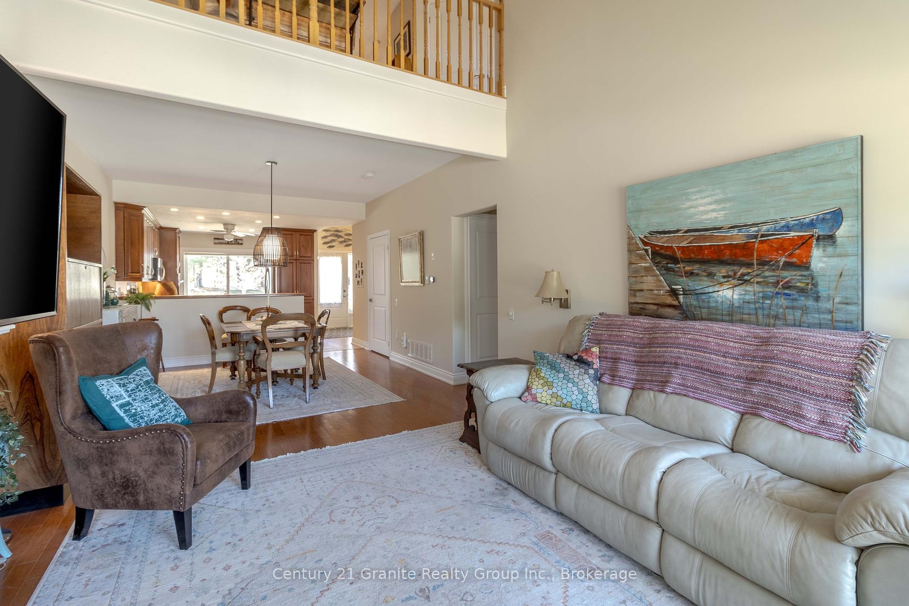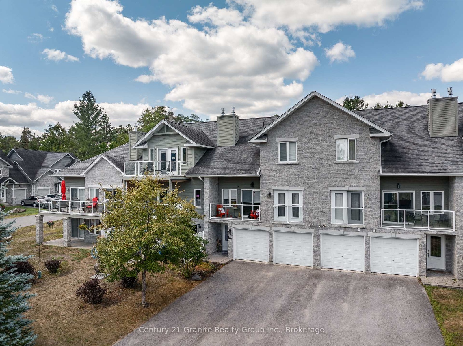 Welcome to Silver Beach, a private community on Haliburton County's premier 5-lake chain. Conveniently situated between Minden & Haliburton, this beautiful townhome spans 2,765 square feet across 3 levels, with 3 bedrooms & 2.5 bathrooms. The main level welcomes you with an open-concept design that connects the principal rooms seamlessly. The living & dining area impresses with its cathedral ceilings in the living area, hardwood floors, a propane fireplace and a walkout to a private balcony. The custom kitchen is equipped with quartz countertops, striking wood cabinetry, built-in appliances, & cork flooring, plus a walkout to the front yard. Completing this level is a spacious bedroom featuring a walk-in closet with a Juliet balcony, a 4-pc bath & a laundry room. The upper level offers 2 generously-sized bedrooms, a roomy loft, ideal as a sitting area or office, & a 3-pc bath. On the lower level, you'll find a spacious L-shaped recreation room, a 2-pc bath, direct access to the insulated 2-car garage, & a back entrance leading to the outdoors. This home is designed with accessibility in mind, offering a quiet elevator, lowered light switches, & widened doorways. As part of the Silver Beach community, this townhome grants you access to Kashagawigamog Lake, one of Haliburton's premier 5-lake chain, with 28 miles of boating that extends into Haliburton Village. Enjoy community amenities, including 3 docks, 2 KM of walking trails, a community garden & a beautifully finished clubhouse with a wrap-around deck, a grand hall on the main level & a games and exercise area in the lower level. A guest suite is also available for rent for visiting friends or family. Golf enthusiasts will appreciate the close proximity to Pinestone's 18-hole golf course. The location offers easy access to all amenities in Haliburton Village, just a 10-minute drive and is only 2.5 hours from the GTA. Don't miss out on this incredible opportunity, schedule a tour today!