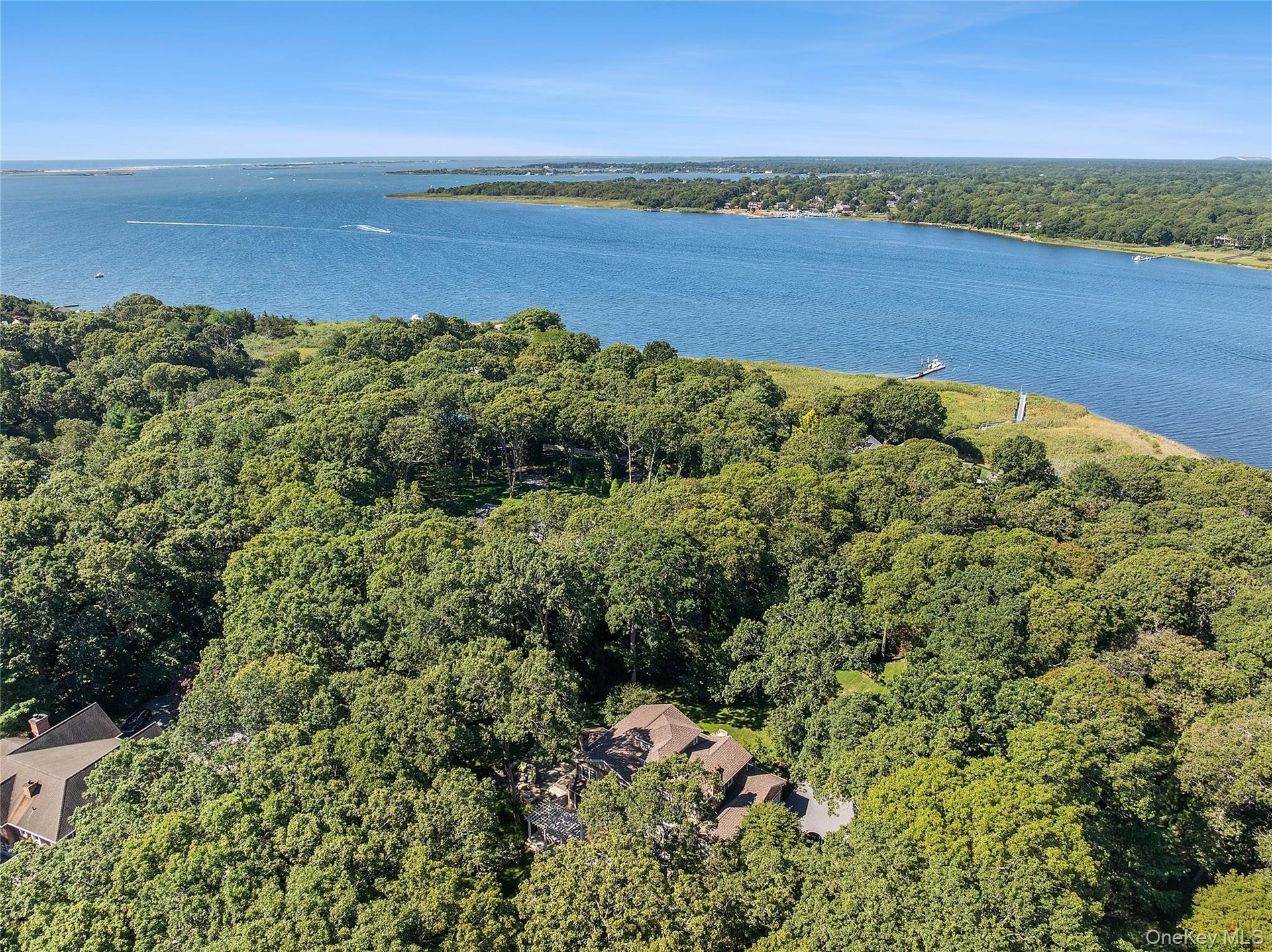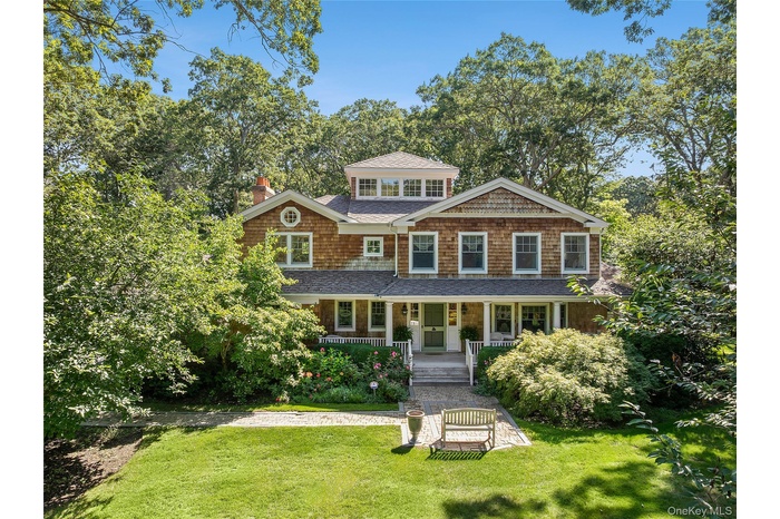 Set on +/- 1.33 acres at the end of coveted Cedar Lane, this fully renovated Post Modern offers both serenity and privacy amidst lush landscaping and gorgeous perennial gardens.  The covered rocking chair porch and generous entry foyer are welcoming features of the home.  The high-end custom country kitchen is complete with Wolf and Sub-Zero appliances, Quartzite counters, and Baccarat light pendants.  The living room boasts an 8-speaker cinema grade media system, cozy wood-burning fireplace, and triplet French doors overlooking the grounds.  The handsome cherrywood library/ home office, with wood-burning fireplace, offers a private work-from-home space.  Upstairs, the primary suite is a restful sanctuary with a private deck, wood-burning fireplace, walk-in closet, and gracious bath, complete with steam shower, deep soaking tub, dual vanities, Waterworks fixtures, separate water closet and radiant floors.  Four spacious guest bedrooms and two guest bathrooms complete the second floor, with a bonus third floor loft space.  Outdoor features include mahogany decking, pergola, wood-burning fireplace, built-in BBQ grill, outdoor speakers, room for a pool, and access to the bay.  With close proximity to the Village of Westhampton Beach, this property offers an unparalleled blend of luxury, comfort, and convenience to restaurants, boutique shopping, the Performing Arts Center, weekend farmers' market, and world-class ocean beaches.