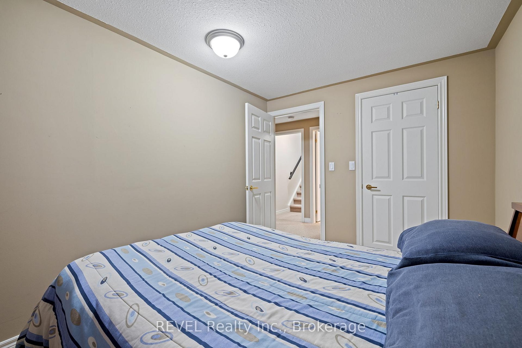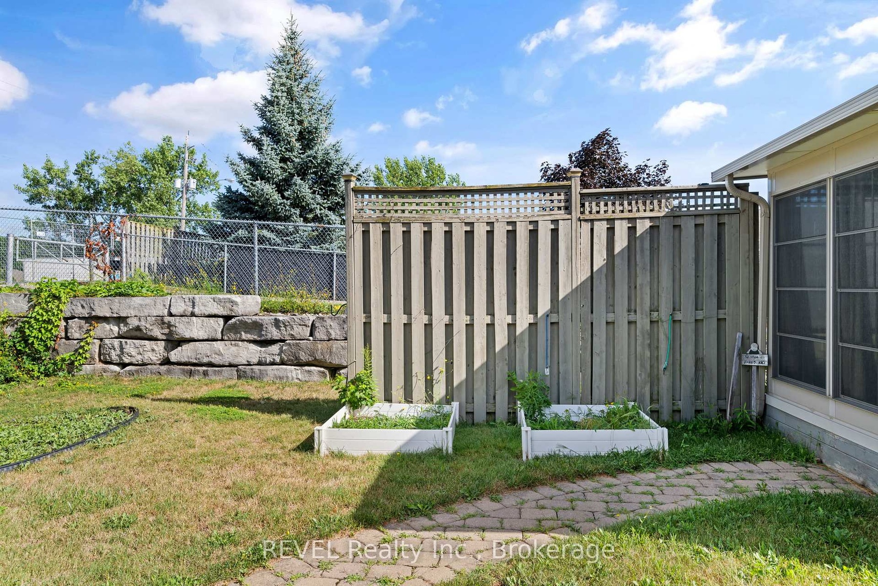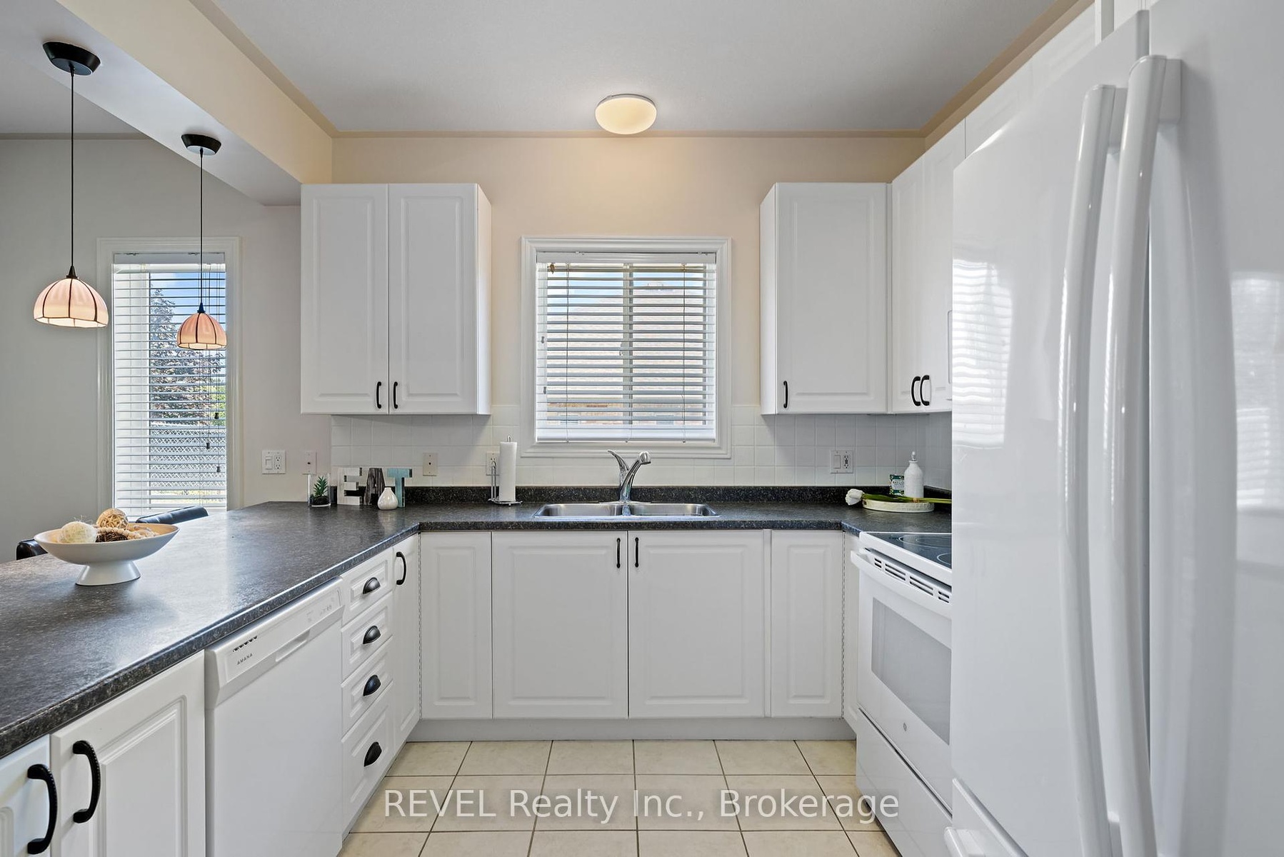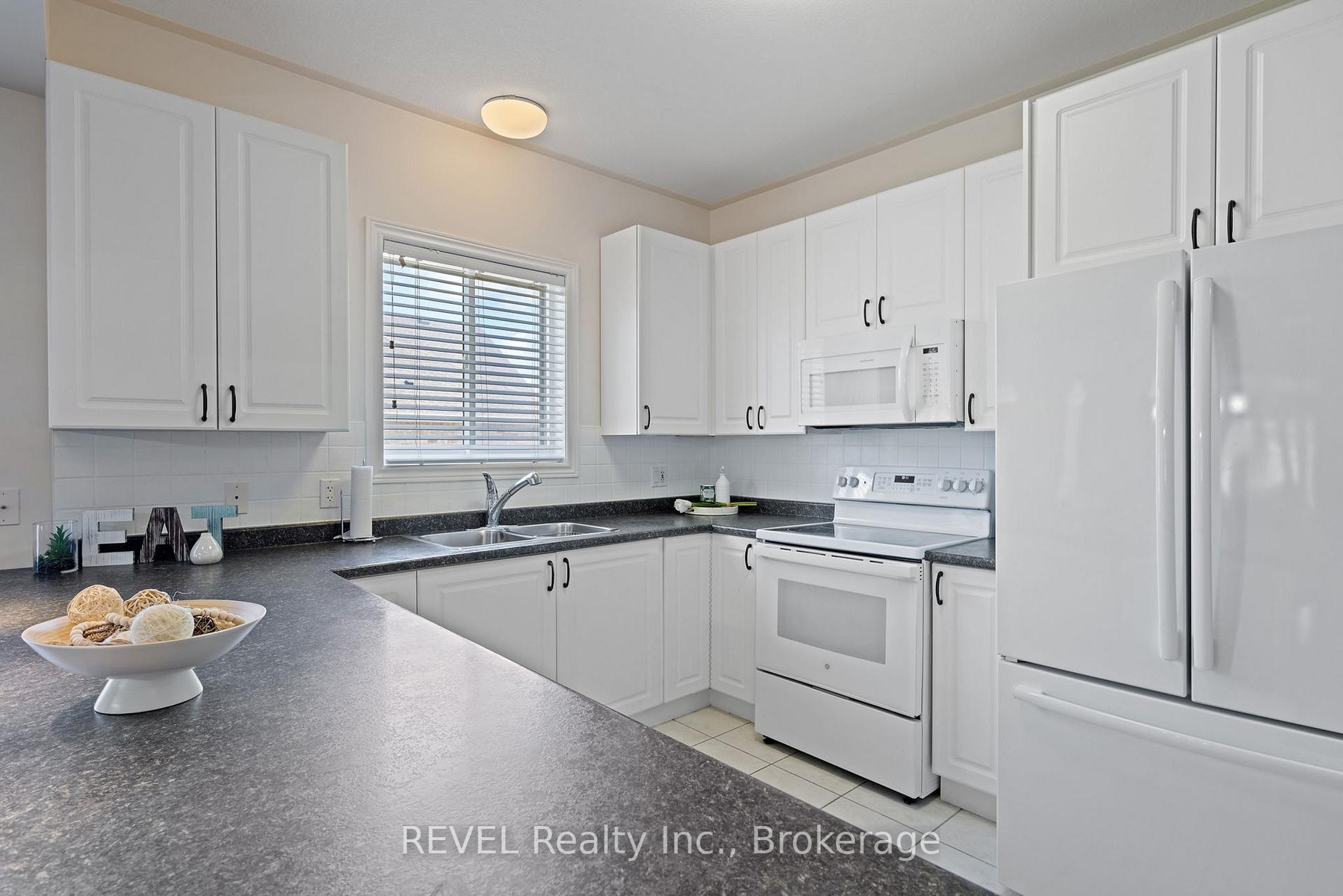 DescriptionTucked away on a peaceful dead-end street, this beautifully maintained bungalow-style end unit townhome offers stylish comfort and practical convenience in an ideal location. With a brick, stucco, and stone exterior, this home boasts great curb appeal and a warm, welcoming feel. Step inside to an open-concept layout that blends the kitchen, dining, and living areasperfect for everyday living and entertaining. The kitchen features bar seating, newer appliances including a stove, fridge, and dishwasher, and a water filtration system for added peace of mind. Just off the living area, enjoy a newer rear sunroom that extends your living space during the warmer months.The main floor includes a spacious primary bedroom and a second bedroom or home office, complete with elegant French doors. A 4-piece bathroom, hardwood floors in the main living areas, and a laundry room with ample storage round out the main level.The fully finished basement expands your living space with a cozy rec room featuring a fireplace, an additional bedroom, a 3-piece bathroom, and a large unfinished storage area to suit your needs.Enjoy the thoughtfully landscaped backyard with a stone retaining wall, walkways, a partially fenced yard, and a utility shed. A rear gas hookup is ready for summer BBQs, and the single-car garage adds convenience.Located just minutes from Seaway Mall, Hwy 406, and all local amenities, this home is a fantastic opportunity to enjoy easy, low-maintenance living in a quiet, convenient setting.Amenities- Auto Garage Door Remote