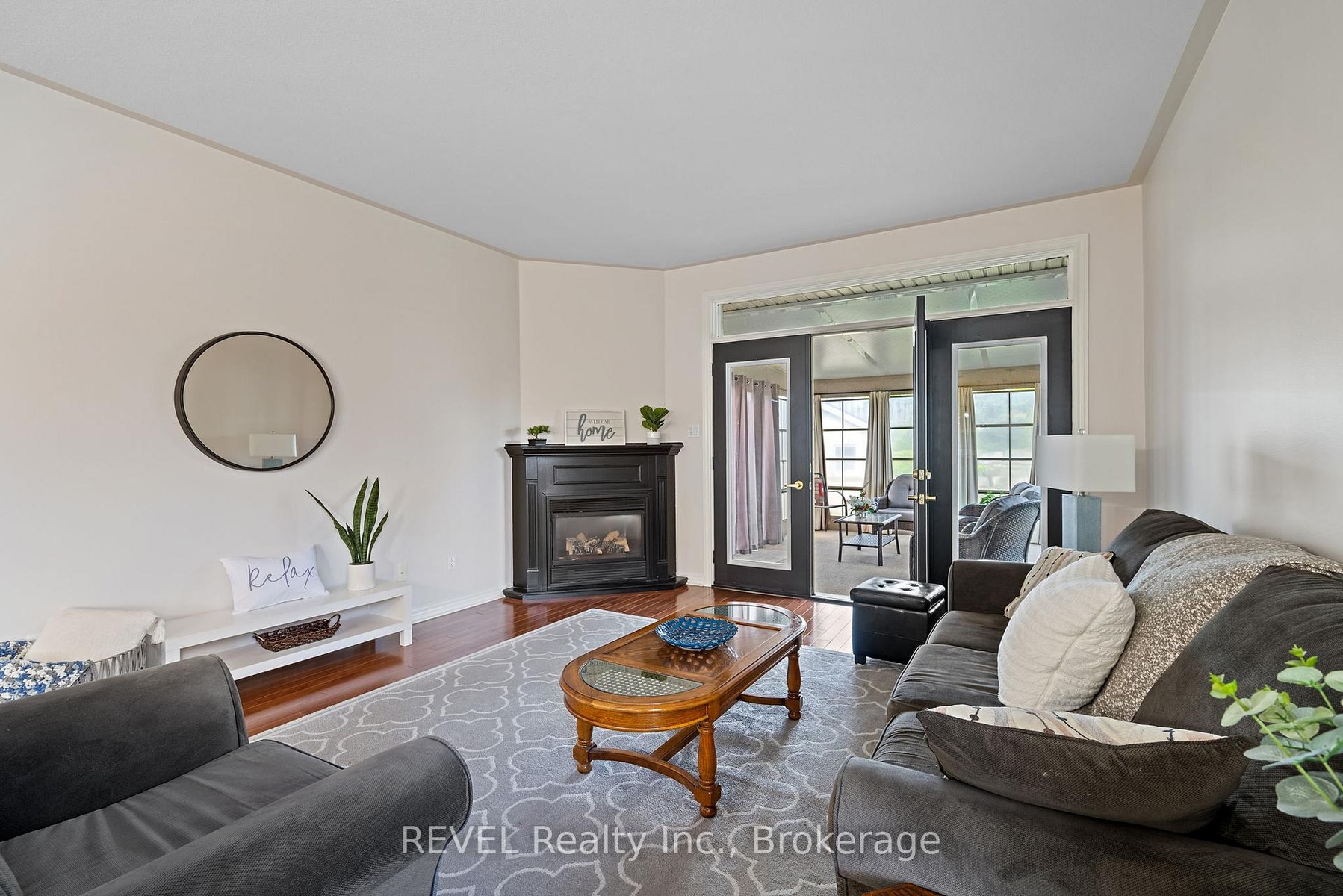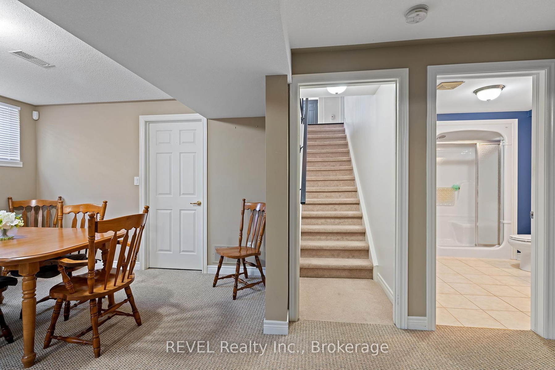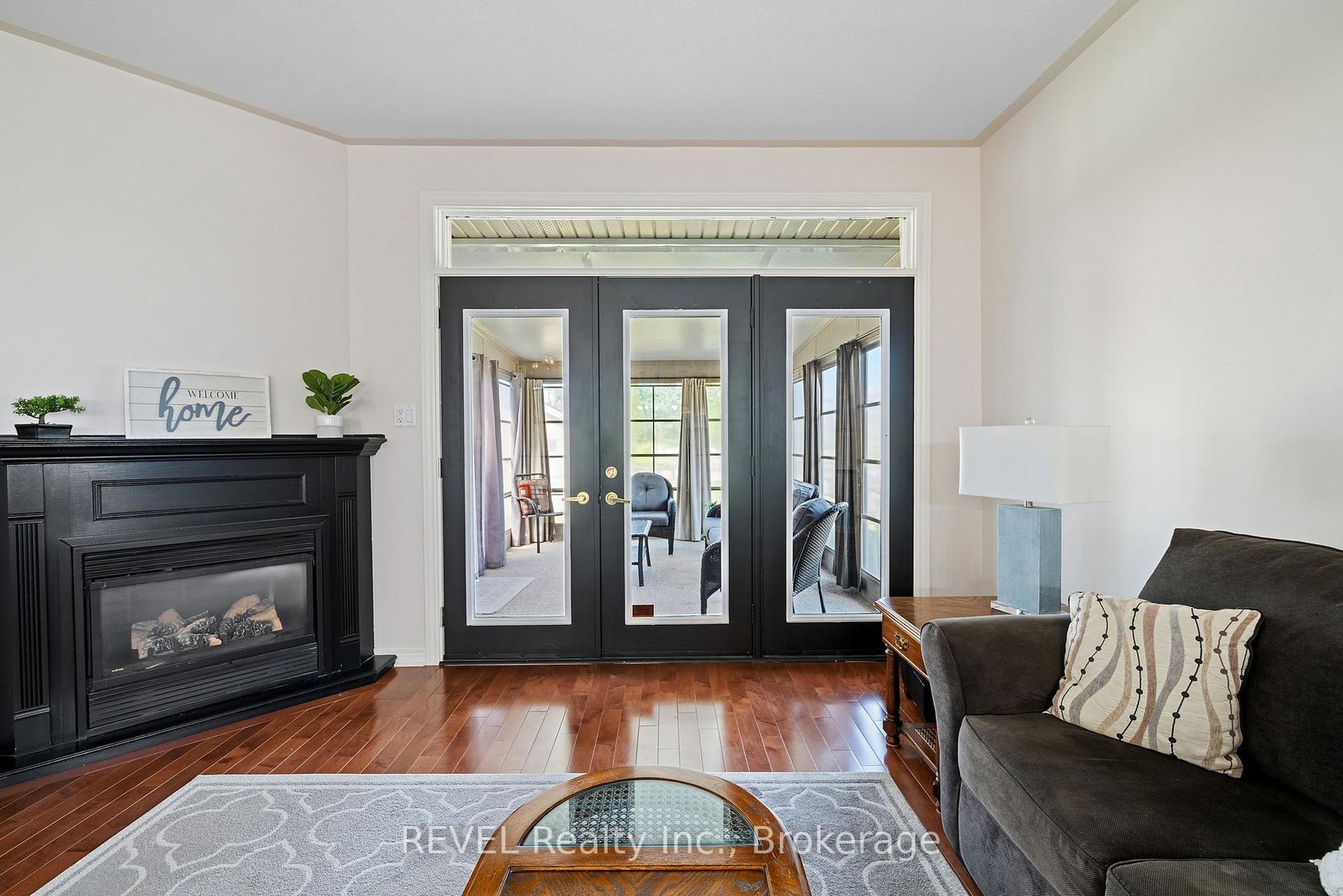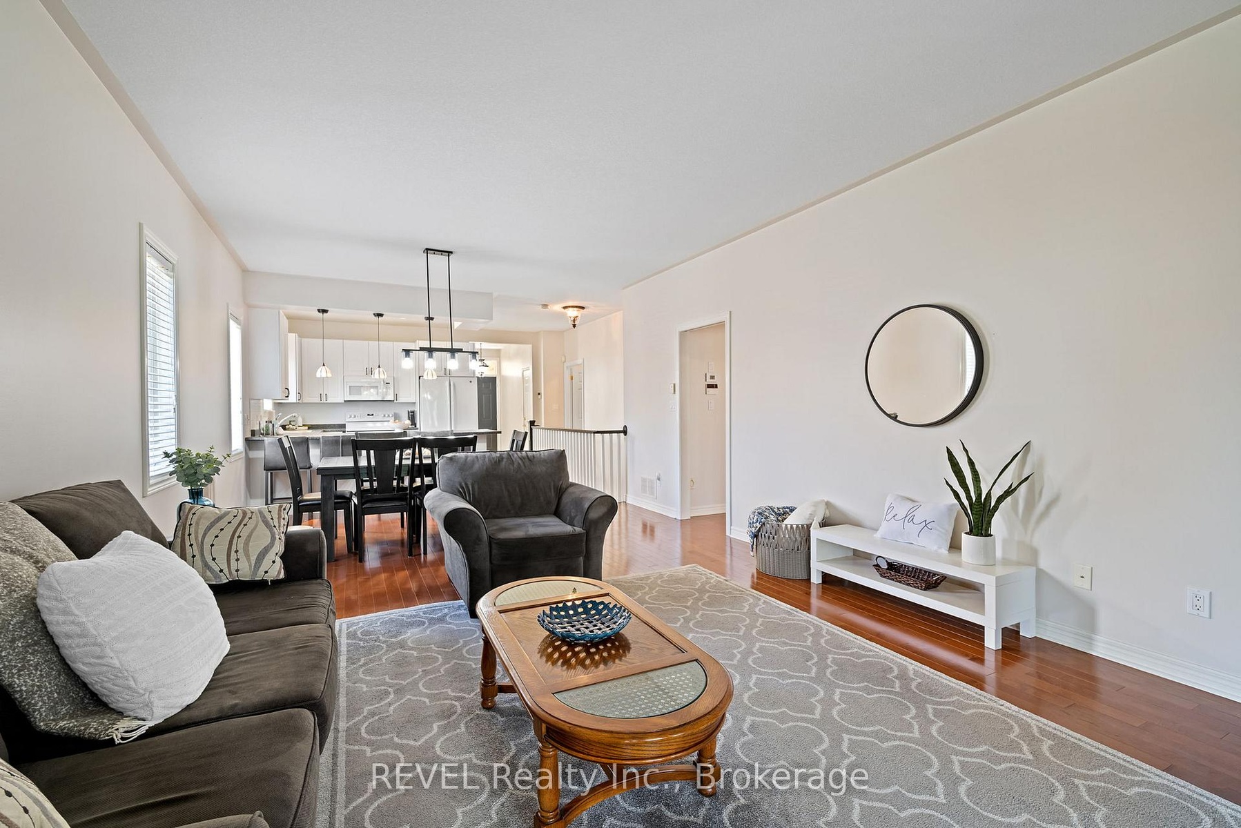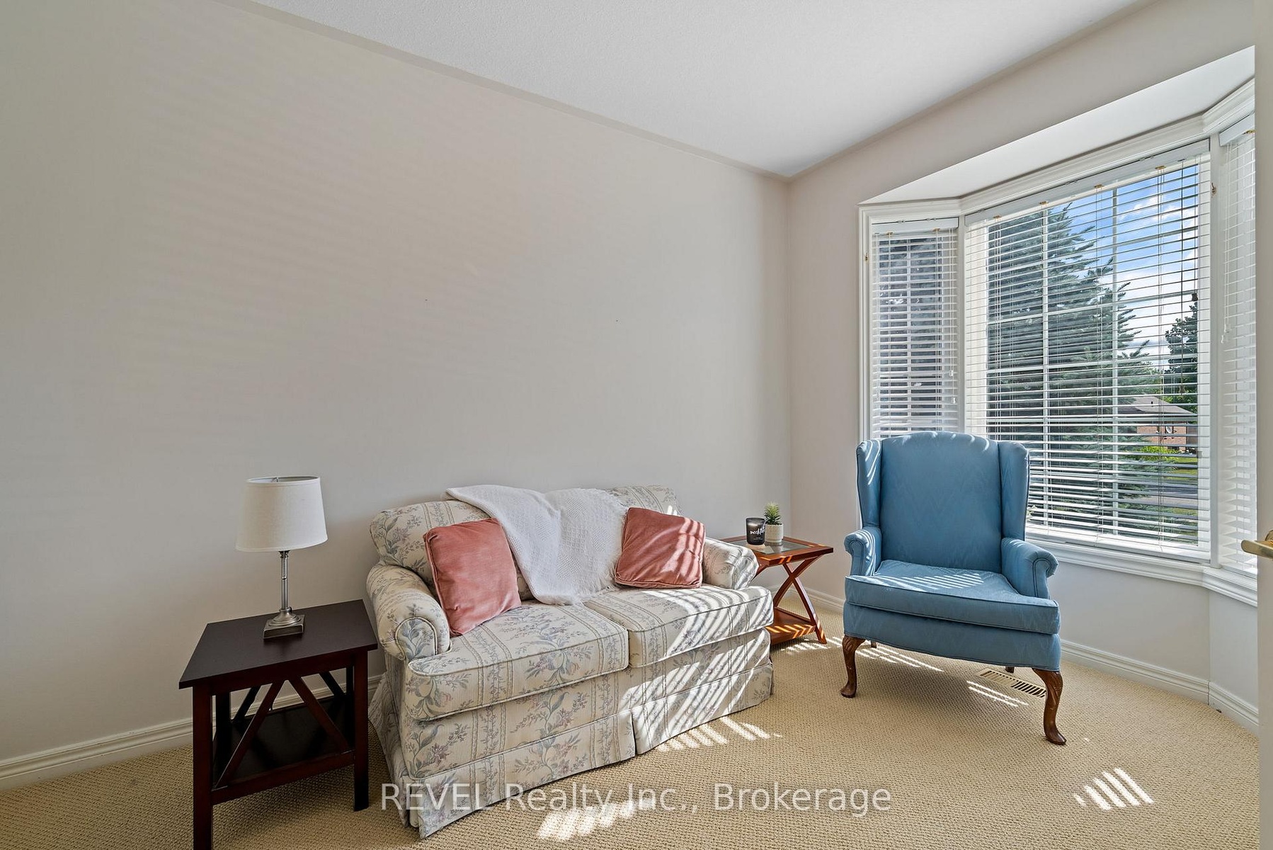 DescriptionTucked away on a peaceful dead-end street, this beautifully maintained bungalow-style end unit townhome offers stylish comfort and practical convenience in an ideal location. With a brick, stucco, and stone exterior, this home boasts great curb appeal and a warm, welcoming feel. Step inside to an open-concept layout that blends the kitchen, dining, and living areasperfect for everyday living and entertaining. The kitchen features bar seating, newer appliances including a stove, fridge, and dishwasher, and a water filtration system for added peace of mind. Just off the living area, enjoy a newer rear sunroom that extends your living space during the warmer months.The main floor includes a spacious primary bedroom and a second bedroom or home office, complete with elegant French doors. A 4-piece bathroom, hardwood floors in the main living areas, and a laundry room with ample storage round out the main level.The fully finished basement expands your living space with a cozy rec room featuring a fireplace, an additional bedroom, a 3-piece bathroom, and a large unfinished storage area to suit your needs.Enjoy the thoughtfully landscaped backyard with a stone retaining wall, walkways, a partially fenced yard, and a utility shed. A rear gas hookup is ready for summer BBQs, and the single-car garage adds convenience.Located just minutes from Seaway Mall, Hwy 406, and all local amenities, this home is a fantastic opportunity to enjoy easy, low-maintenance living in a quiet, convenient setting.Amenities- Auto Garage Door Remote