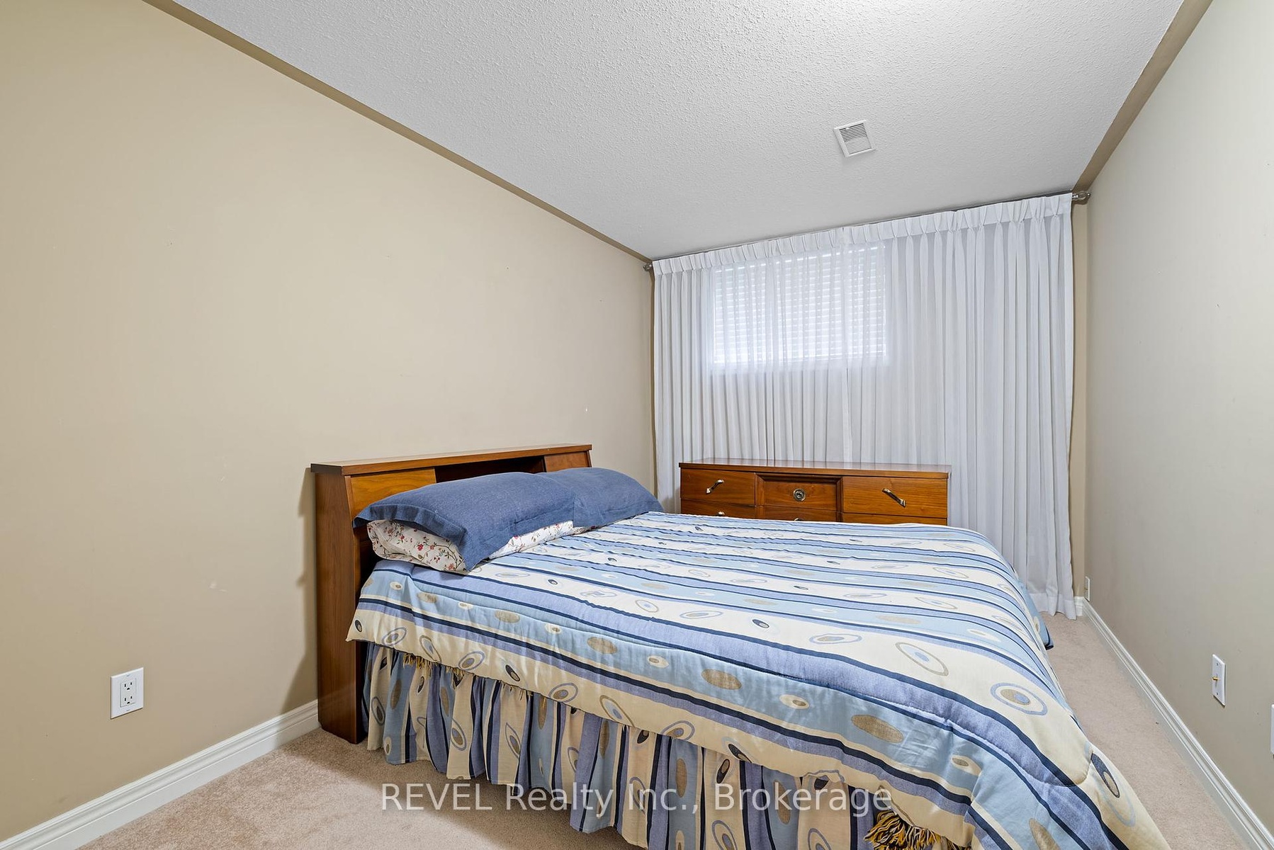 Tucked away on a peaceful dead-end street, this beautifully maintained bungalow-style end unit townhome offers stylish comfort and practical convenience in an ideal location. With a brick, stucco, and stone exterior, this home boasts great curb appeal and a warm, welcoming feel. Step inside to an open-concept layout that blends the kitchen, dining, and living areasperfect for everyday living and entertaining. The kitchen features bar seating, newer appliances including a stove, fridge, and dishwasher, and a water filtration system for added peace of mind. Just off the living area, enjoy a newer rear sunroom that extends your living space during the warmer months.The main floor includes a spacious primary bedroom and a second bedroom or home office, complete with elegant French doors. A 4-piece bathroom, hardwood floors in the main living areas, and a laundry room with ample storage round out the main level.The fully finished basement expands your living space with a cozy rec room featuring a fireplace, an additional bedroom, a 3-piece bathroom, and a large unfinished storage area to suit your needs.Enjoy the thoughtfully landscaped backyard with a stone retaining wall, walkways, a partially fenced yard, and a utility shed. A rear gas hookup is ready for summer BBQs, and the single-car garage adds convenience.Located just minutes from Seaway Mall, Hwy 406, and all local amenities, this home is a fantastic opportunity to enjoy easy, low-maintenance living in a quiet, convenient setting.