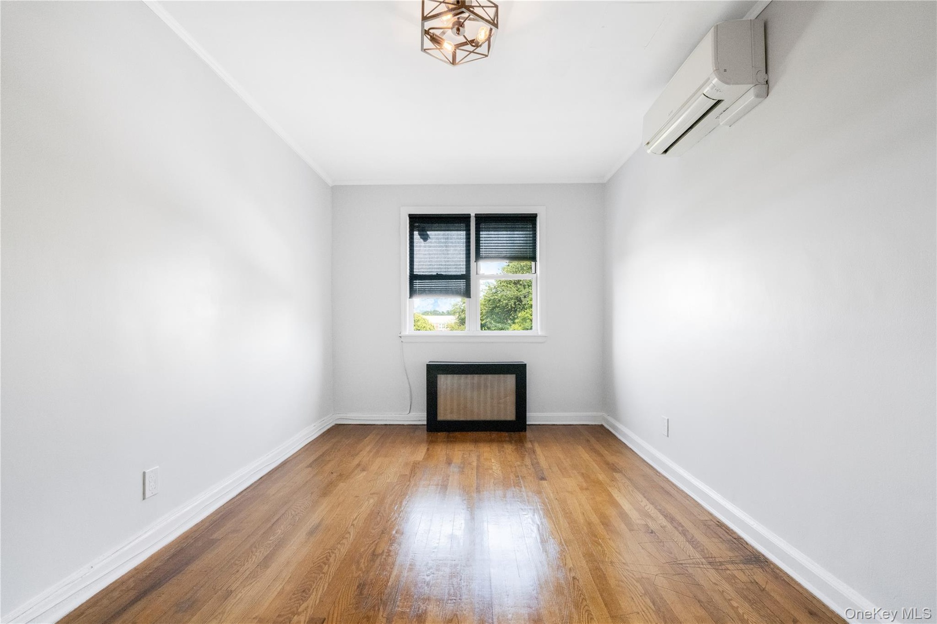 - Spare room featuring hardwood / wood-style flooring, a wall mounted AC, and radiator