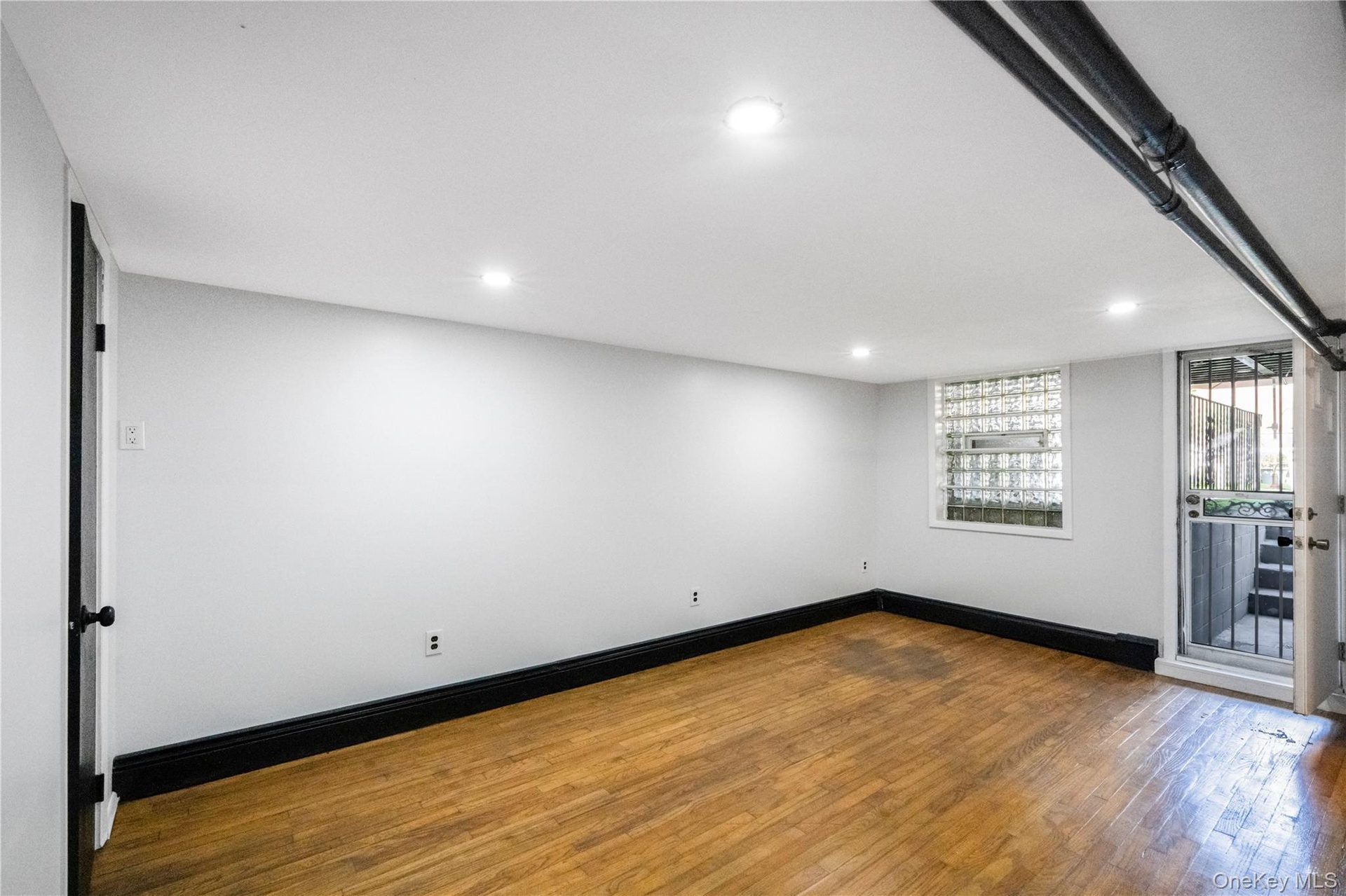 - Unfurnished room with dark wood-type flooring and recessed lighting