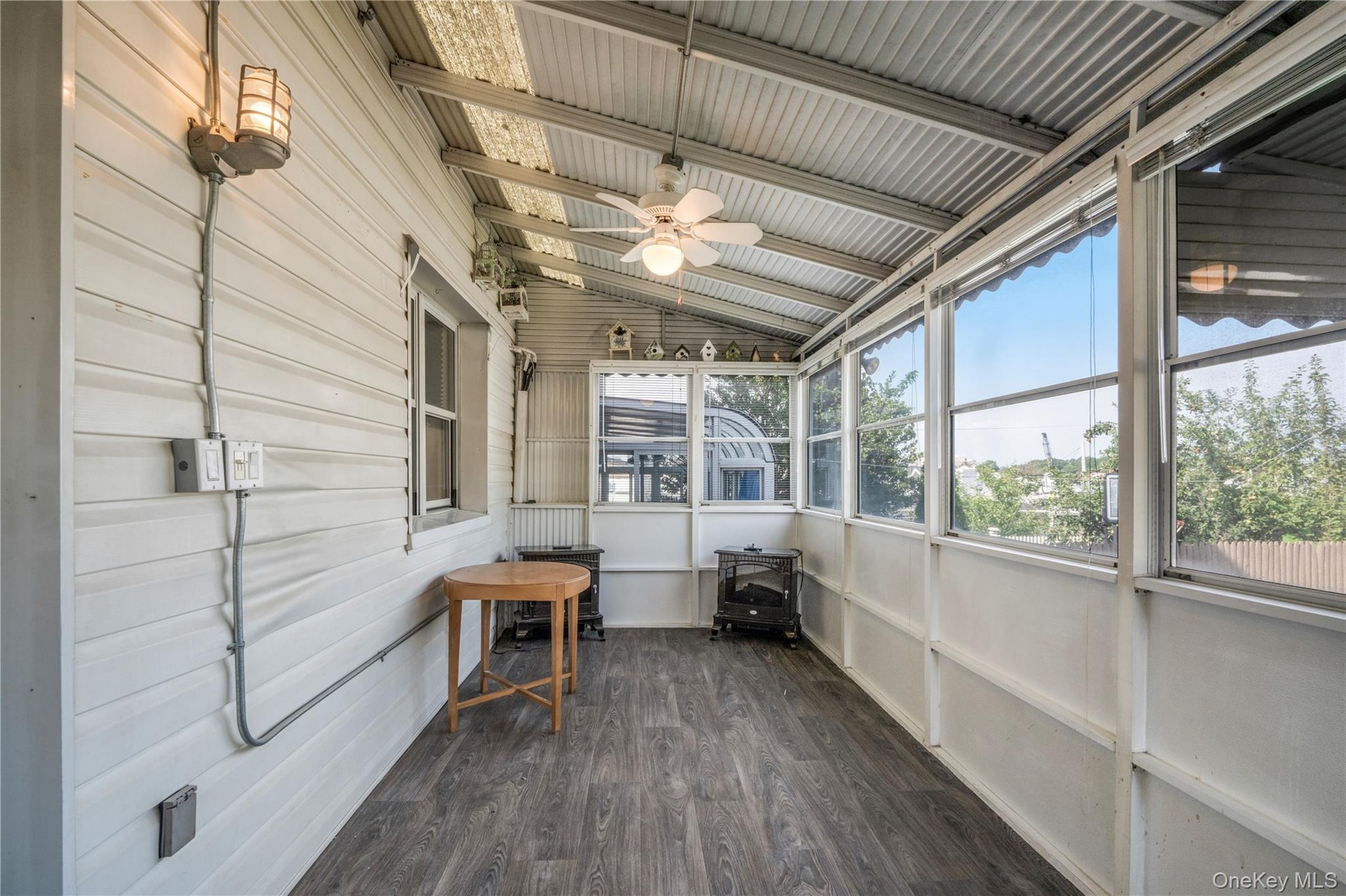 - Sunroom featuring vaulted ceiling and a ceiling fan
