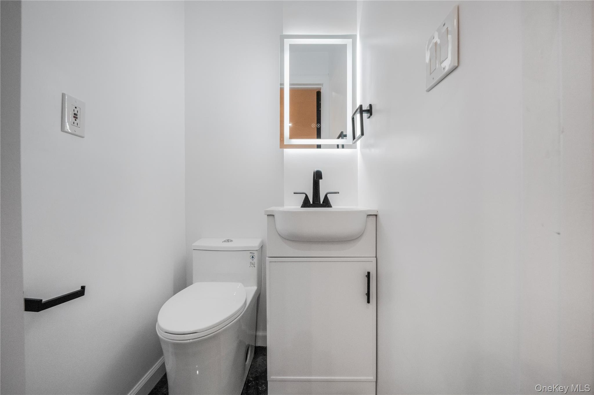 - Half bathroom with vanity and toilet