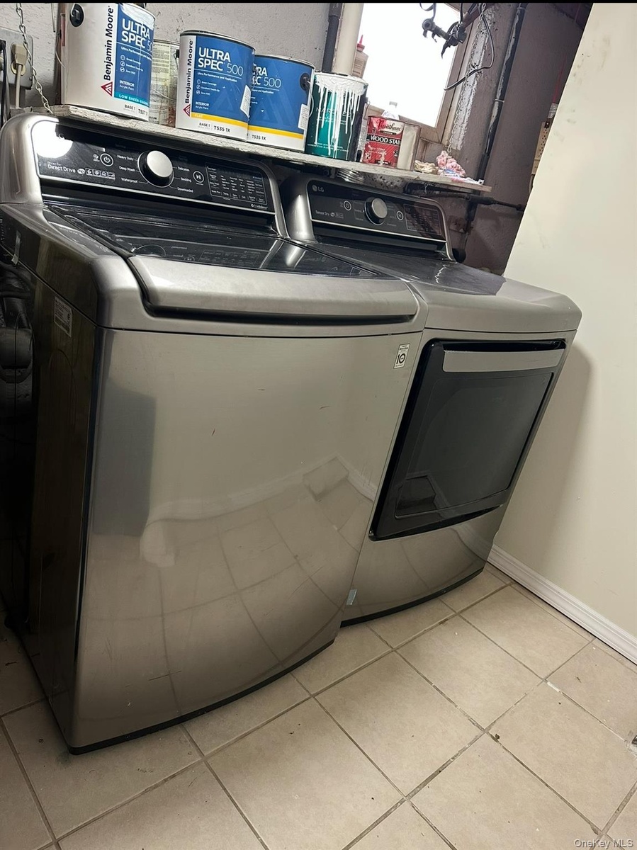 - Washroom featuring light tile patterned floors and separate washer and dryer
