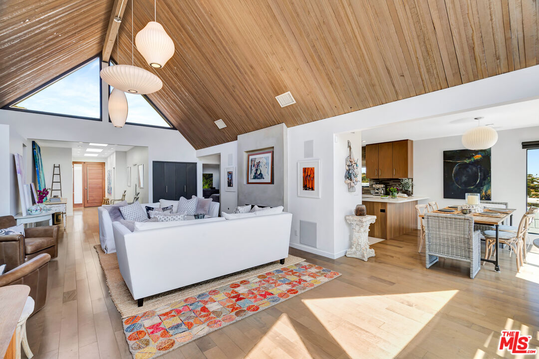 Modern Coastal Living in Sunset Mesa. This fully rebuilt 4BD/3BA home blends modern design with breathtaking ocean and mountain views. The expanded open layout showcases vaulted ceilings, custom plate glass windows, and a seamless connection to outdoor living. From the backyard and living spaces, enjoy stunning views that stretch across the coastline, including the iconic Ferris wheel at the Santa Monica Pier. Every detail reflects quality: an 8' Douglas Fir entry door, walnut cabinetry, California Closets, custom shades, and Porcelanosa-tiled bathrooms with TOTO fixtures. The chef's kitchen features Sub-Zero, Thermador, Walker Zanger stone, and a wine fridge, perfect for entertaining. A climate-controlled garage with mini-split perfect for a gym or art studio and integrated smart home technology complete the package. Located in Malibu's coveted Sunset Mesa community, just above the Getty Villa, you're minutes from Pacific Palisades, Santa Monica, and Malibu beaches, within the highly regarded SMMUSD district. Enjoy the rare combination of coastal tranquility, modern comfort, and convenience to city amenities. Neither seller nor Brokers/Agents guarantee the accuracy of allowable square footage, lot size, permits or other information concerning the property. Buyer is advised to independently verify the accuracy of all information through personally and with the appropriate professionals. Buyer is responsible for determining square footage of land, permits and lot lines. There are CC&R's in Sunset Mesa with ocean view protections.