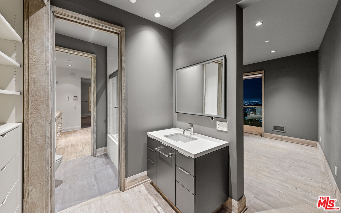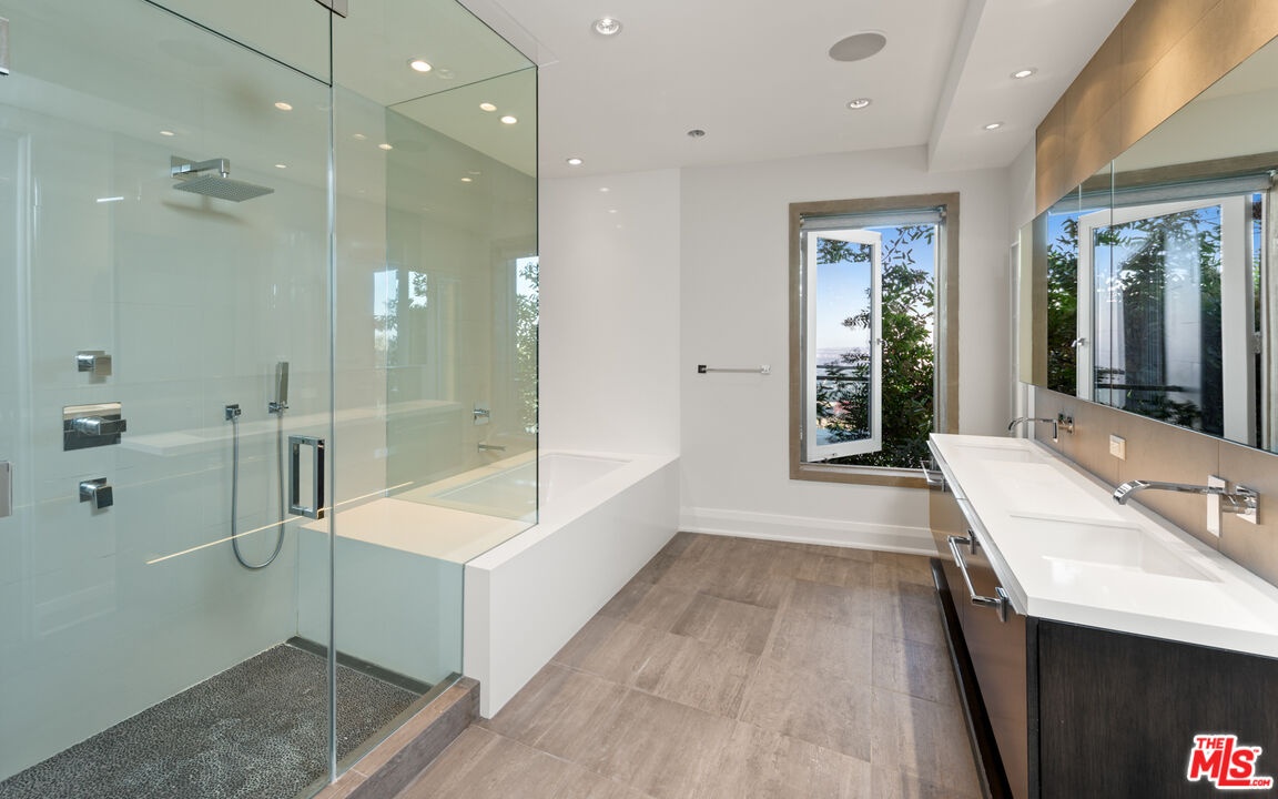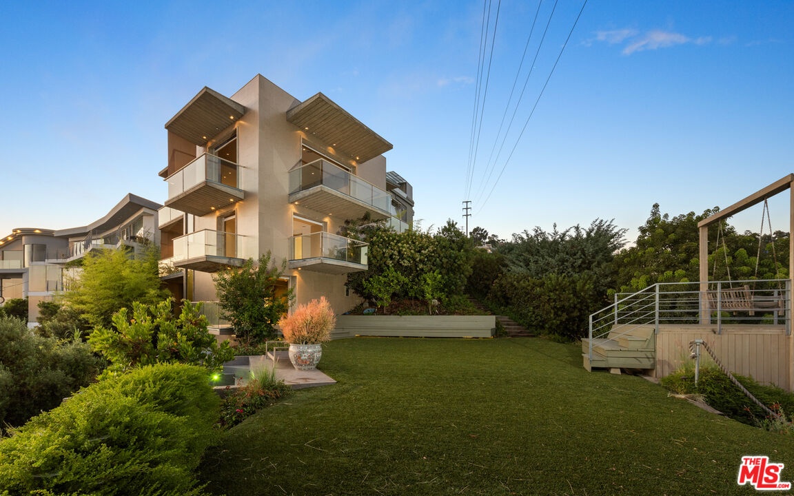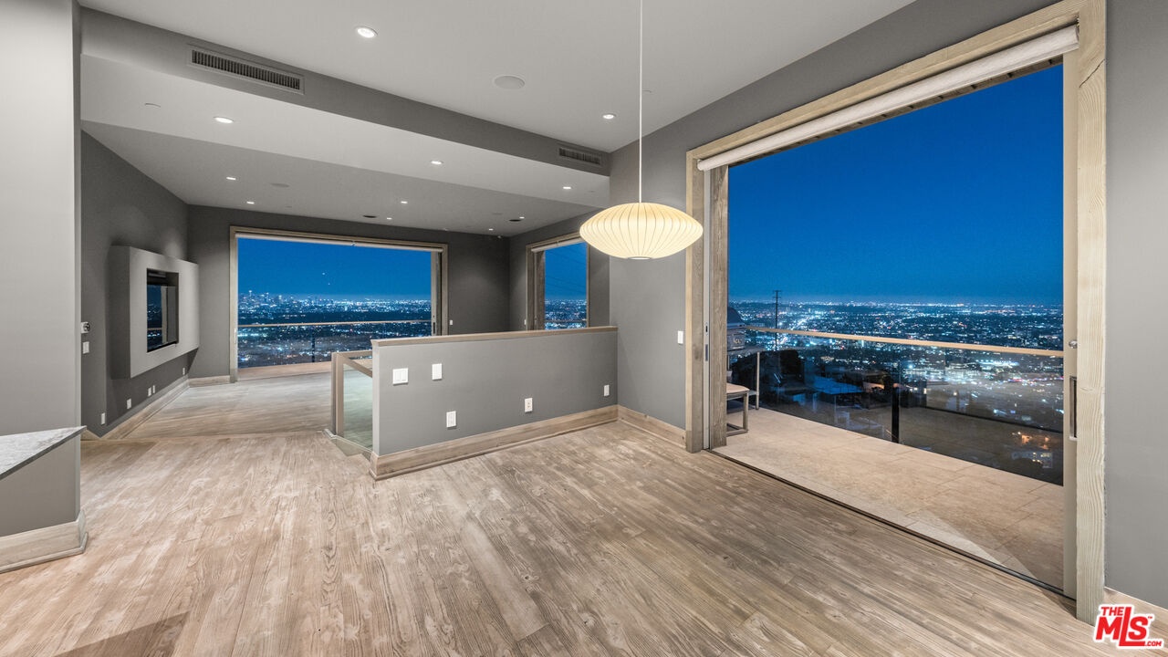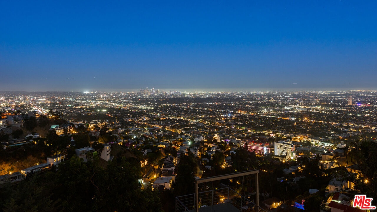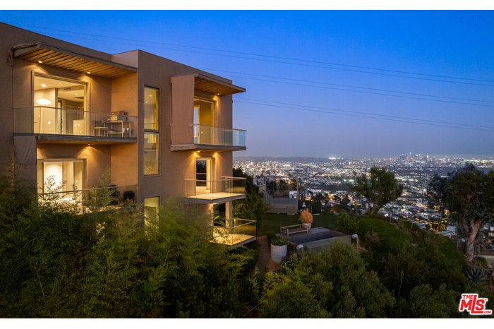 Situated high above the iconic Sunset Strip, this gated architectural masterpiece commands breathtaking jetliner views of the city skyline and the Pacific Ocean beyond. Meticulously designed to harmonize modern sophistication with the surrounding natural beauty, this three-bedroom with an office, five-bathroom residence spans over 3,400 square feet of refined living space. Flooded with natural light, the open-concept interior features disappearing pocket doors that blur the line between indoor and outdoor living, inviting in the shimmering city lights. Nine expansive limestone-clad balconies with covered roofs totaling approximately 700 square feet extend the living space into the open air, ideal for both relaxed lounging and sophisticated entertaining. At the heart of the home, the gourmet kitchen is a showcase of culinary artistry, appointed with top-tier appliances, custom cabinetry, and a generous central island that doubles as a gathering hub. The Primary Suite is a serene retreat, offering sweeping views from its private balcony, a spacious walk-in closet, and a spa-inspired bath with dual vanities and a soaking tub. Thoughtfully designed to embrace the outdoors, the property features a large hot tub, lush landscaping, multiple sitting areas, and a peaceful walking path leading to a scenic overlook. Additional highlights include a gated motor court with parking for up to six vehicles, a media area, detached casita/office, and eco-conscious xeriscape landscaping. Located in the prestigious Viewmont Heights enclave, this rare offering is moments from world-class shopping, dining, and entertainment.