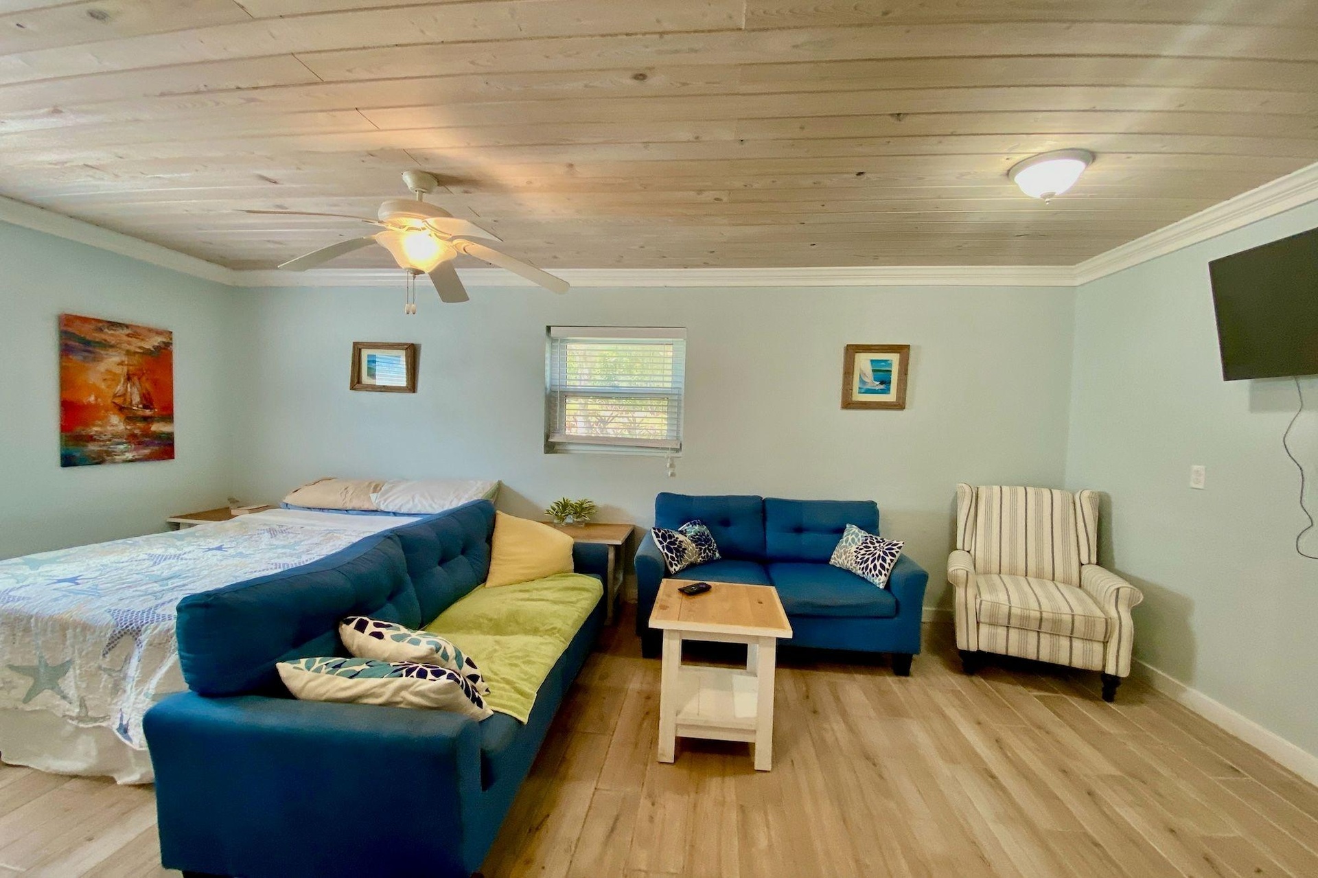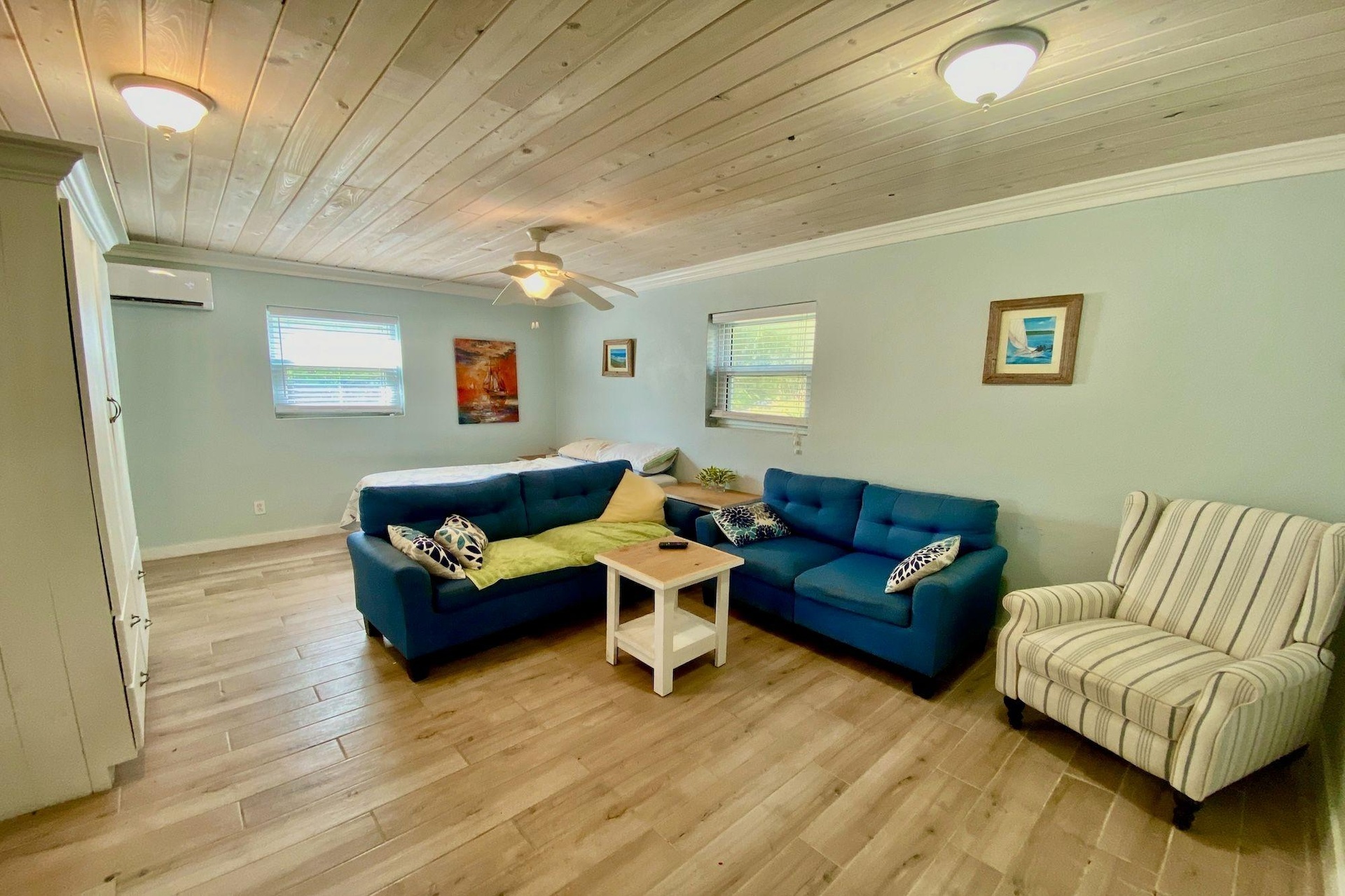 Two x Twice is a turnkey, self-sufficient ocean-view property in Eleuthera Island Shores, featuring a 1,200 sq ft two-bedroom, two-bath main home plus an 800 sq ft two-bedroom, one-bath apartment below for guests or rental income. Elevated 75 feet, it captures 120-degree Atlantic vistas, sunrises, and cooling breezes. Amenities include 7kW solar with Tesla batteries, 5,000-gallon cistern with water treatment, hurricane shutters, landscaped gardens with fruit trees, covered porches, workshop, and Starlink internet. A short walk to Surfer’s Beach and minutes from Gregory Town, it offers both relaxed island living and strong investment potential, midway between Eleuthera’s two airports.