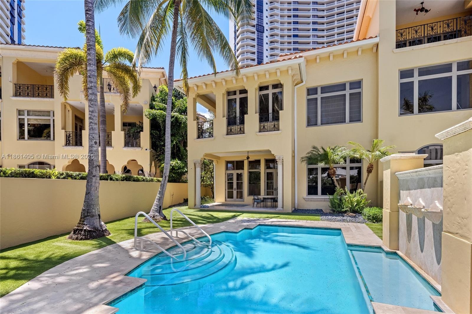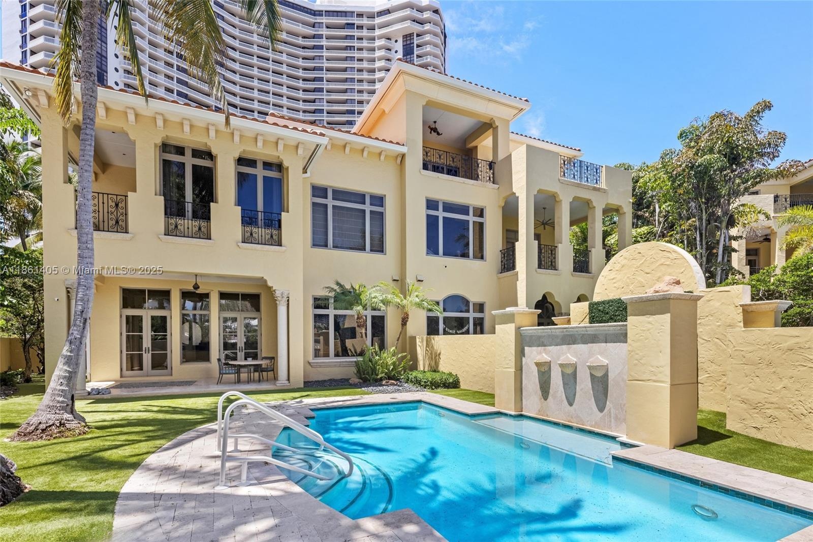 Tucked away on the tip of prestigious Williams Island, Villa Flora is a private enclave of just 14 stately villas. This 5,628 SF two-story residence features 4 bedrooms + office, 3.5 baths, an elevator, private resort-style pool, generator, 2-car garage, and parking for up to 6 cars. The updated kitchen, soaring ceilings, spacious custom built-in closets, and open layout offer refined, elegant living. Enjoy a lushly landscaped backyard and covered terrace—perfect for entertaining—along with the world-class amenities of the Island Club, including concierge, state-of-the-art gym, spa, dining, tennis, and marina access for vessels up to 120 ft with direct deep-water Intracoastal and Atlantic Ocean access.