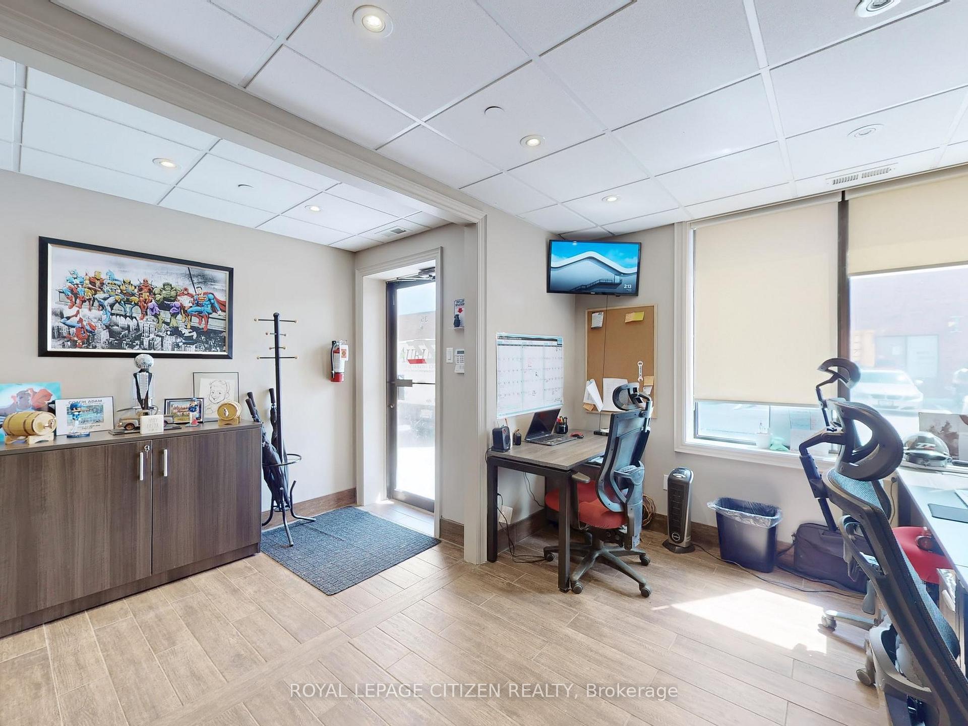 Prime Commercial Opportunity, in a Great Industrial Area. Position your business for success in this prominent and high-traffic location with exceptional frontage on Keele St. Zoned EM2, this versatile commercial unit offers a wide range of permitted uses. 1575 sq. ft on the main level and two mezzanines of just over 1000 sq. ft for storage. This unit has a functional layout with a kitchenette, two washrooms, and flexible open areas ready for immediate occupancy or customization to meet your unique business needs. Convenient access to HWY 7, 407, 400, and Langstaff. Easily accessible to major suppliers, retail, and service businesses. This property offers the space, location, and zoning flexibility to support your business.