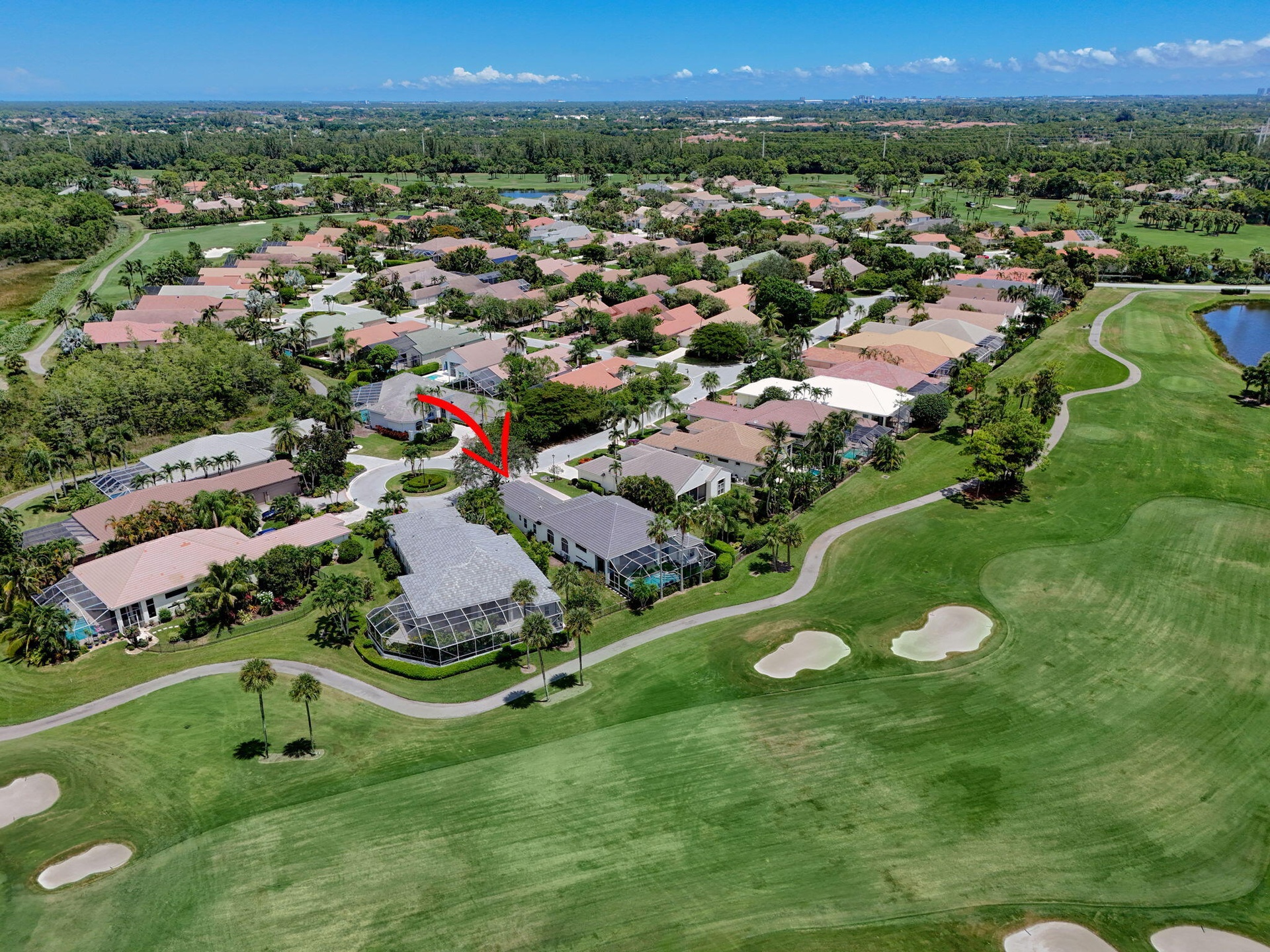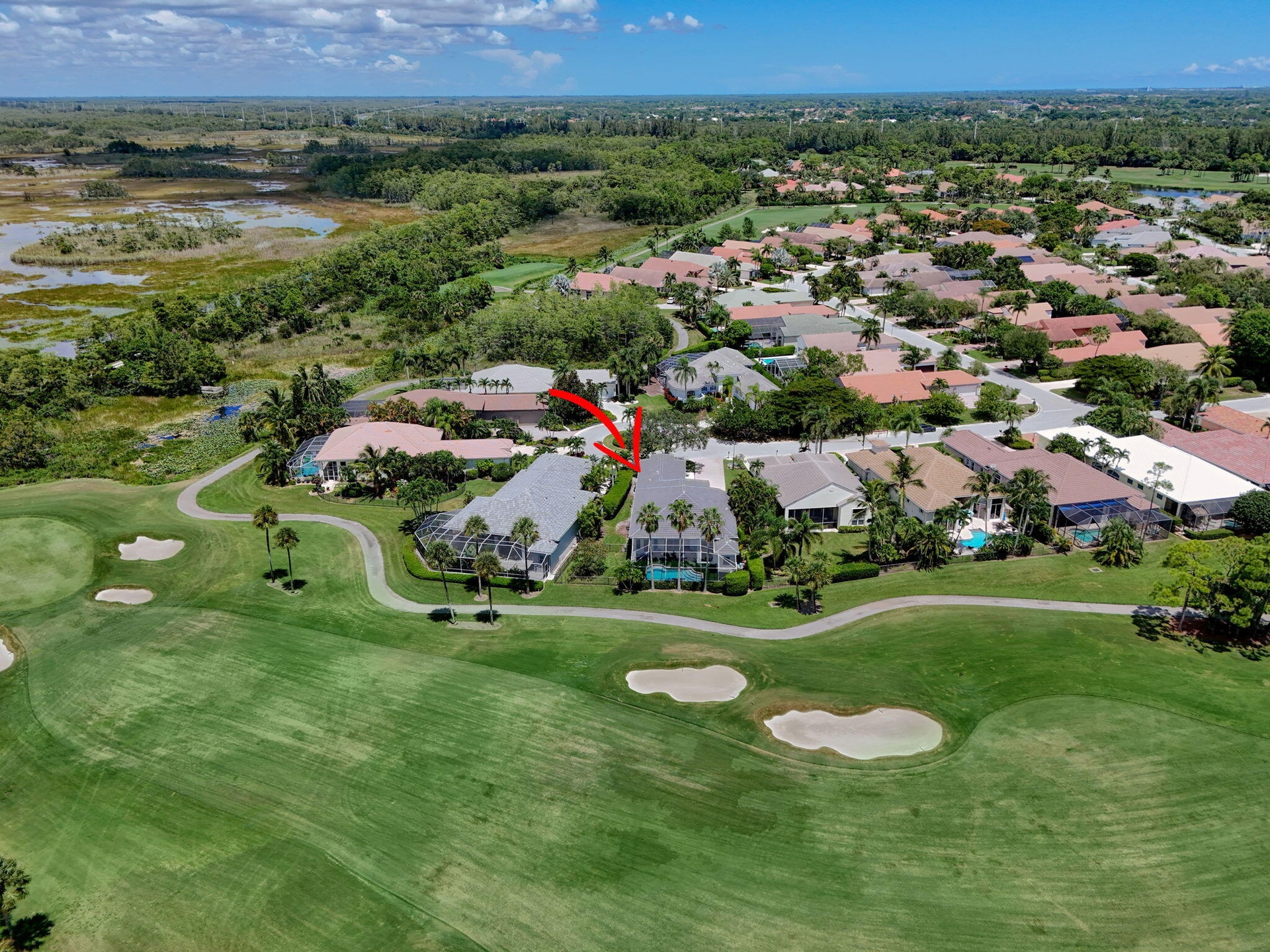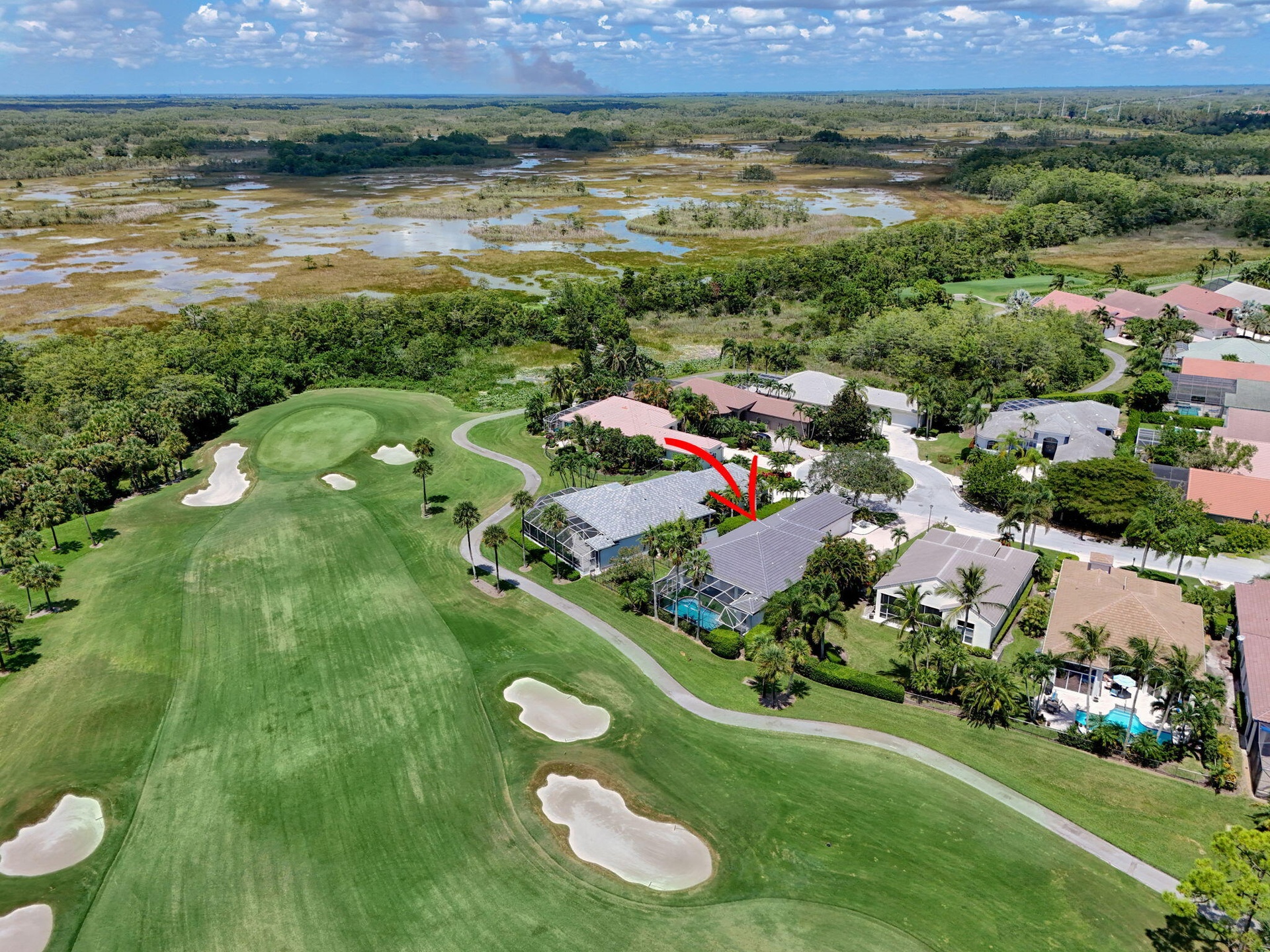 Set on a private cul-de-sac in the boutique Ironhorse community, this updated 4-bedroom, 4-bath ranch styled home offers panoramic views of the preserve, & the renowned Arthur Hills Championship golf course, with no mandatory membership. Be captivated by the 12-ft ceilings with abundant natural light, elegant new porcelain tile floors throughout, a brand-new roof (2024), new A/C, new pool heater, new water heater, new pool pump, new impact double front door, new tesla charger, new rock garden, extended driveway & fresh interior & exterior paint.The open-concept kitchen with quartz countertops, a built-in breakfast nook, & a shiplap-accented island, flowing into spacious living areas framed by custom wood panel media wall & sweeping golf views, while the primary suite boasts custom his &