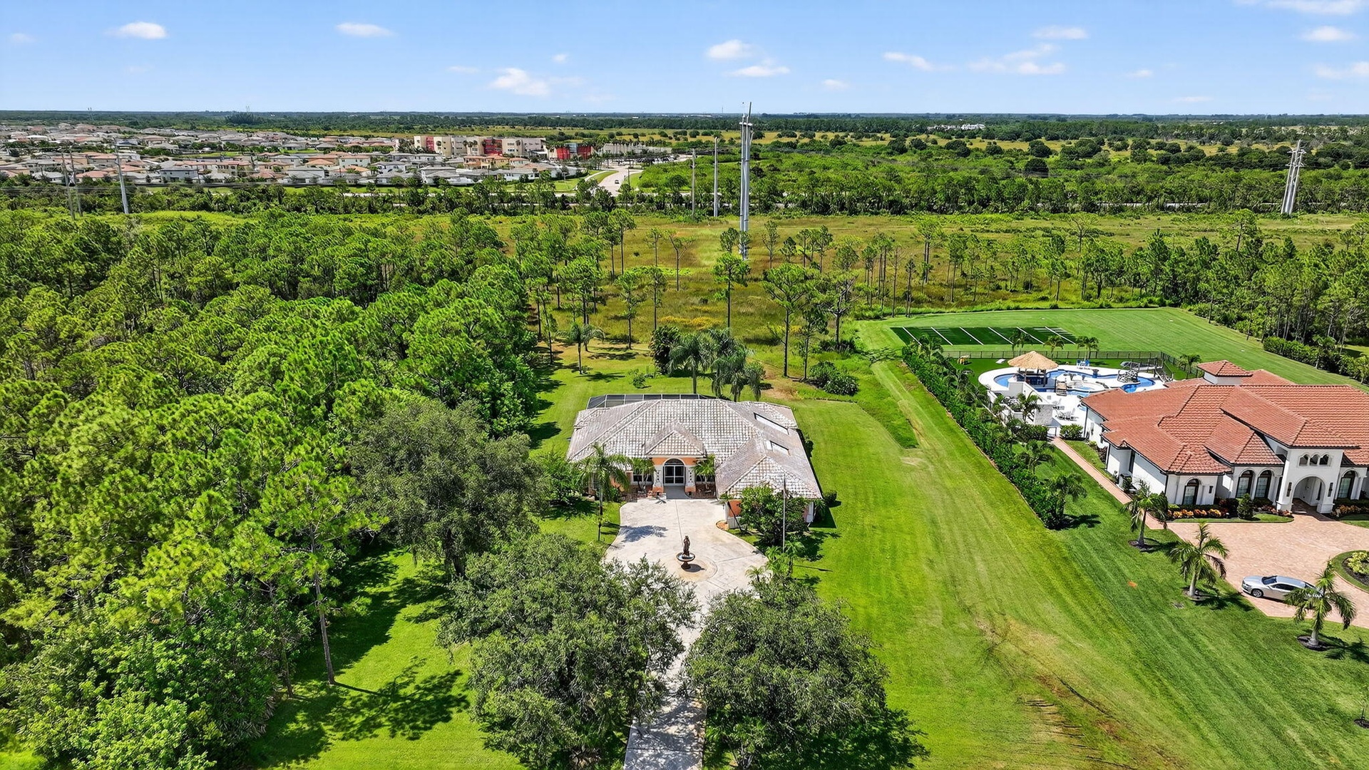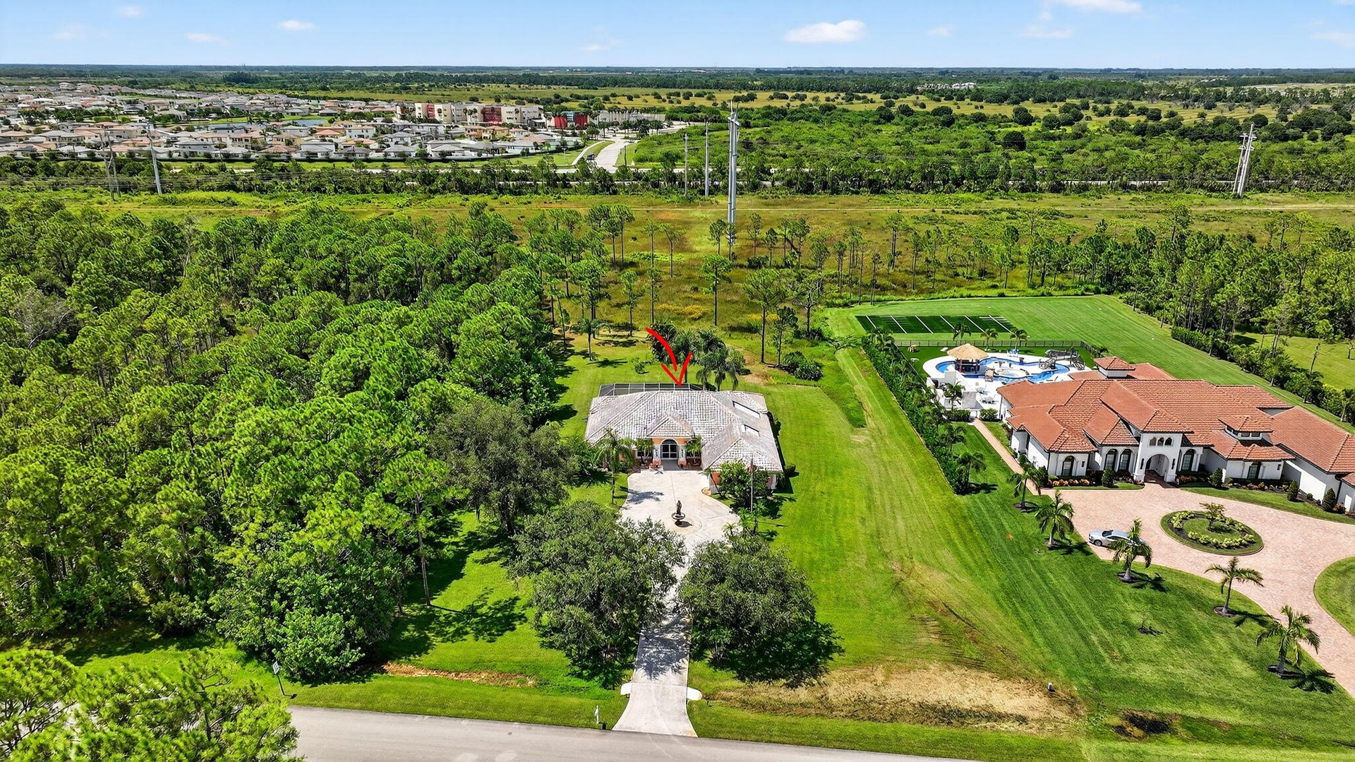 DescriptionLocated in the exclusive Sable Creek subdivision of PGA Village... A rare opportunity to own a 3-bedroom, 3-bath CBS pool home situated on over 4.3 ACRES in one of PGA Village's most prestigious enclaves, surrounded by multi-million-dollar estates. This property boasts a BRAND-NEW METAL ROOF being installed this month! The spacious open floor plan includes a formal living room, dining room, family room, and an eat-in kitchen, perfect for both everyday living and entertaining. The owner's suite features elegant coffered ceilings, a beautifully updated bath, and a massive walk-in closet along with an additional walk-in for ample storage. Multiple sets of sliding glass doors open to a large covered and screened patio, overlooking the sparkling pool,spa,and pergola creating a private retreat