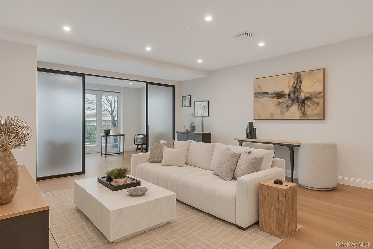 - Living room with visible vents, recessed lighting, and light wood finished floors