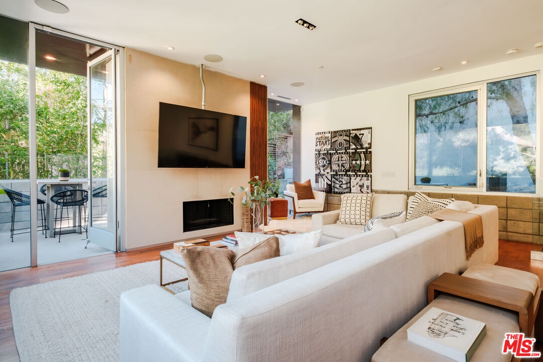Designed and built by the award winning architectural firm Tag Front, this sophisticated Beverly Hills hideaway offers a one of a kind modern retreat on a quiet, serene street. A true modern masterpiece, the residence integrates an industrial aesthetic with loft like open spaces and masterful use of unique materials. Concrete and walnut flooring, soaring glass walls, stainless steel accents, and exposed beams blend harmoniously to create a warm yet contemporary atmosphere. Walls of glass and volume ceilings emphasize seamless indoor/outdoor living, with a private patio, fire pit, and room for a lap pool surrounded by lush green vistas. The gourmet chef's kitchen features a walk-in pantry, while the fabulous primary retreat offers spacious closets and a tranquil ambiance. Every detail reflects Tag Front's signature craftsmanship, from the striking finishes to the meticulous attention to form and function. Private, quiet, and beautifully maintained, this architectural oasis feels worlds away, yet is just minutes from Beverly Hills' finest shops, restaurants, and nightlife.