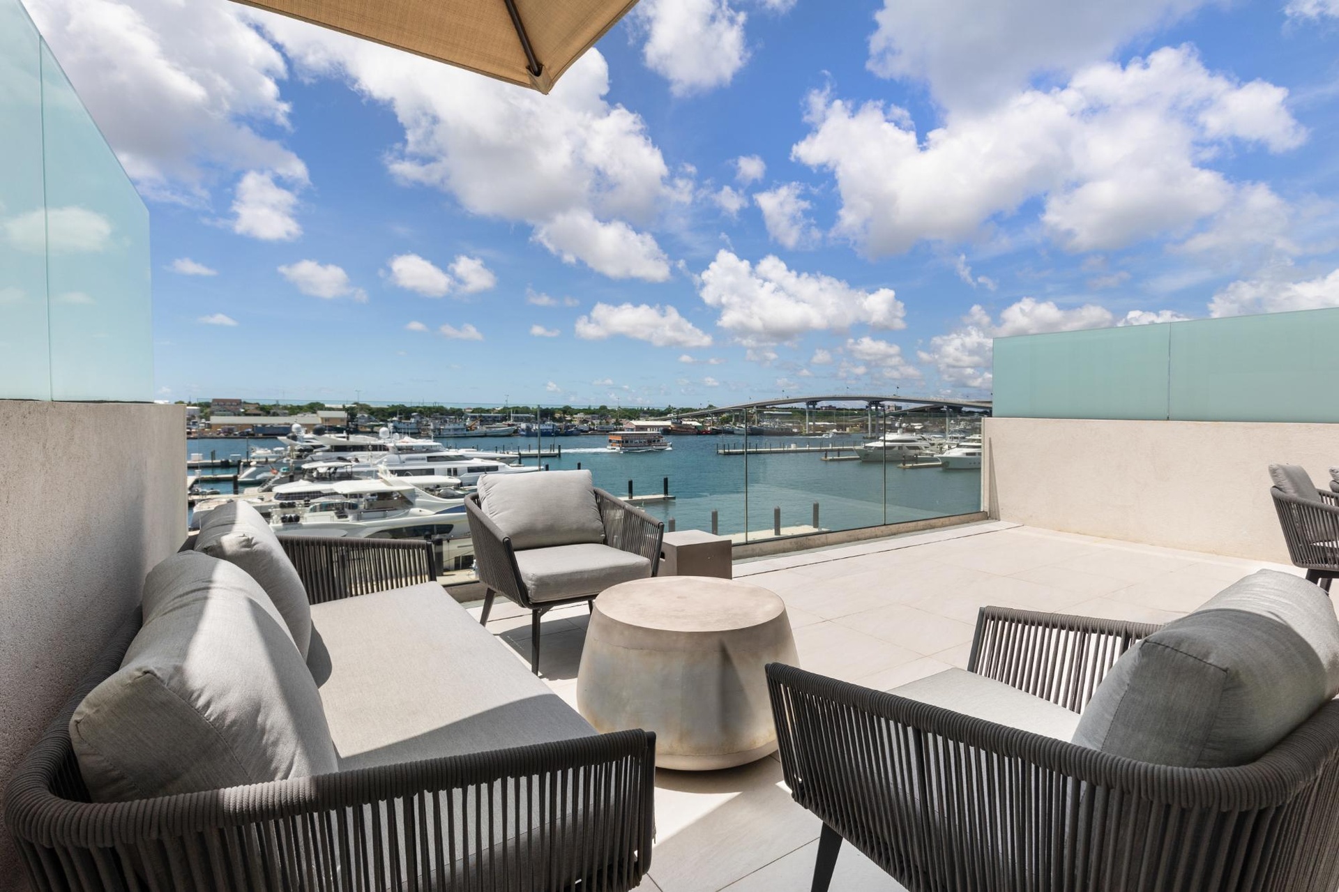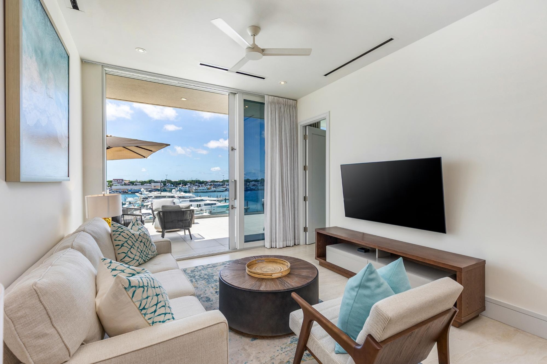 This stunning 2-bedroom, 2-bathroom condominium presents a rare opportunity to own a marina-facing residence in the exclusive Sterling Commons located at Hurricane Hole Marina on Paradise Island. With its prime location, modern amenities, and breathtaking waterfront views, this property is ideal for full-time living, a private retreat, or a high-demand investment. The spacious layout features two generously sized bedrooms, and two full bathrooms designed for comfort and functionality. High-quality finishes, sleek fixtures, and updated appliances highlight the well-appointed kitchen, while the open living and dining areas flow seamlessly to a private balcony perfect for enjoying the vibrant marina and Nassau Harbour views. Move-in ready and turnkey, the residence is equally suited for immediate occupancy or as a lucrative rental property. Set within Hurricane Hole Mega yacht Marina, owners enjoy direct access to world-class yachting facilities, as well as community amenities. Two dock slips totaling 115ft are available for sale with this unit.