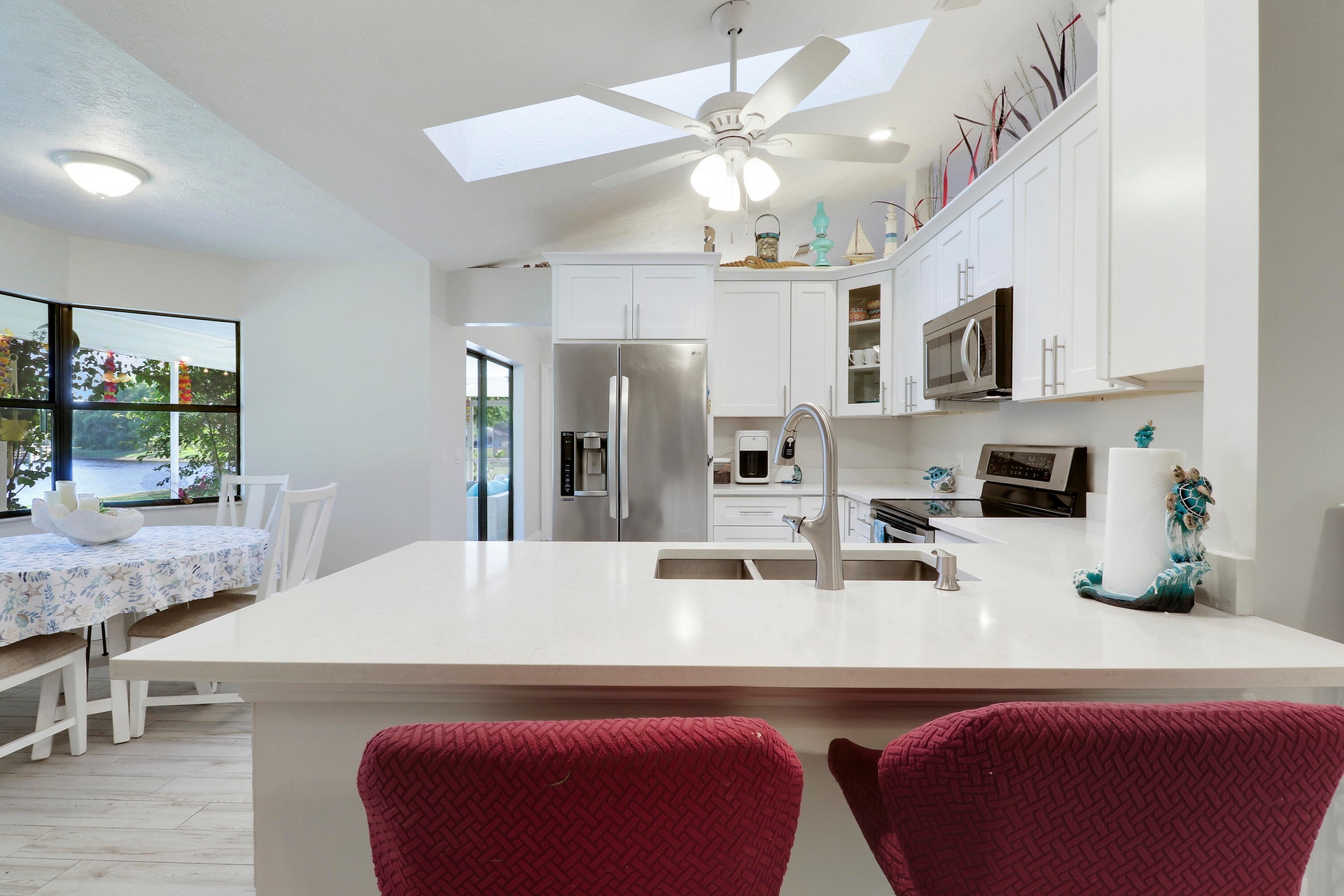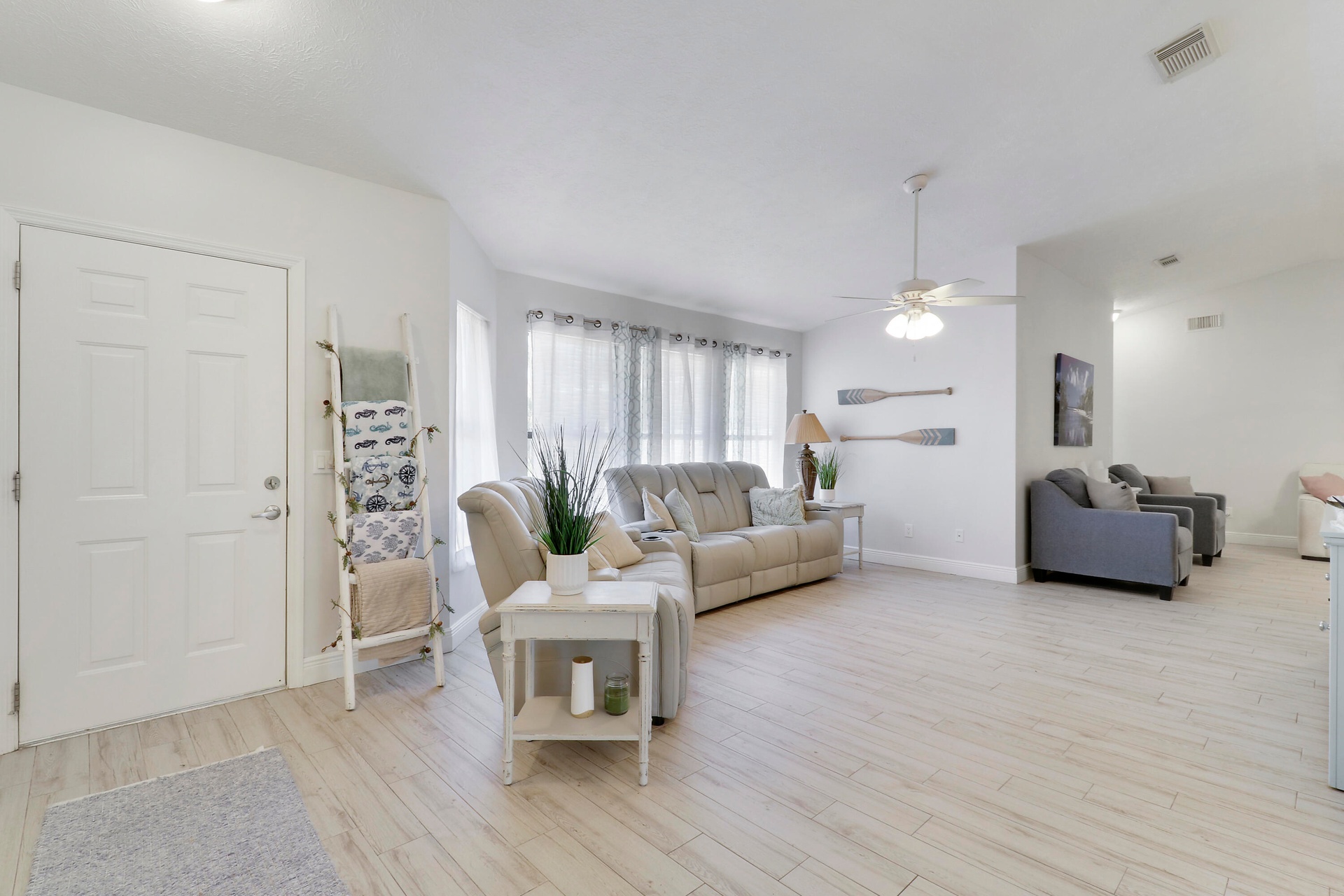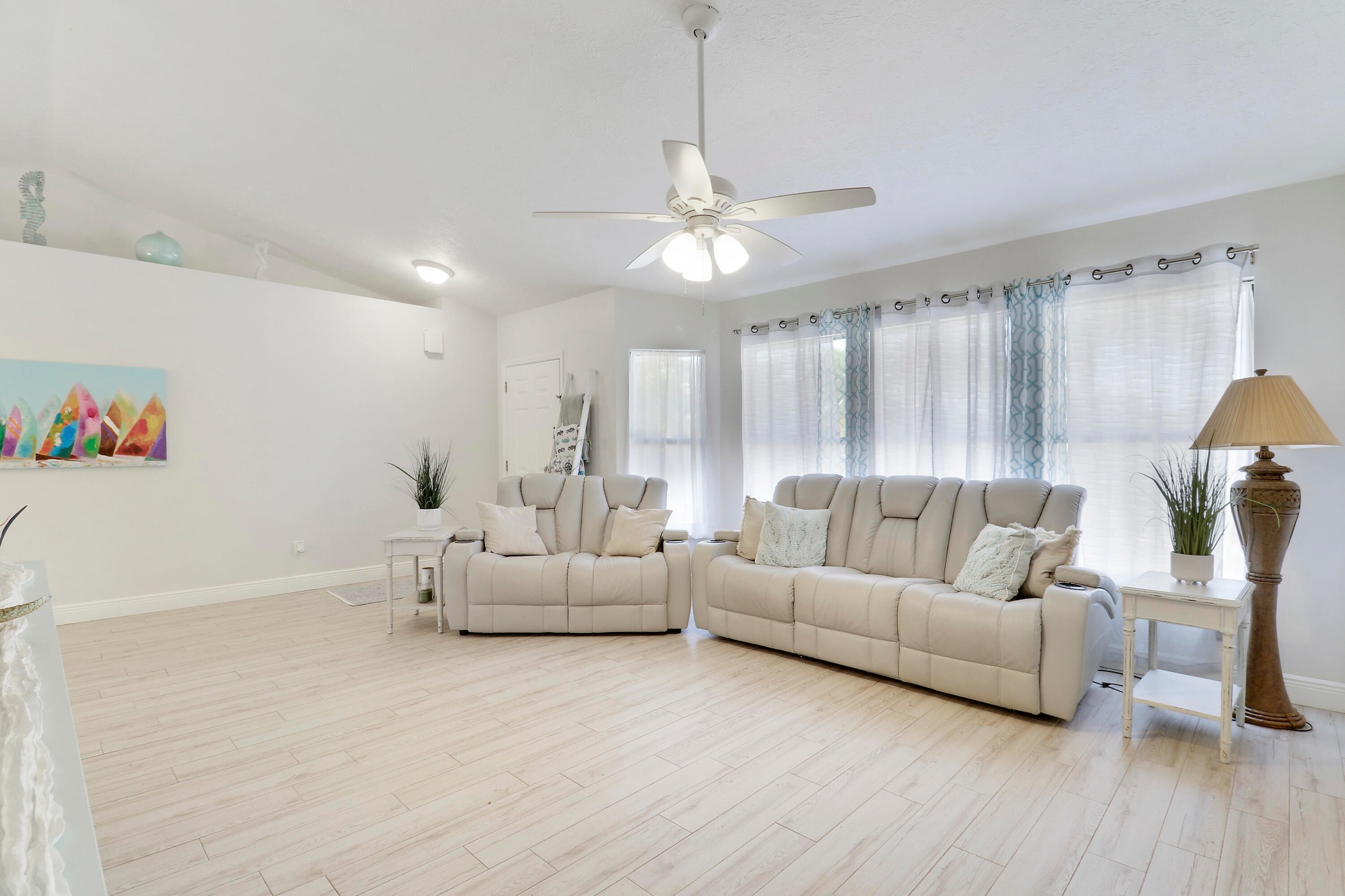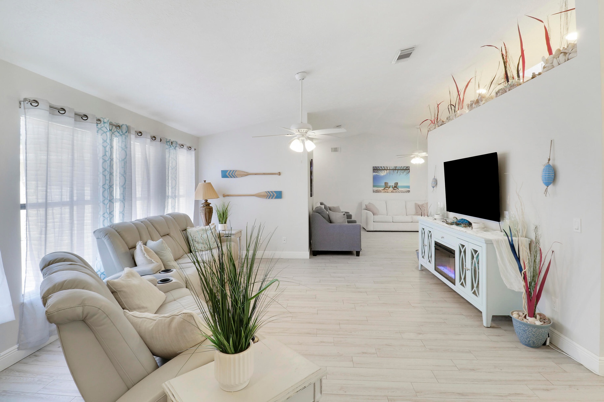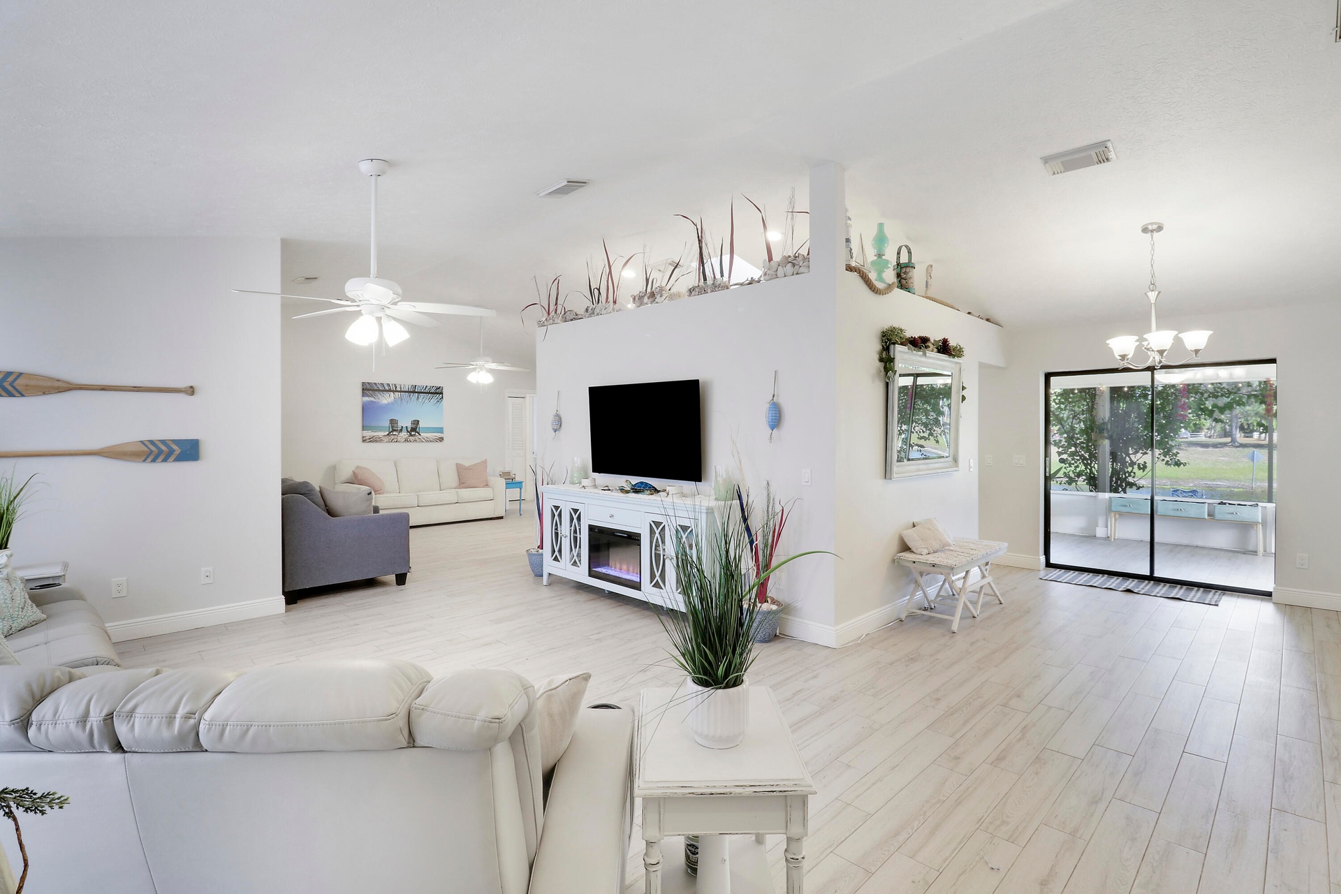 DescriptionLOCATION, LOCATION, LOCATION! Close to the beach, nestled on a 1/3 acre cul-de-sac lot with incredible canal views with NO HOA! Don't miss this 3BR/2.5BA/2CG home in eastern PSL! Great location with easy access to shopping, Jensen Beach, Stuart, schools, US-1 and more. Special features include wood-look tile throughout the house, a huge screened patio with canal views from every direction, tropical landscaping, updated kitchen and baths, room for a pool, well irrigation (with new well pump), extended driveway, numerous pocketing slider doors to the patio and more! The master suite has dual walk-in closets, access to the patio as well as ensuite with updated vanity and a separate shower. Two guest bedrooms share a hall bath. Laundry room doubles as a powder bath when needed.