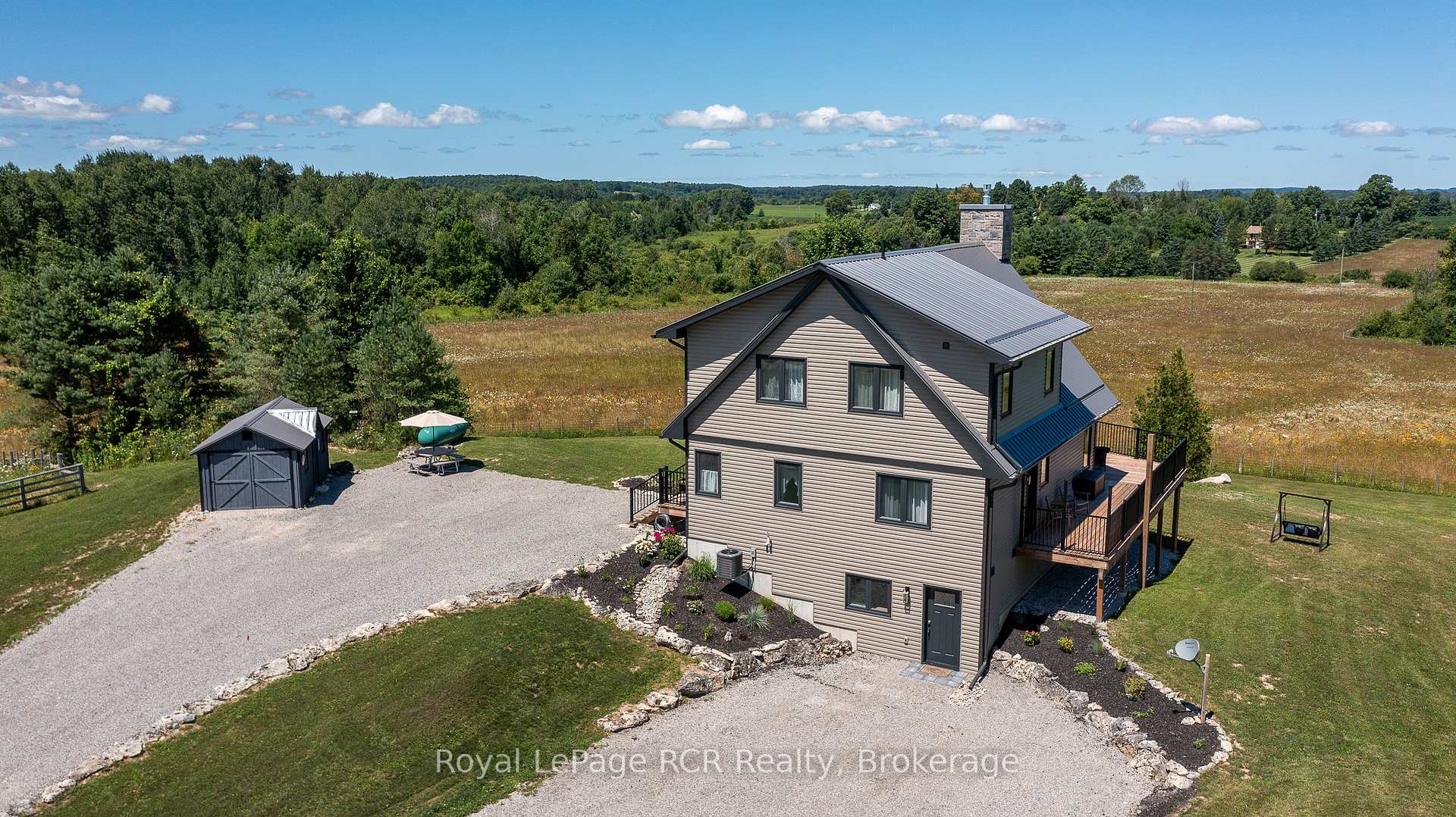 27 acre farm with a shop, storage building and home. Substantial driveway and gravel yard at the 40x60 shop (in-floor heat, 2 roll up doors, steel lined, floor drains, office area, mechanical room) Brightspan building is 60x90 (closed back wall, 10' steel frame walls on a 2 foot concrete base). Approximately 20 acres in pasture with fenced fields and paddocks. Home was built in 2023 with the best for country living in mind. Over 2200 square feet of finished living space on 3 levels, including the full walkout basement. All high end finishes. Main level master suite, 2 bedrooms in the upper loft and a 4th bedroom in the basement. Exceptional heating systems include outdoor wood fired furnace and boiler system for forced air and radiant heat with propane backup. GBtel internet in the house and shop. A1 zoning.