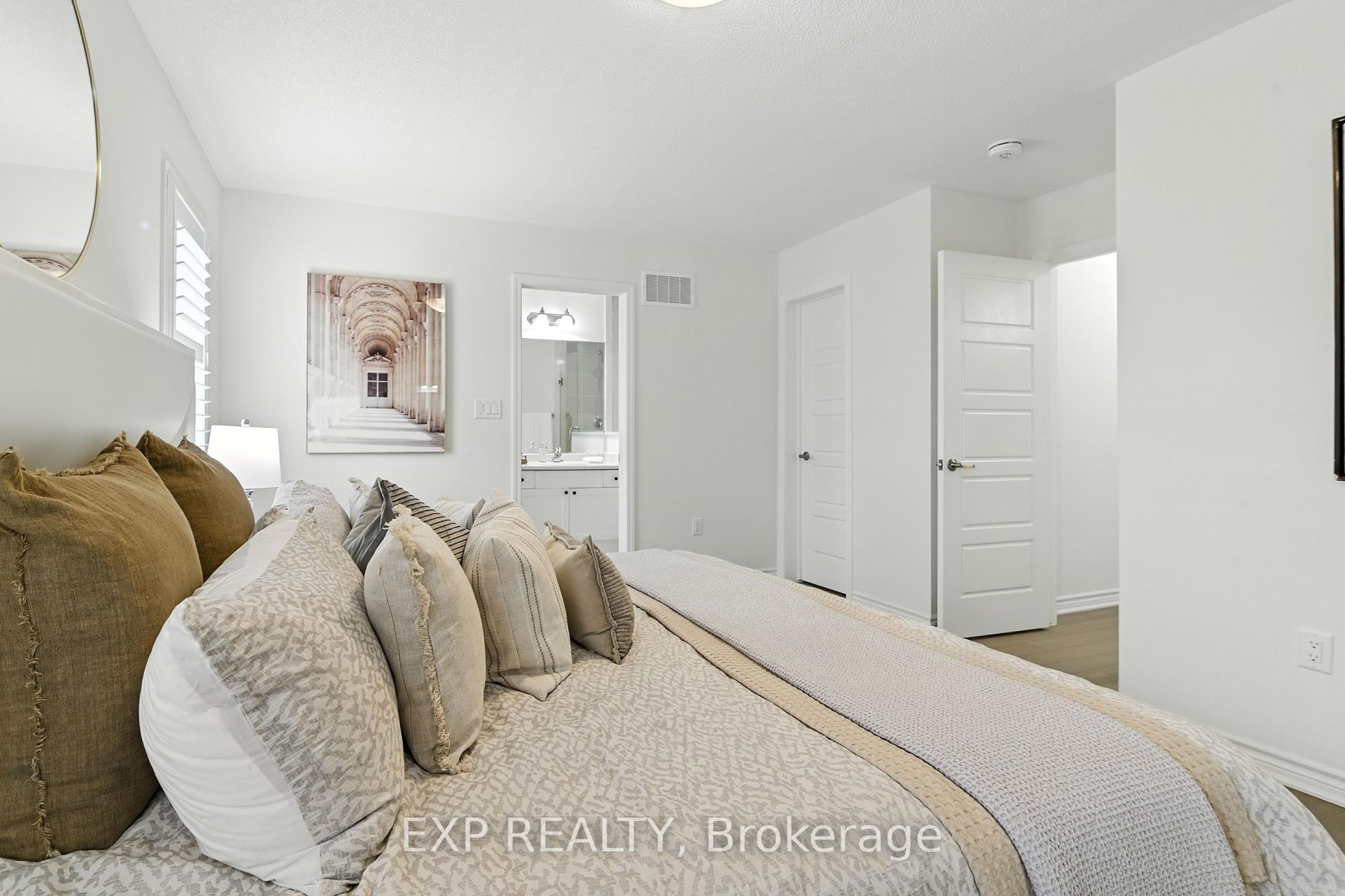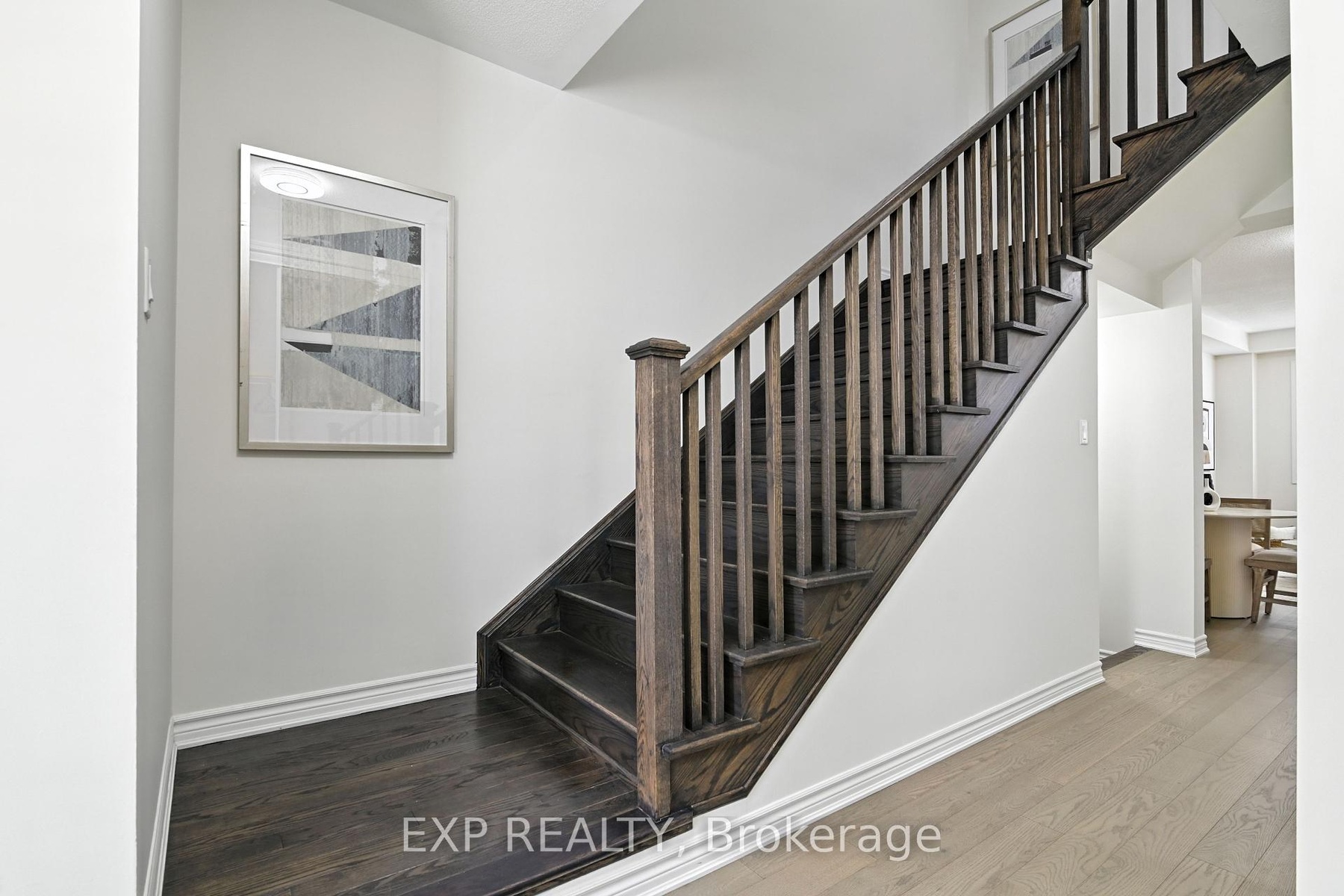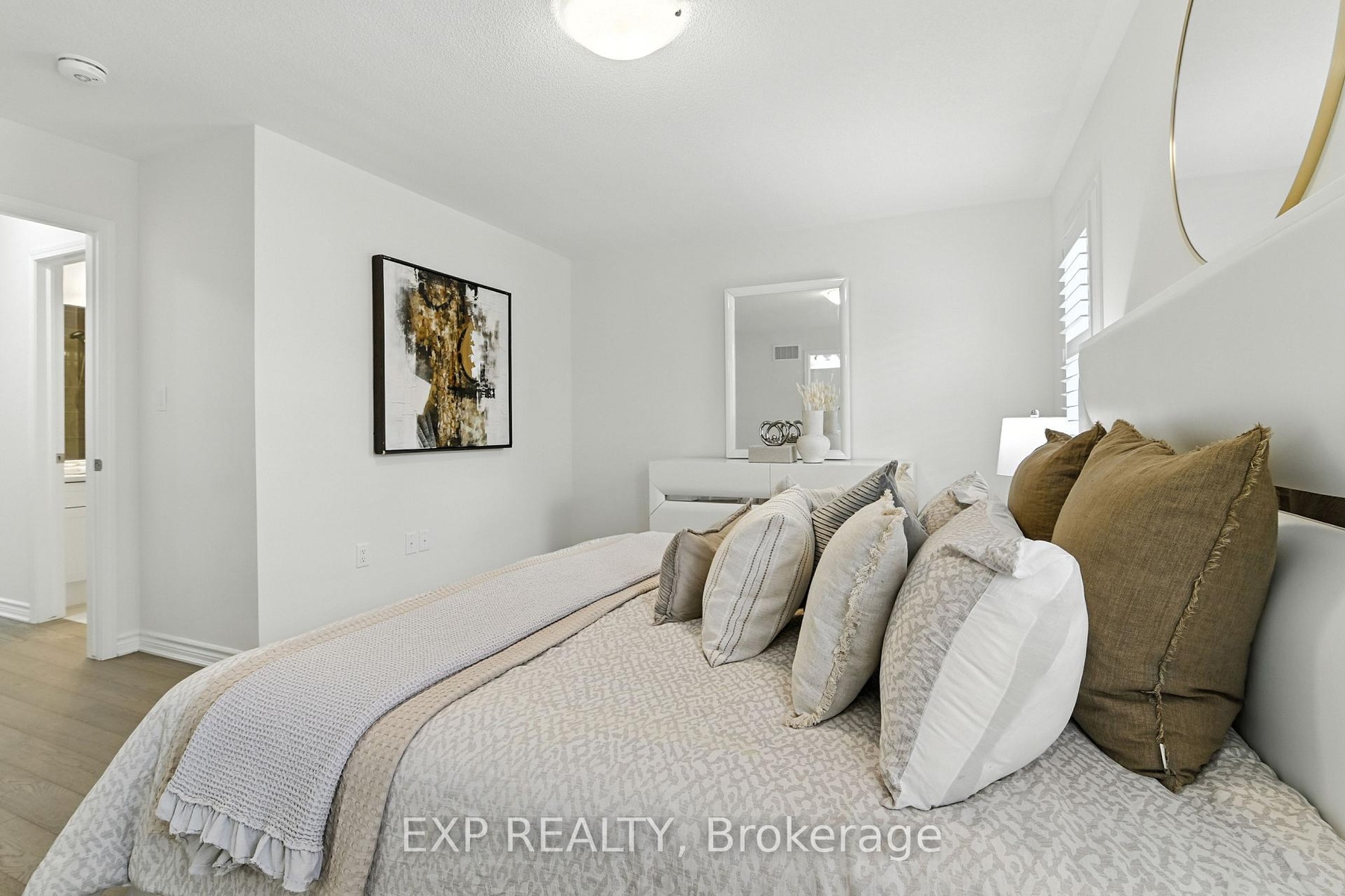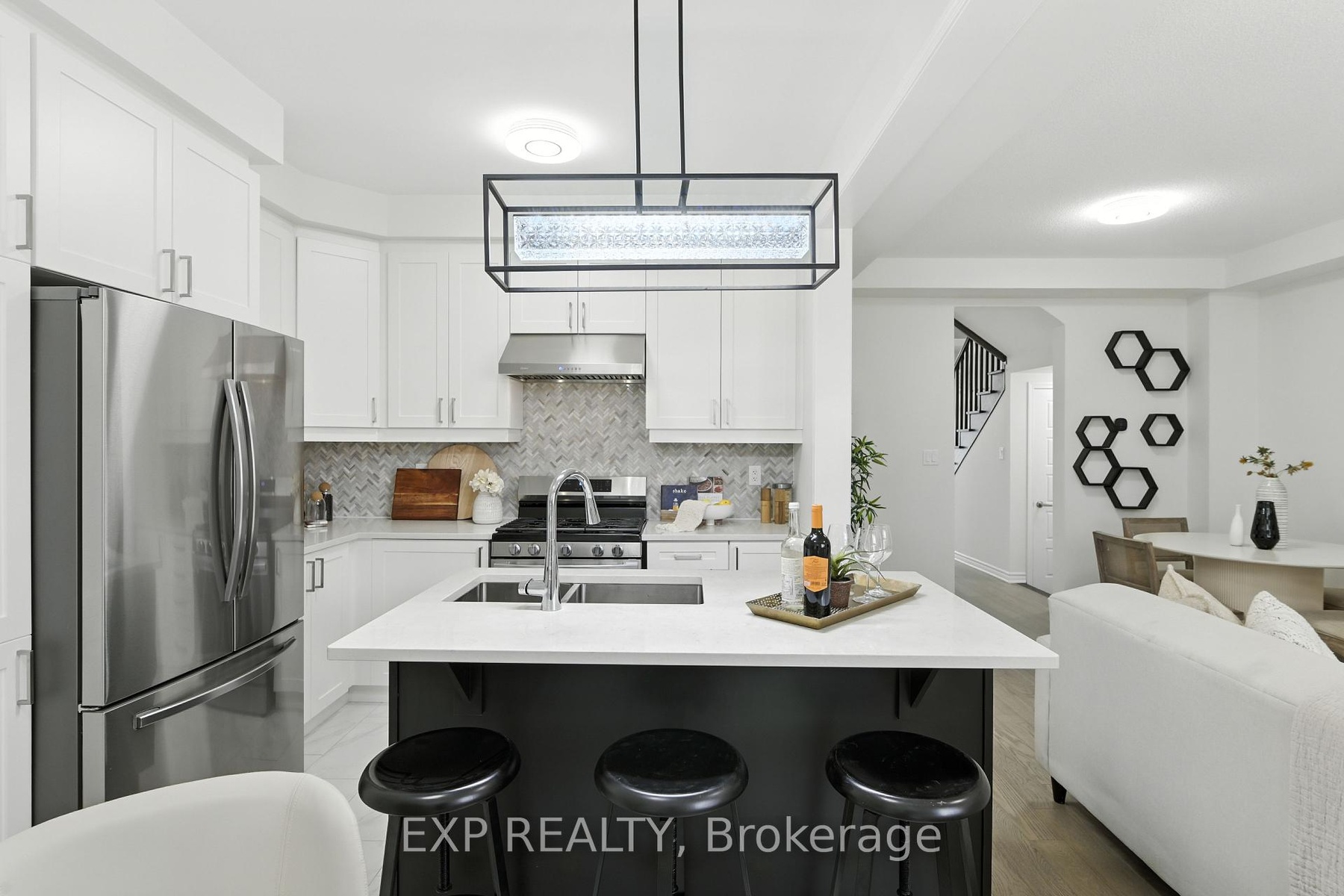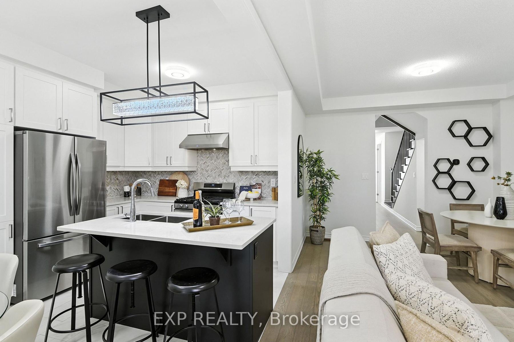 Welcome to this beautifully upgraded 3-spacious bedroom, 3-bathroom townhouse offering approximately 1,800 sq ft of modern living space. Featuring 9 ceilings on the main floor and 8 ceilings on the second floor, this home boasts an open-concept layout with a spacious living/dining area and a bright kitchen complete with a center island, 3 cm quartz countertops, tall cabinets, backsplash, and stainless steel appliances. The primary suite offers a generous 17x12 layout with a walk-in closet and a luxurious ensuite featuring a glass shower, bath oasis, and upgraded fixtures. The 2nd bedroom also includes its own walk-in closet, providing plenty of storage space. Additional highlights include 5 red oak hardwood floors throughout, oak stairs, 12x24 Olympia tiles, Riverside doors, California shutters, Ecobee smart thermostat, and keyless garage entry. The lower level comes with a rec room ready package, 3-piece rough-in, and oversized windows perfect for future customization. Enjoy peace of mind with an owned tankless water heater, upgraded appliances, central air conditioning, garage opener, and a newly fenced backyard with warranty. With over $50,000 in upgrades, this move-in ready home blends style, comfort, and functionality perfect for modern family living.