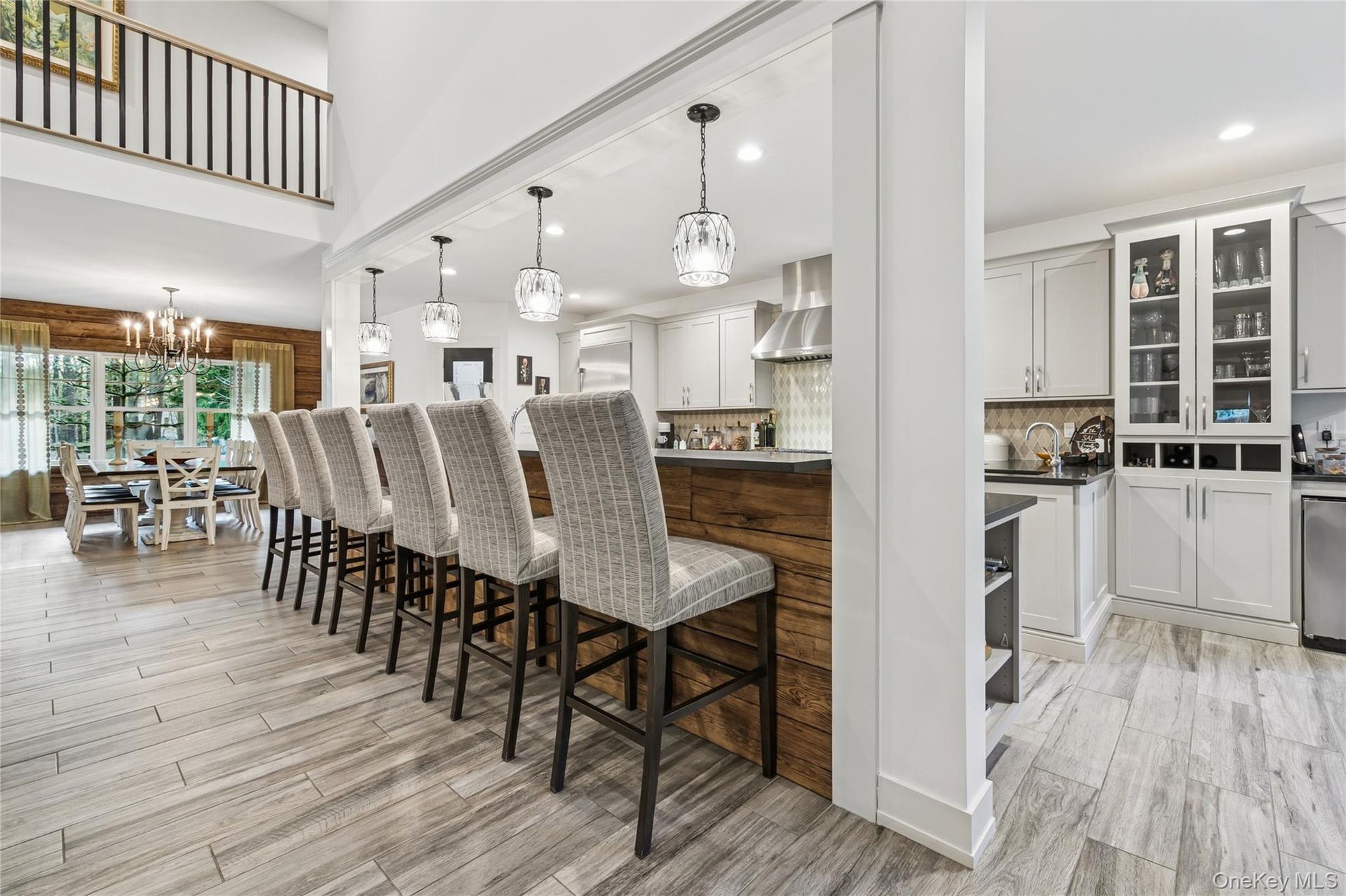 casual meals or large gatherings. There’s also a butler sink, liquor cabinet with built-in wine rack, and reclaimed wood from Pennsylvania