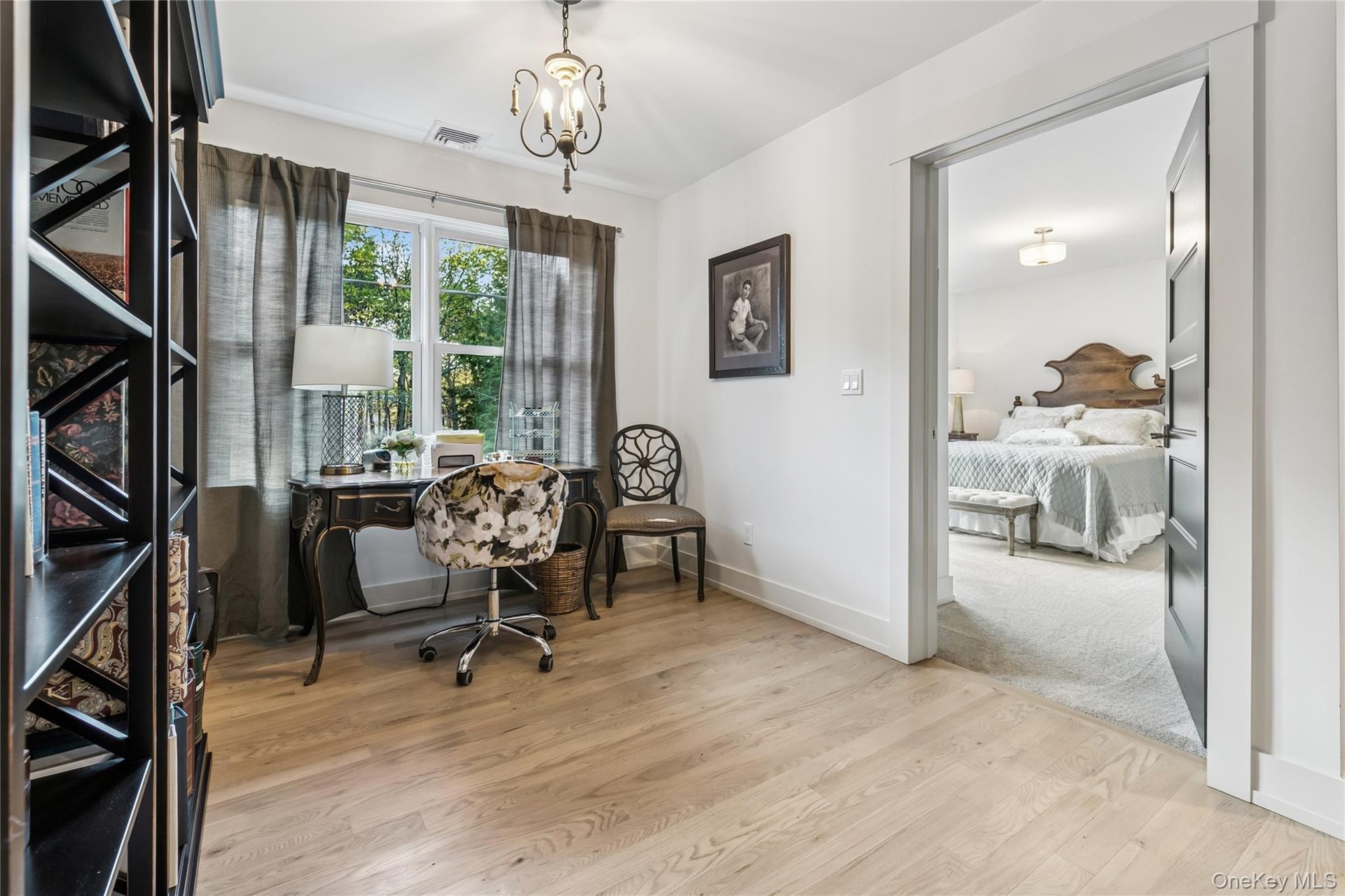 convenience, and there’s ample space for additional customization on the grounds. Back inside, the first-floor primary suite offers a luxurious