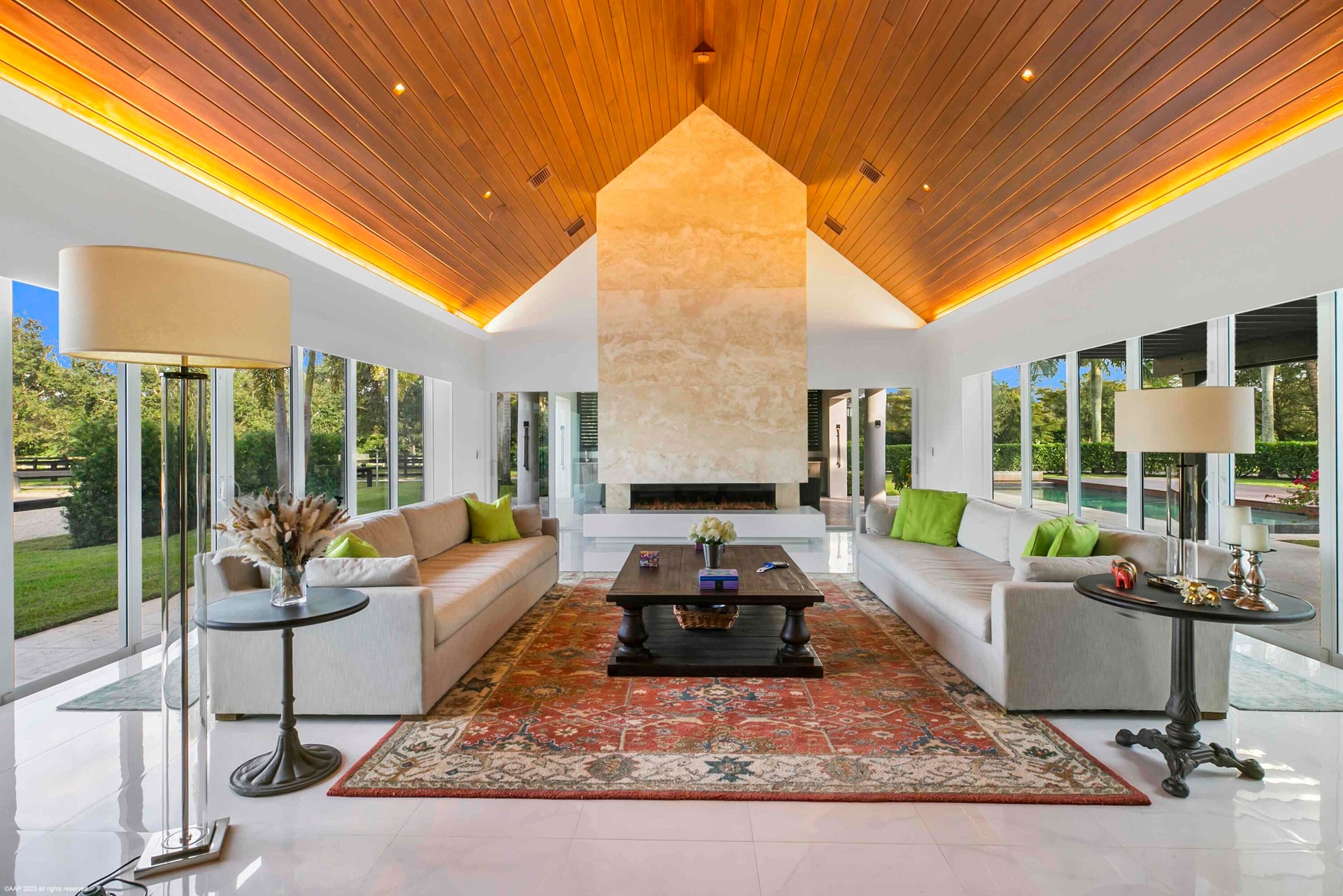 This premier gated equestrian estate in Saddle Trail is available for PRIVATE seasonal rental and offers an exceptional location just one mile from Wellington International, accessible via maintained bridle paths.
