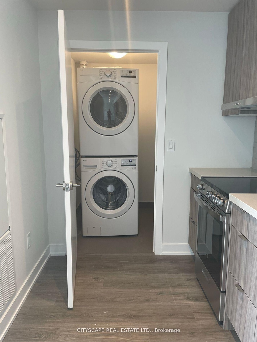 Bright and beautifully designed, this 1-bedroom, 1-bathroom condo in the sought-after Avia 2 Tower offers the perfect blend of comfort, style, and urban convenience. Large windows and a private balcony fill the space with abundant natural sunlight and offer open views of clear skies and city. The open-concept layout features a sleek modern kitchen with built-in stainless steel appliances, quartz countertops, laminate flooring, and in-suite laundry. Located in the heart of downtown Mississauga, you're just steps from Square One Shopping Centre, Sheridan College, Celebration Square, top restaurants, entertainment, and transit with easy access to Hwy 403. Direct underground access to Food Basics. Enjoy access to exceptional amenities, including a fully equipped gym, yoga/meditation studio, theatre room, party lounge, business center, gaming lounge, kids playroom, guest suite, and more.