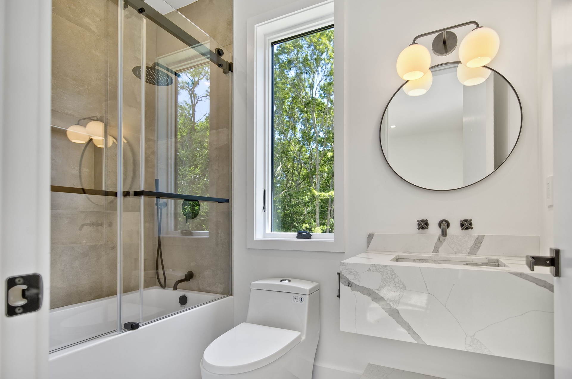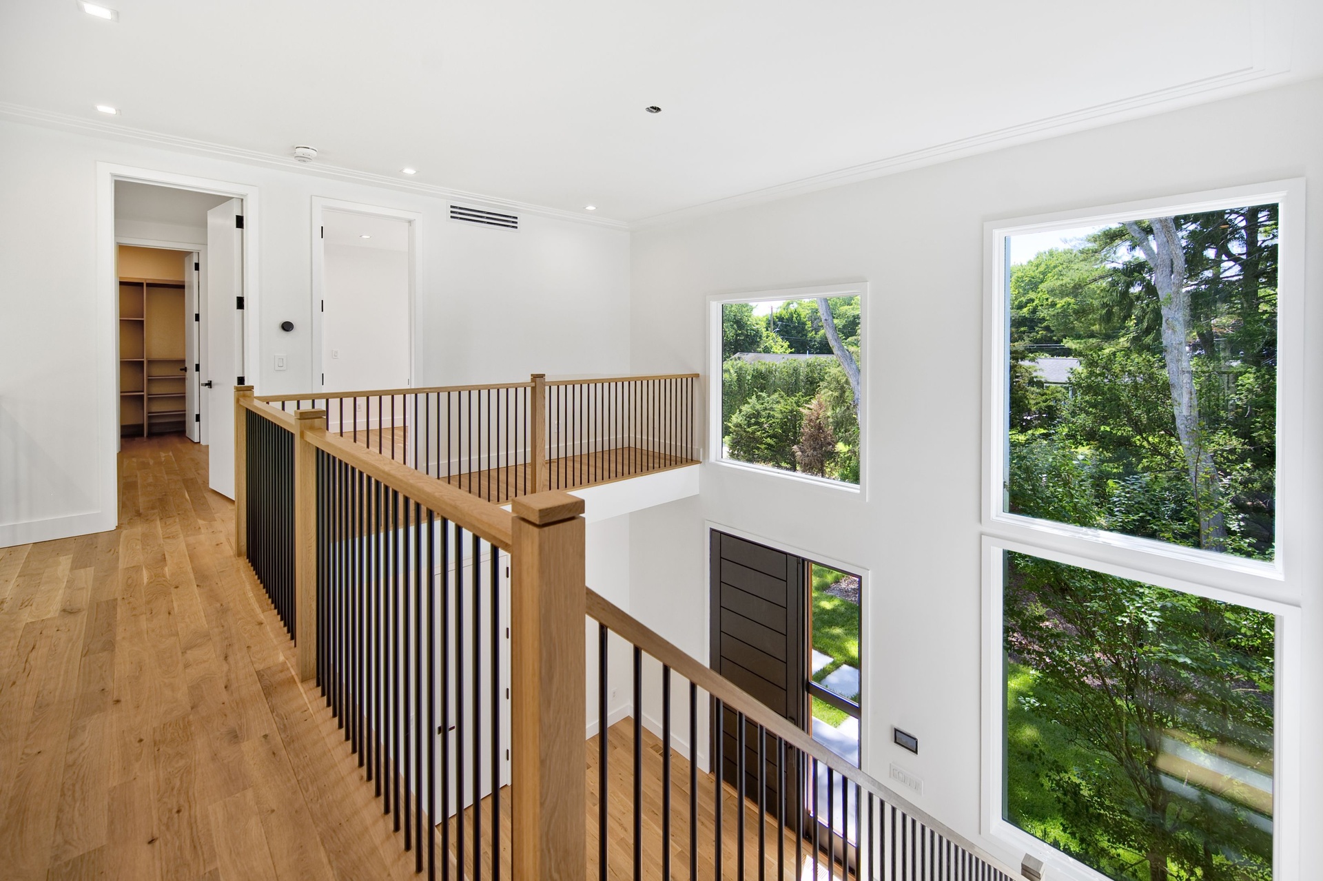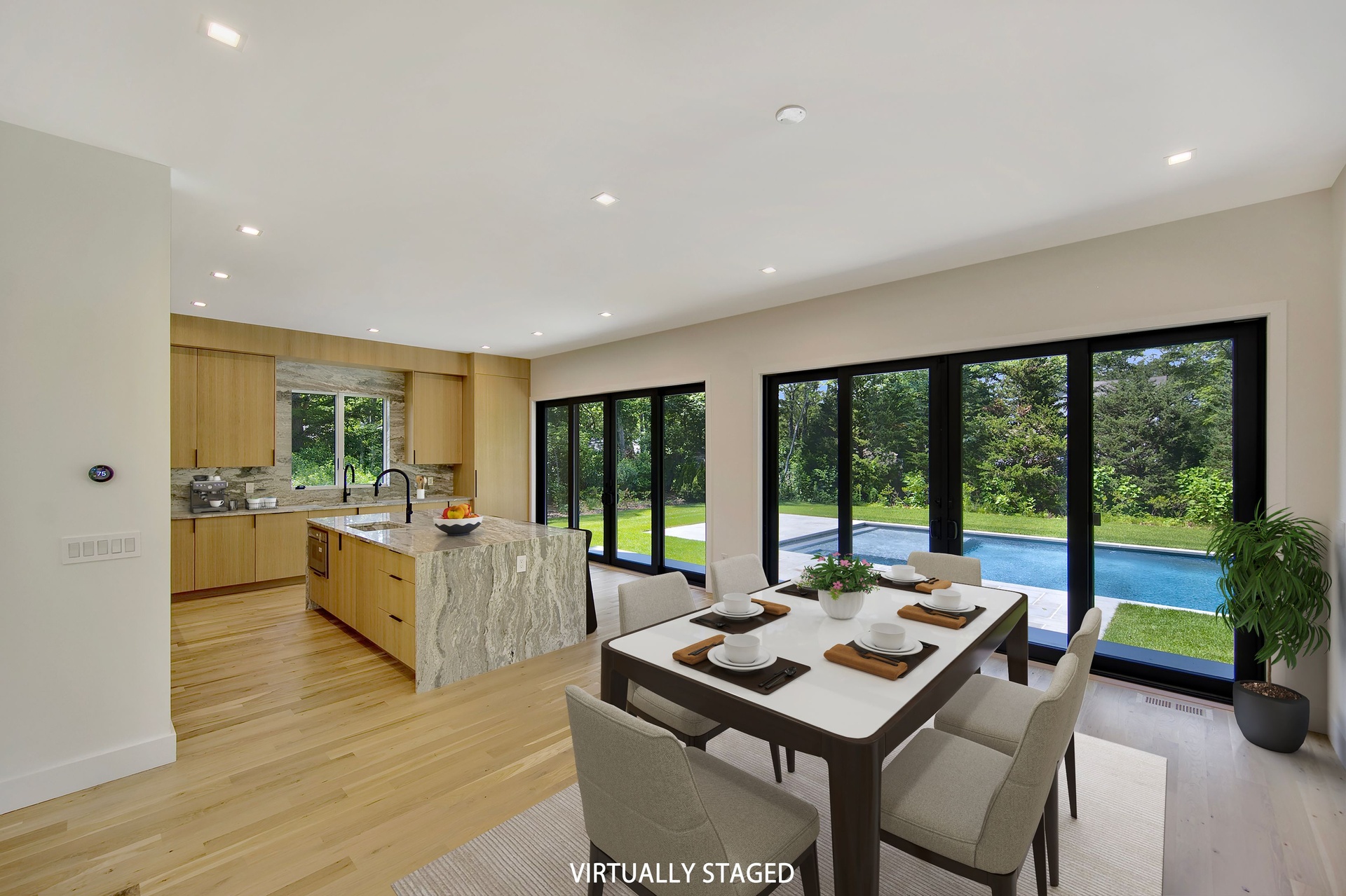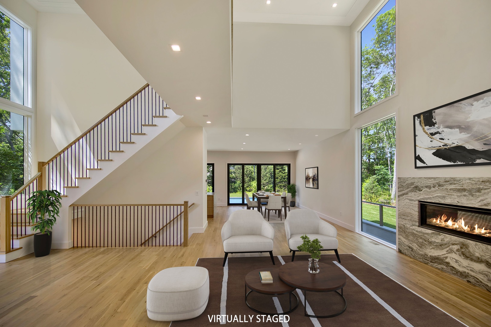 Tucked away down a private, tree-lined driveway in East Quogue, this stunning new Modern custom-built Hamptons-style home offers the ultimate in modern luxury and serene living. Overlooking the prestigious Hills Golf Course, the home features a beautifully appointed primary suite with a private balcony, offering sweeping views of the 20' x 40' heated Gunite pool and manicured grounds. Two additional spacious en-suite bedrooms are located on the second level, each thoughtfully designed for comfort and privacy. The main level is perfect for entertaining, featuring a gracious great room with a fireplace, a custom chef's kitchen with premium appliances, an office and a junior primary suite. A stylish powder room completes the space. The expansive lower level offers a generous recreational room with direct walk-out access to the bluestone patio, pool area, and lush landscaping. This level also includes a temperature-controlled wine room, wet bar, an additional en-suite bedroom, and a flexible bonus room ideal for a gym, home theater, or studio. Functional design with soft, elegant accents and high-end finishes throughout, this home is a true retreat. Conveniently located just minutes from the best of the Hamptons-beaches, villages, shops, and renowned restaurants-with easy access to Route 27 for seamless travel. Enjoy more time with friends, family, and the fairways-all from the comfort of your own East Quogue sanctuary.