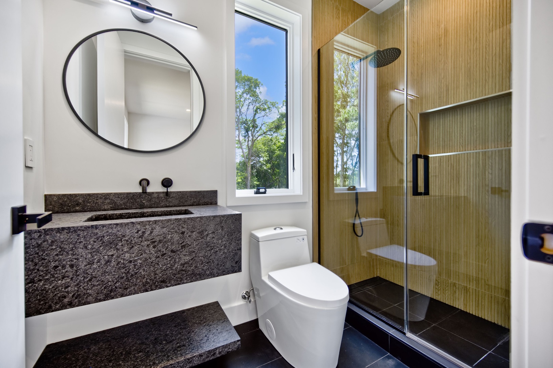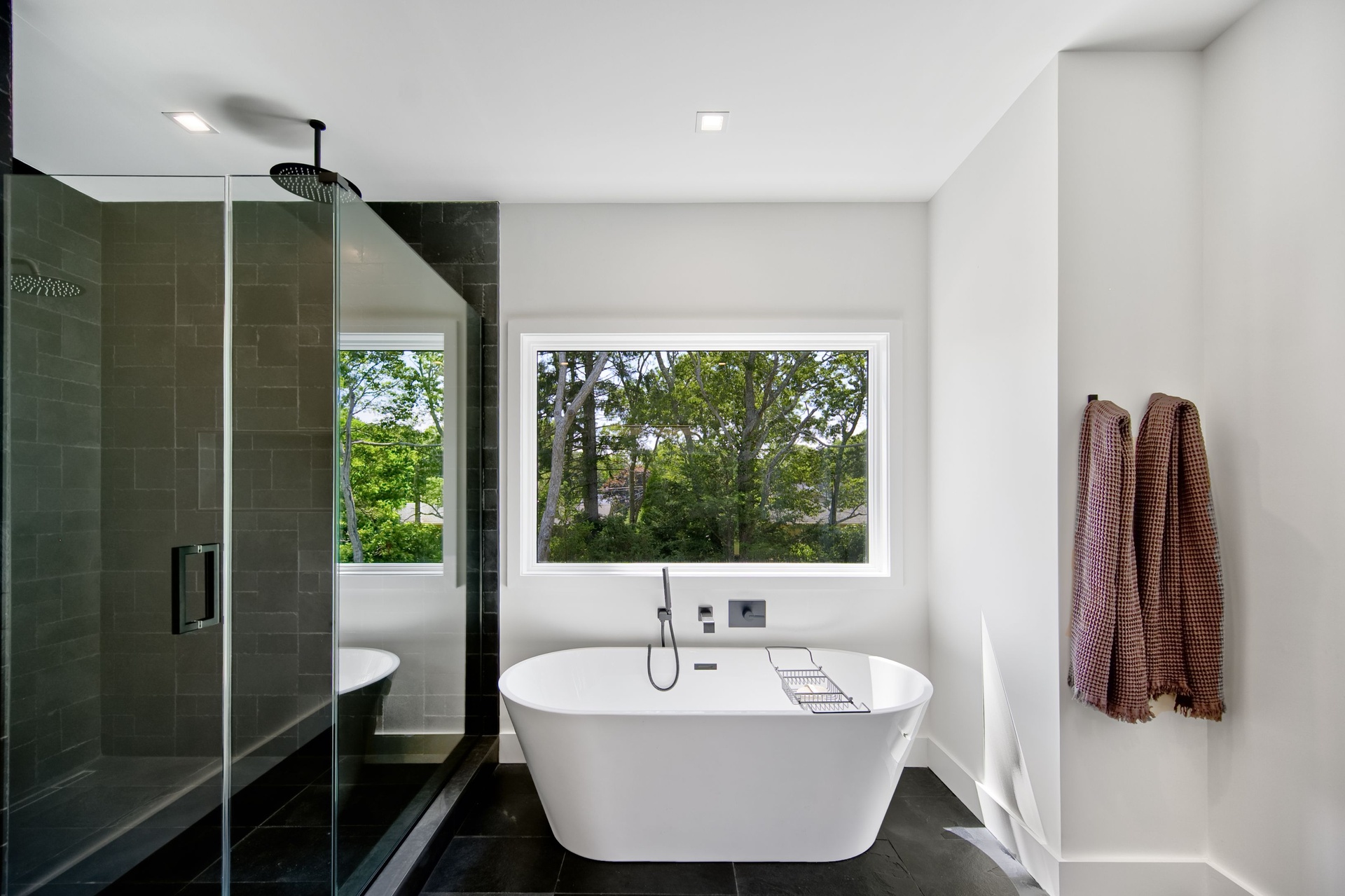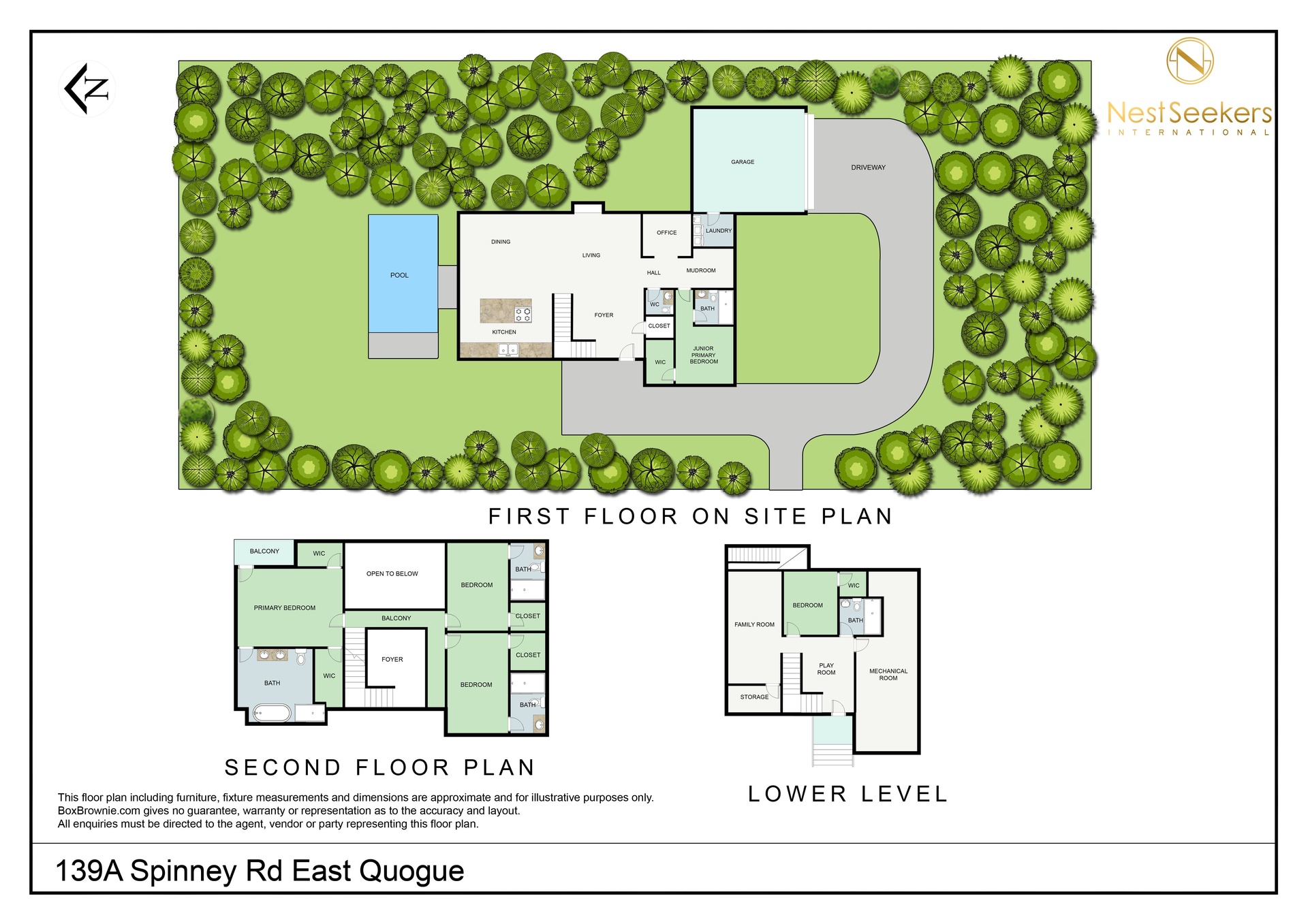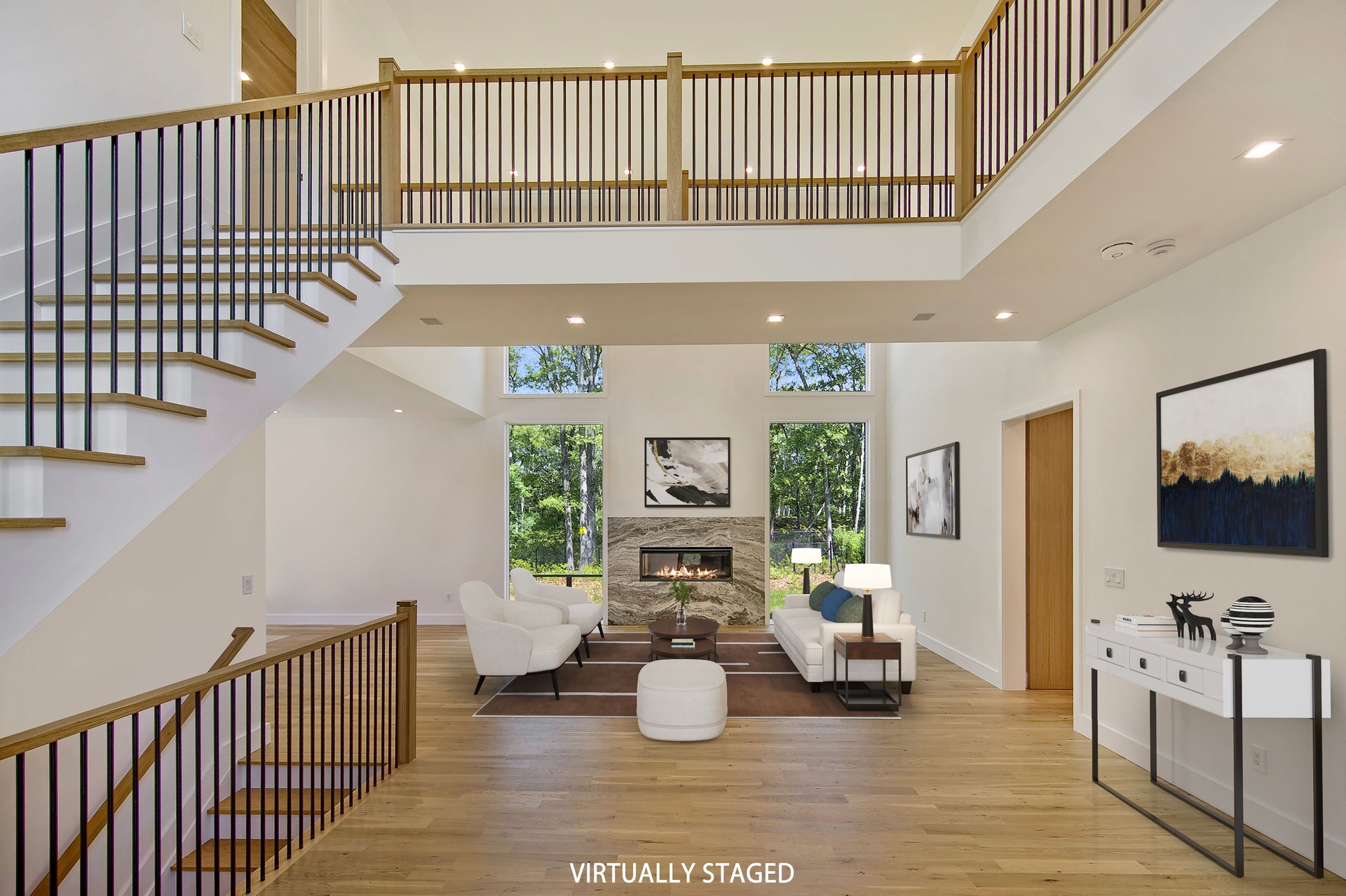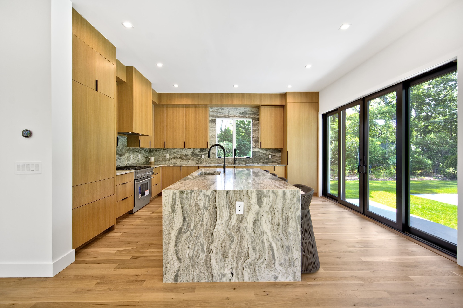 Tucked away down a private, tree-lined driveway in East Quogue, this stunning new Modern custom-built Hamptons-style home offers the ultimate in modern luxury and serene living. Overlooking the prestigious Hills Golf Course, the home features a beautifully appointed primary suite with a private balcony, offering sweeping views of the 20' x 40' heated Gunite pool and manicured grounds. Two additional spacious en-suite bedrooms are located on the second level, each thoughtfully designed for comfort and privacy. The main level is perfect for entertaining, featuring a gracious great room with a fireplace, a custom chef's kitchen with premium appliances, an office and a junior primary suite. A stylish powder room completes the space. The expansive lower level offers a generous recreational room with direct walk-out access to the bluestone patio, pool area, and lush landscaping. This level also includes a temperature-controlled wine room, wet bar, an additional en-suite bedroom, and a flexible bonus room ideal for a gym, home theater, or studio. Functional design with soft, elegant accents and high-end finishes throughout, this home is a true retreat. Conveniently located just minutes from the best of the Hamptons-beaches, villages, shops, and renowned restaurants-with easy access to Route 27 for seamless travel. Enjoy more time with friends, family, and the fairways-all from the comfort of your own East Quogue sanctuary.