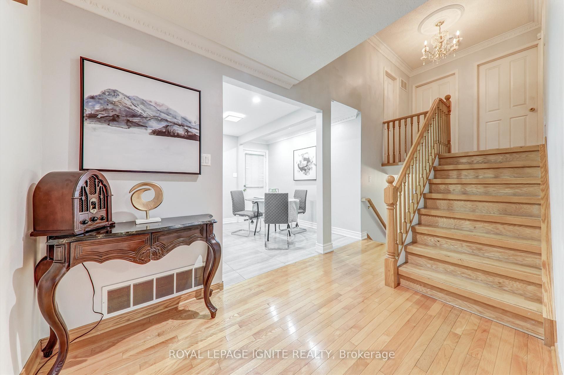 DescriptionWelcome to 42 Fireside Dr, a beautiful 4 + 1 bedroom, 3-washroom detached home with no sidewalk and parking for 6 vehicles, located in a prime and family-friendly neighbourhood. The main floor features a bright living room with pot lights and a massive window, a dining area with its own window, and a modern kitchen with stainless steel appliances, pot lights, windows, and a breakfast area. The upper level offers spacious bedrooms with parquet flooring and large windows, providing warmth and natural light throughout. The lower level boasts an open-concept layout with a fireplace and window, perfect for family gatherings or relaxation, while the finished basement includes a room and laundry area for added functionality. Conveniently situated close to a great selection of restaurants and cafés, including Starbucks, and surrounded by beautiful parks such as PlayScape Park, Picasso Park, and Rouge River Park. Near top-rated schools and daycares Morris Public School, St. Jean Brebeuf Catholic School, John G. Diefenbaker Public School, and Meadowvale Daycare Centre and minutes to Home Depot, Staples, Canadian Tire, RBC Royal Bank, Beauty Salon, and Toronto Jaffray Chinese Alliance Church. With easy access to Highway 401 and Toronto Zoo, this home offers the perfect combination of comfort, convenience, and lifestyle.Amenities- Other