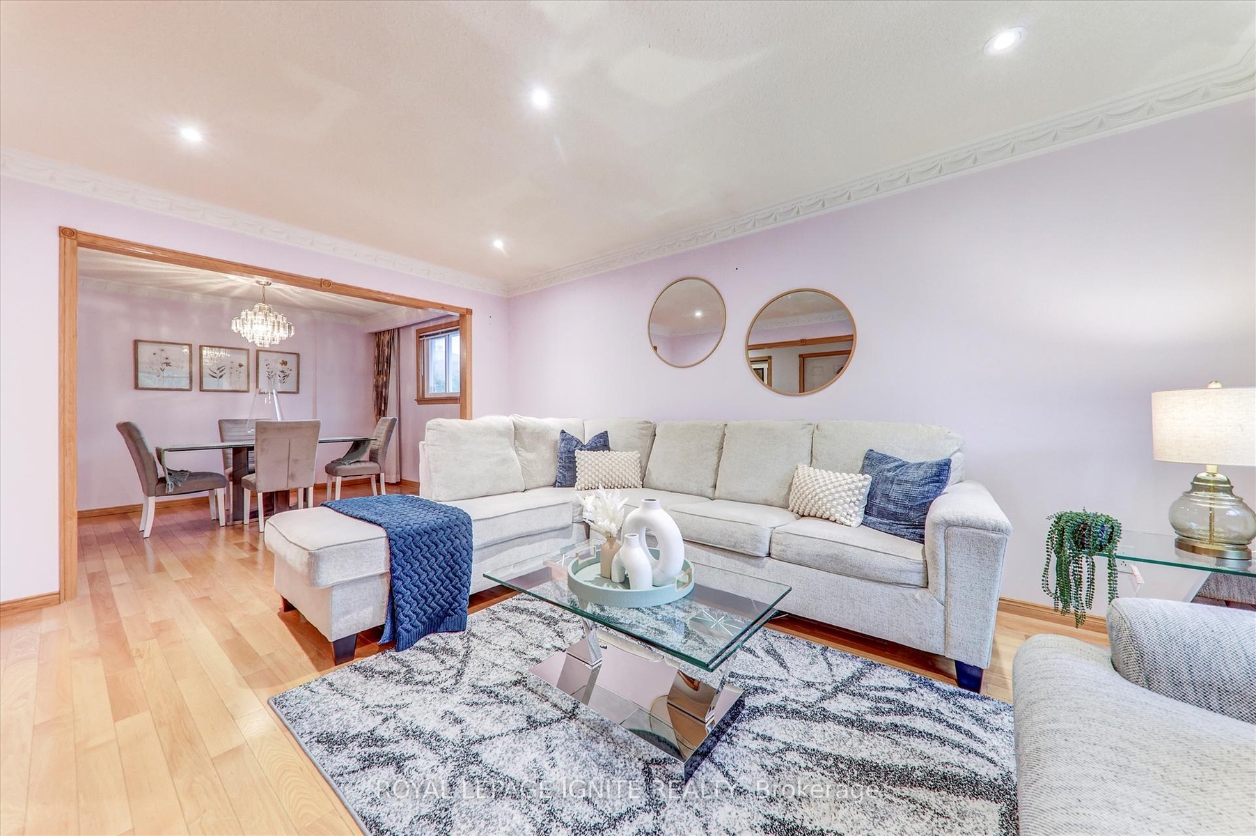 Welcome to 42 Fireside Dr, a beautiful 4 + 1 bedroom, 3-washroom detached home with no sidewalk and parking for 6 vehicles, located in a prime and family-friendly neighbourhood. The main floor features a bright living room with pot lights and a massive window, a dining area with its own window, and a modern kitchen with stainless steel appliances, pot lights, windows, and a breakfast area. The upper level offers spacious bedrooms with parquet flooring and large windows, providing warmth and natural light throughout. The lower level boasts an open-concept layout with a fireplace and window, perfect for family gatherings or relaxation, while the finished basement includes a room and laundry area for added functionality. Conveniently situated close to a great selection of restaurants and cafés, including Starbucks, and surrounded by beautiful parks such as PlayScape Park, Picasso Park, and Rouge River Park. Near top-rated schools and daycares Morris Public School, St. Jean Brebeuf Catholic School, John G. Diefenbaker Public School, and Meadowvale Daycare Centre and minutes to Home Depot, Staples, Canadian Tire, RBC Royal Bank, Beauty Salon, and Toronto Jaffray Chinese Alliance Church. With easy access to Highway 401 and Toronto Zoo, this home offers the perfect combination of comfort, convenience, and lifestyle.