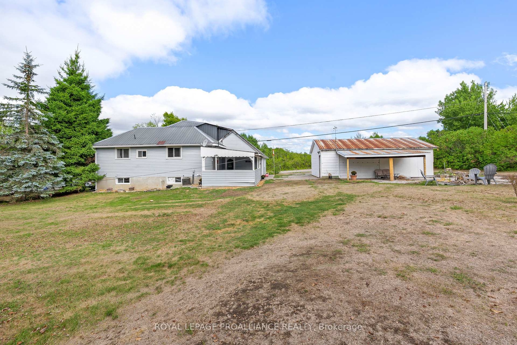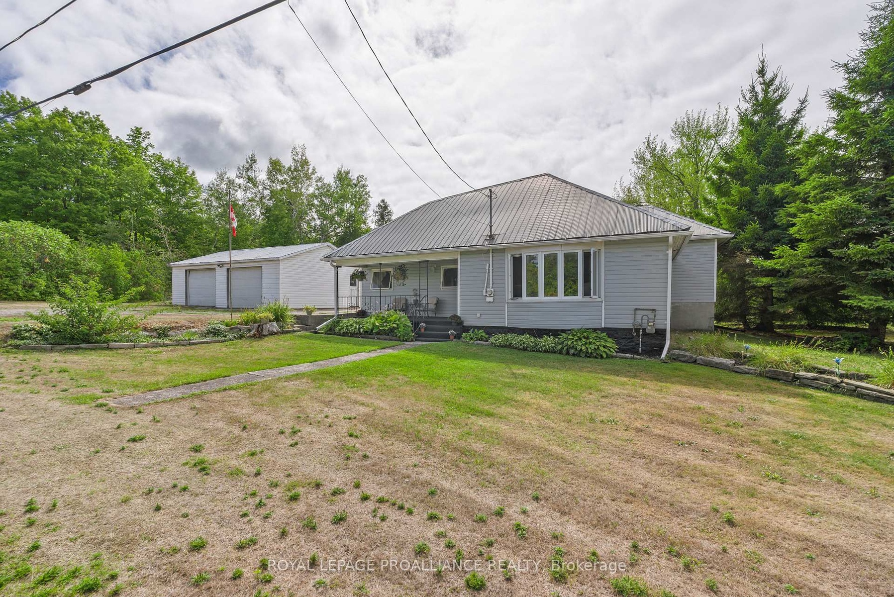 Located on Crookston Road, this 2-bedroom backsplit offers the best of rural living with convenient access to Belleville, Madoc, Tweed, and Marmora. Set on just over an acre, the property provides privacy, space, and a quiet country setting. The home features a bright and spacious kitchen, a generous living room with walkout to the front porch, and a well-designed upper level with two comfortable bedrooms and a 3-piece bathroom, complete with an accessible shower. The lower level offers a clean, unfinished space, ideal for storage or future development. A durable steel roof ensures long-lasting peace of mind. Outdoor living is highlighted by covered patios at both the front and back of the home, providing shade in the summer and shelter during a gentle rain, perfect for enjoying the tranquility of country life. A detached 2-car garage offers ample room for parking, workshop use, or recreational space, with a covered rear veranda ideal for wood storage, lawn equipment, or ATVs. The location is a dream for outdoor enthusiasts: the OFSC trail runs just steps from the property, providing direct access for snowmobiling, ATVing, or leisurely walks, while Moira Lake is only minutes to the north for boating, fishing, and water sports. This property combines comfort, functionality, and an ideal location for those seeking a balance of quiet rural living with easy access to nearby towns and amenities.