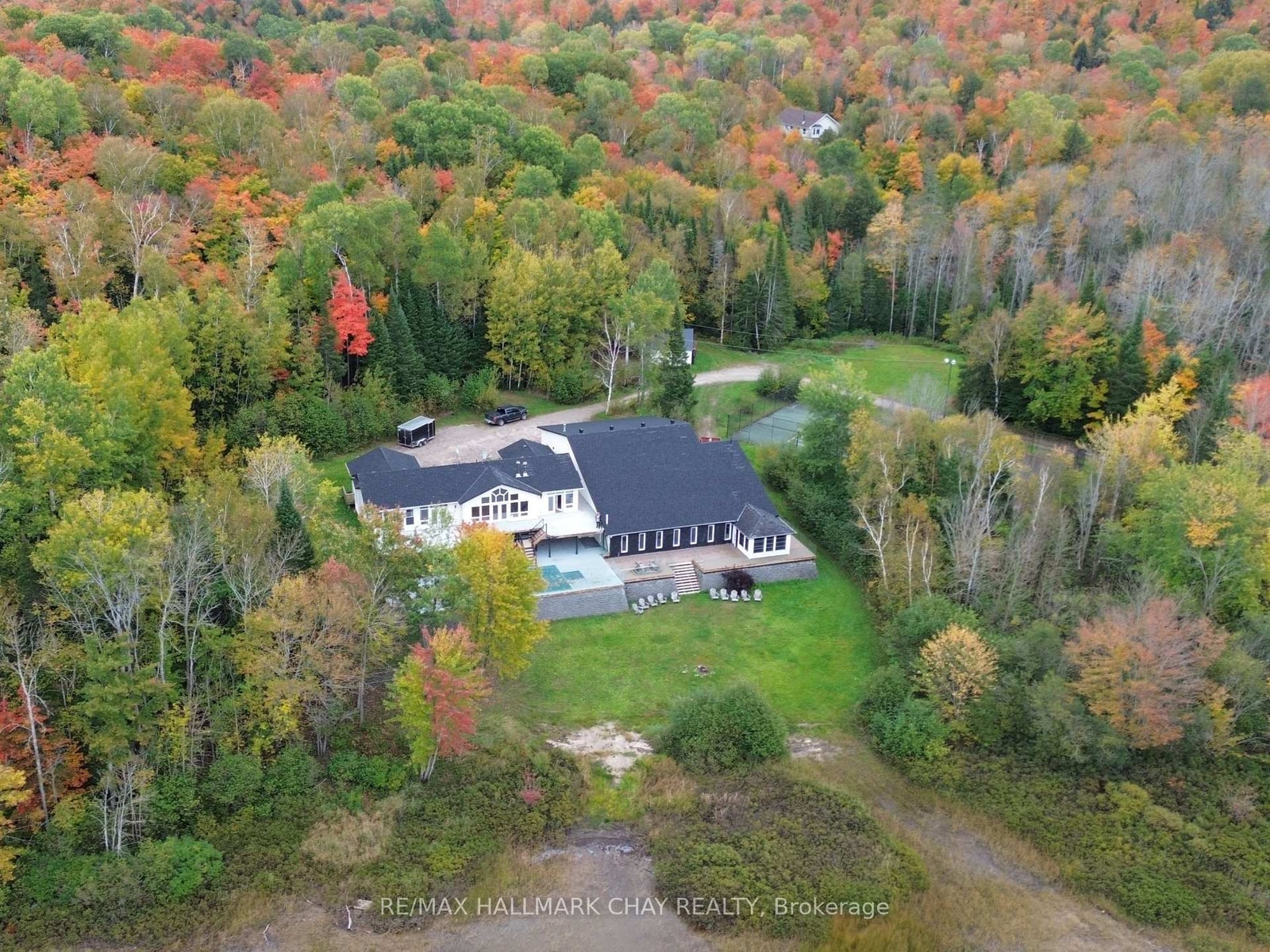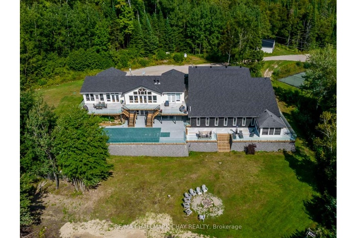 ULTIMATE FOUR-SEASON LAKESIDE RETREAT! Welcome to 2318 Pickerel & Jack Lake Road, an unparalleled private estate offering 1,752 feet of pristine shoreline and 34.7 acres of secluded beauty on Pickerel Lake. This 6,290 sq ft year-round home is the ultimate family resort or corporate retreat, designed for those who love active living and recreation. INDOOR SPORTS & WELLNESS CENTER - Enjoy the climate-controlled indoor heated pool and an exercise room, all complemented by a change room, shower and washroom. Challenge friends on the dual racquetball/squash court with an adjustable glass wall or unwind in the hot tub. OUTDOOR & GAMES ENTERTAINMENT - Take the competition outside on the full-size tennis court, inlaid shuffleboard court, and natural sand beach. Indoors, the expansive games room features a pool table and shuffleboard table, perfect for endless fun. Walk, ride or hike your own private trails throughout the property. Or ride the snowmobile trails (OFSC D123) nearby. LUXURY & COMFORT - The open-concept great room boasts a cathedral pine-accented ceiling, woodstove, and breathtaking lake views. Multiple walkouts lead to an expansive deck, ideal for sunset gatherings. A bright dining area, modern kitchen with stainless steel appliances and granite countertops, and main-level laundry facilities offer ease and functionality. ADDITIONAL FEATURES - A heated triple-car garage, whole-home Generac generator, and hundreds of kilometers of snowmobile trails just outside your door make this the ultimate four-season retreat. Also a detached double car drive shed, ideal for storing all of your sports toys! Whether for family gatherings, corporate escapes, or rental potential, this property delivers luxury, recreation, and tranquility in one breathtaking package. Located just 30 minutes from Huntsville & 1 hour from North Bay. Please note that furniture in photos is staged. Book your private tour today!