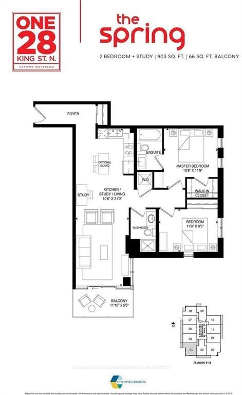 Discover contemporary living at its best in this stylish condo, perfectly located in the heart of downtown Waterloo. This 2 bedroom, 2 Bathroom unit is designed to provide both comfort and convenience, making it the ideal home for anyone seeking a vibrant urban lifestyle. Abundant natural light fills the space, creating a bright and inviting atmosphere. Enjoy panoramic views of the vibrant downtown surroundings from Balcony. Nestled in the heart of downtown Waterloo, this condo is just moments away from Wilfred Laurier and Waterloo Universities, offering easy access to educational institutions, Technology Park, shopping, and dining. 9' Ceilings Throughout. Great Amenities. Parking and locker included.