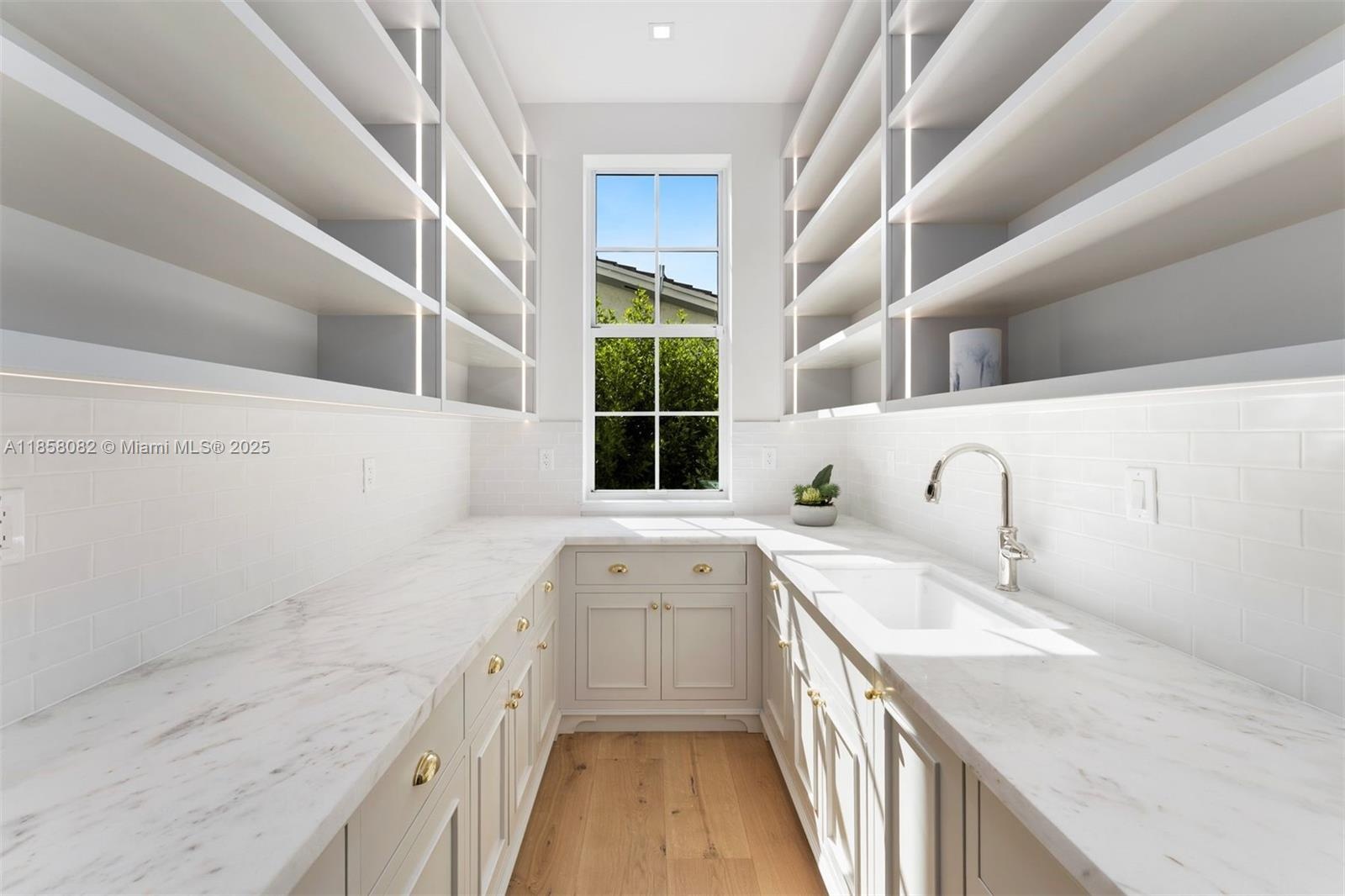 A Yachtsman’s dream home totally new 2025 rebuild sits high on a 12,000 SF direct ocean access lushly landscaped tree-shaded interior lot on a quiet cul de sac street in the highly regarded Gables by the Sea guard-gated community. This New England style 2-story 5 bdrm 4.5 bth home is filled with designer selected finishes and boasts over 6,000 total sq ft of fine craftsmanship, solid wood flooring, calacatta marble and the most beautiful kitchen ever! Spacious layout, high ceilings and abundant natural light. Direct no-bridge ocean access features 25,000 lb boat lift, 100' seawall, 80' ipe wood dock, 2 full dock towers & pilings, all brand new. Generator-ready. Four-car lift-capable garage. Coral Gables premier ocean access guard-gated community has the best in schools & nearby amenities.